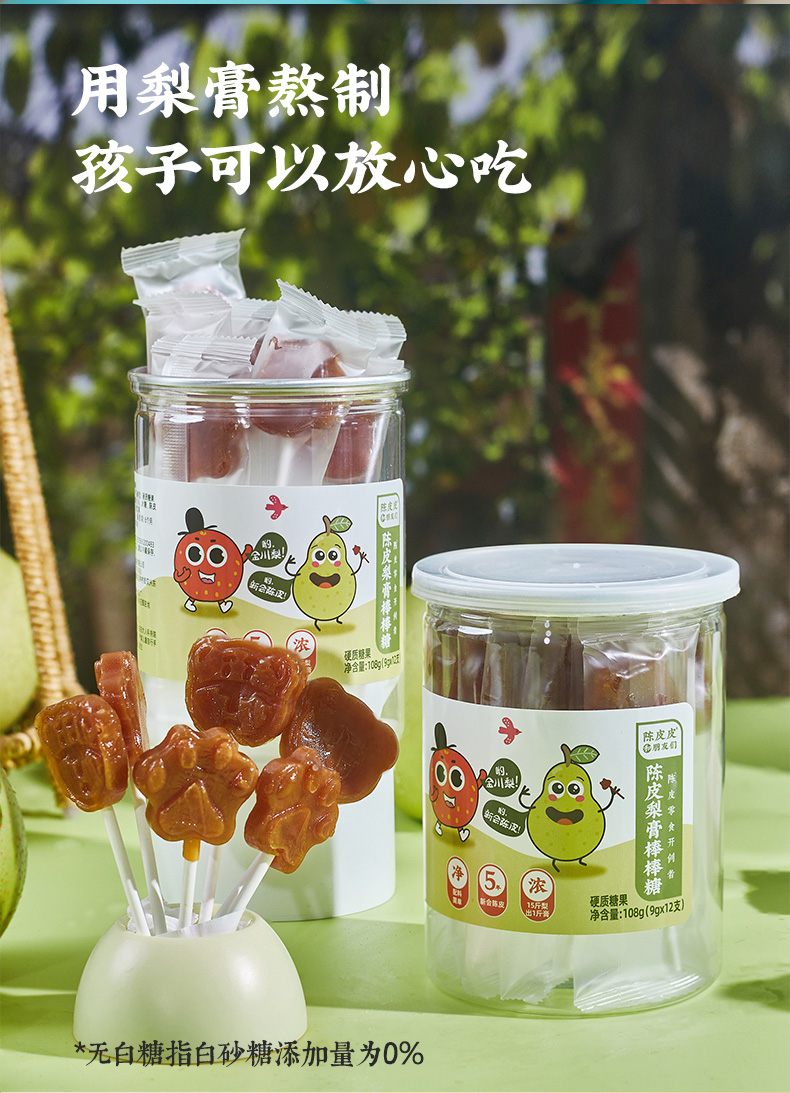 陈皮皮和朋友们陈皮梨膏棒棒糖108g/罐