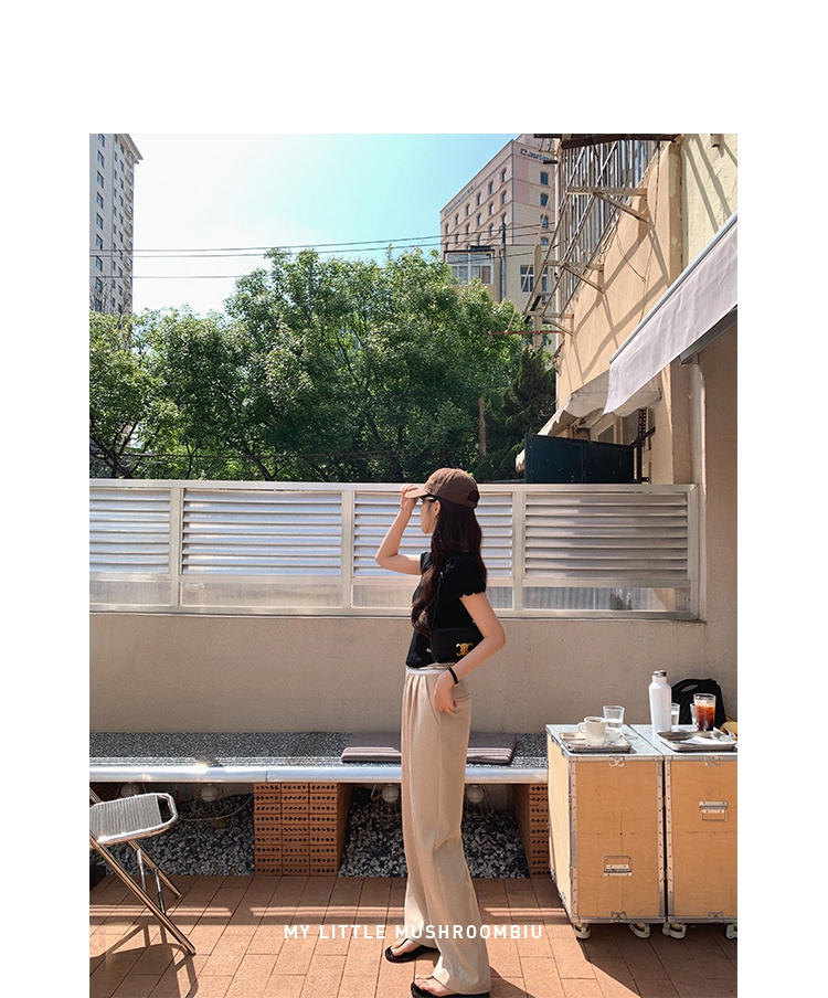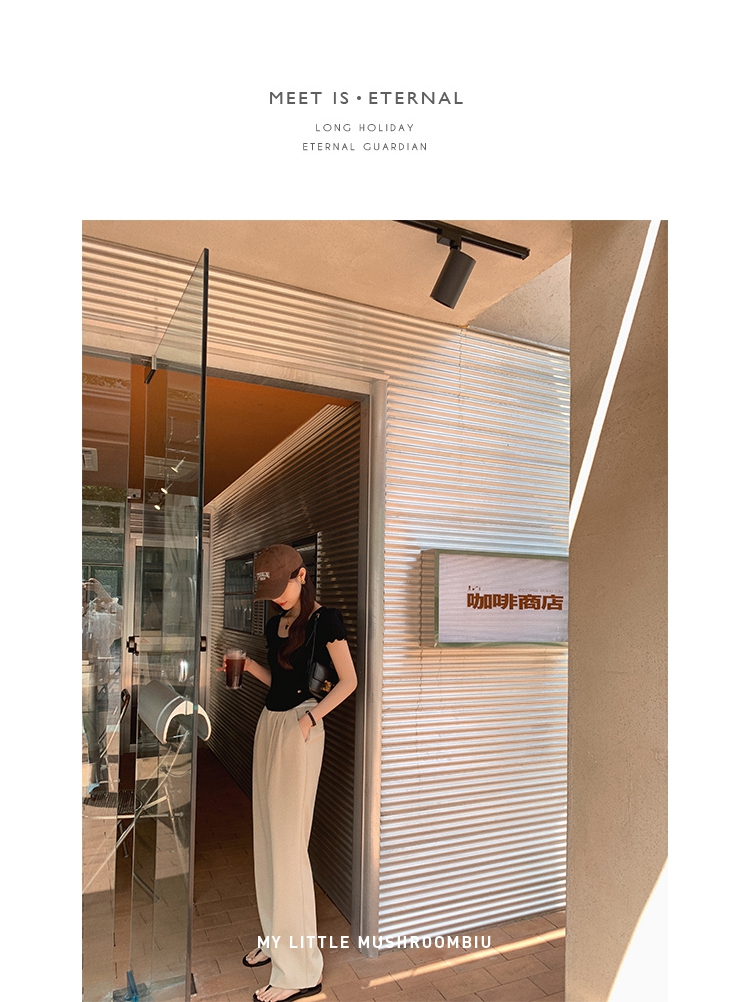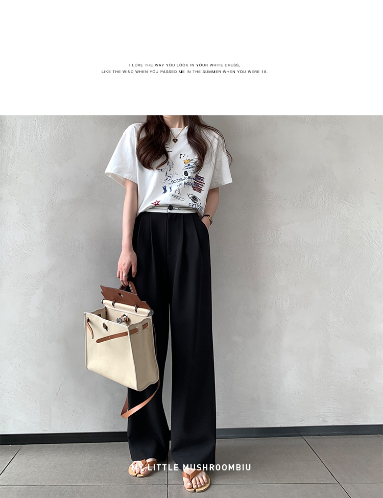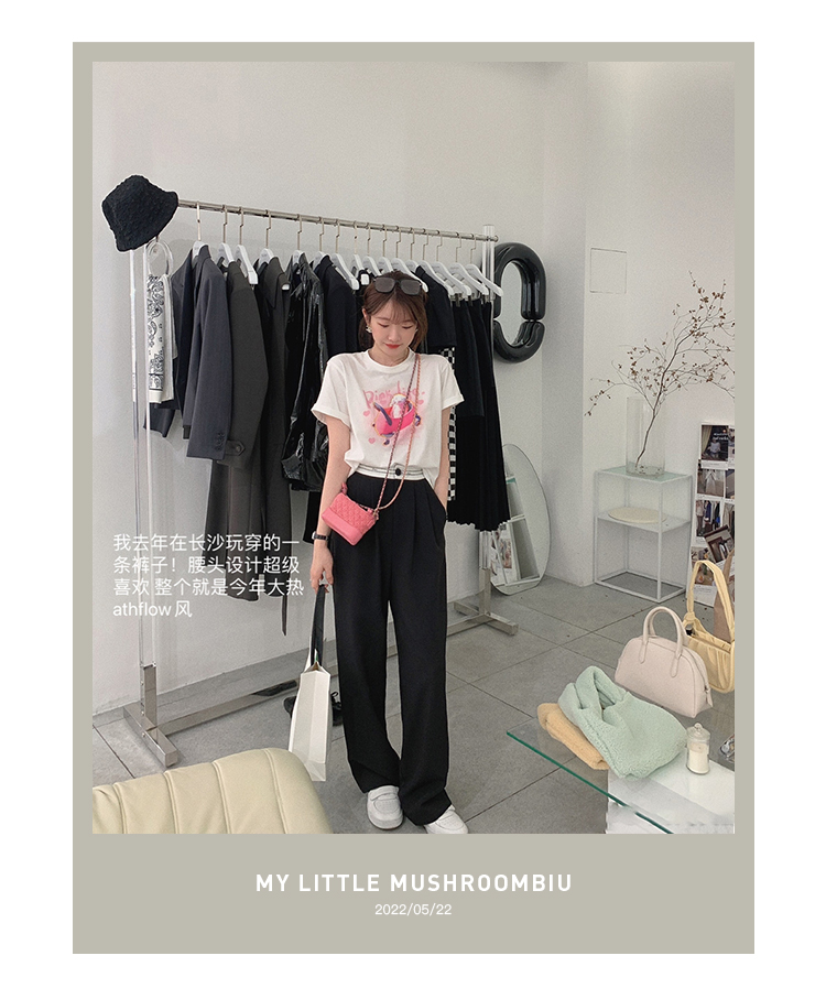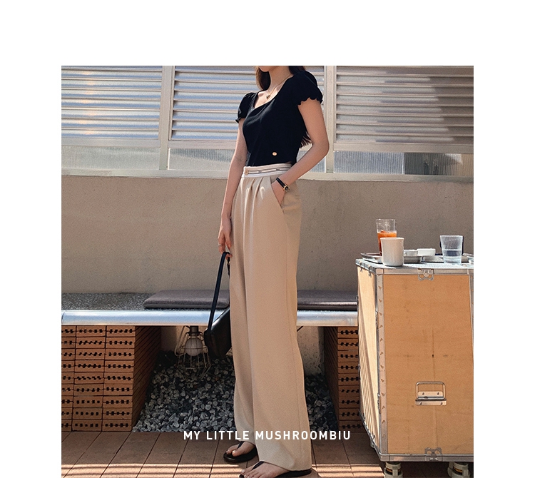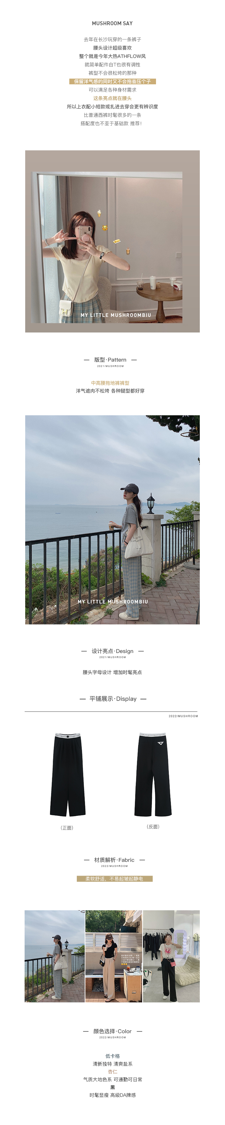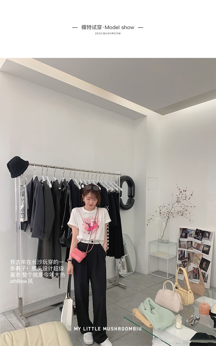金蘑菇菇【day off假日西裤】柔软舒适百搭中高腰拖地裤休闲长裤