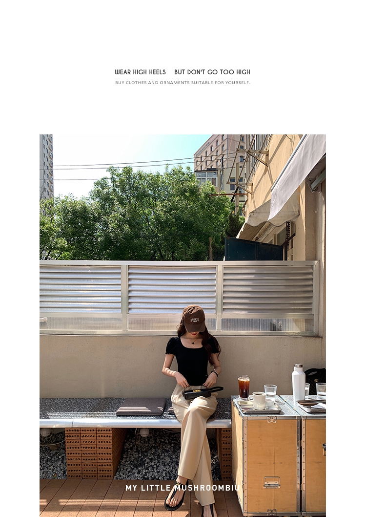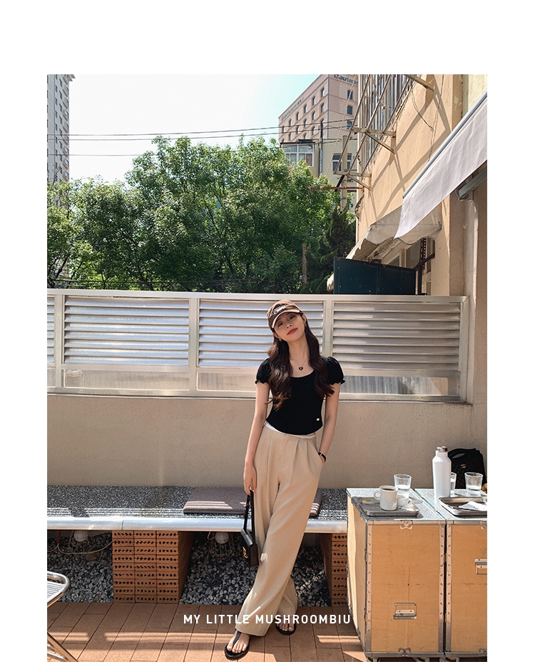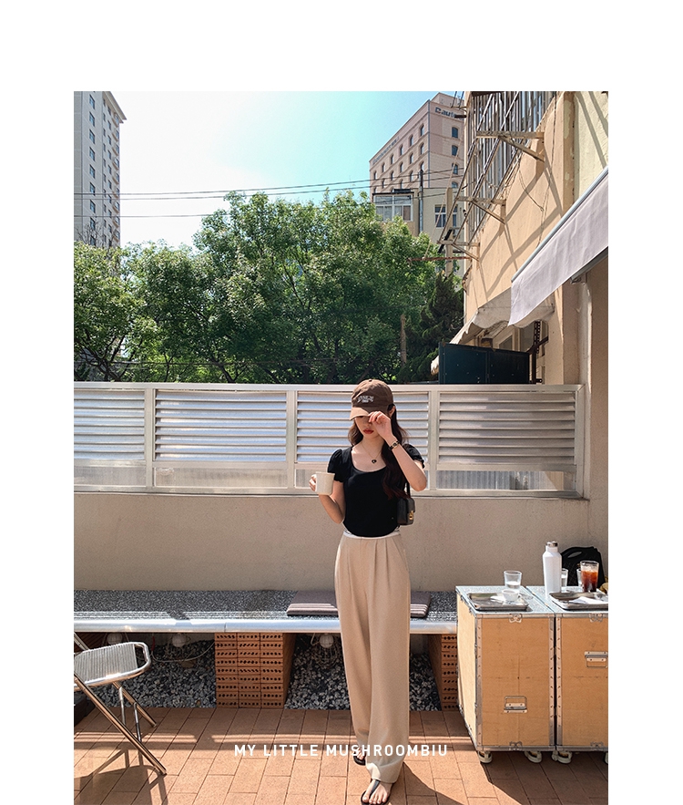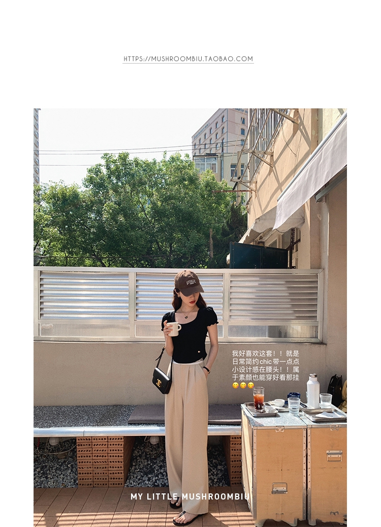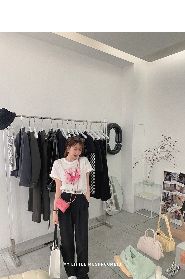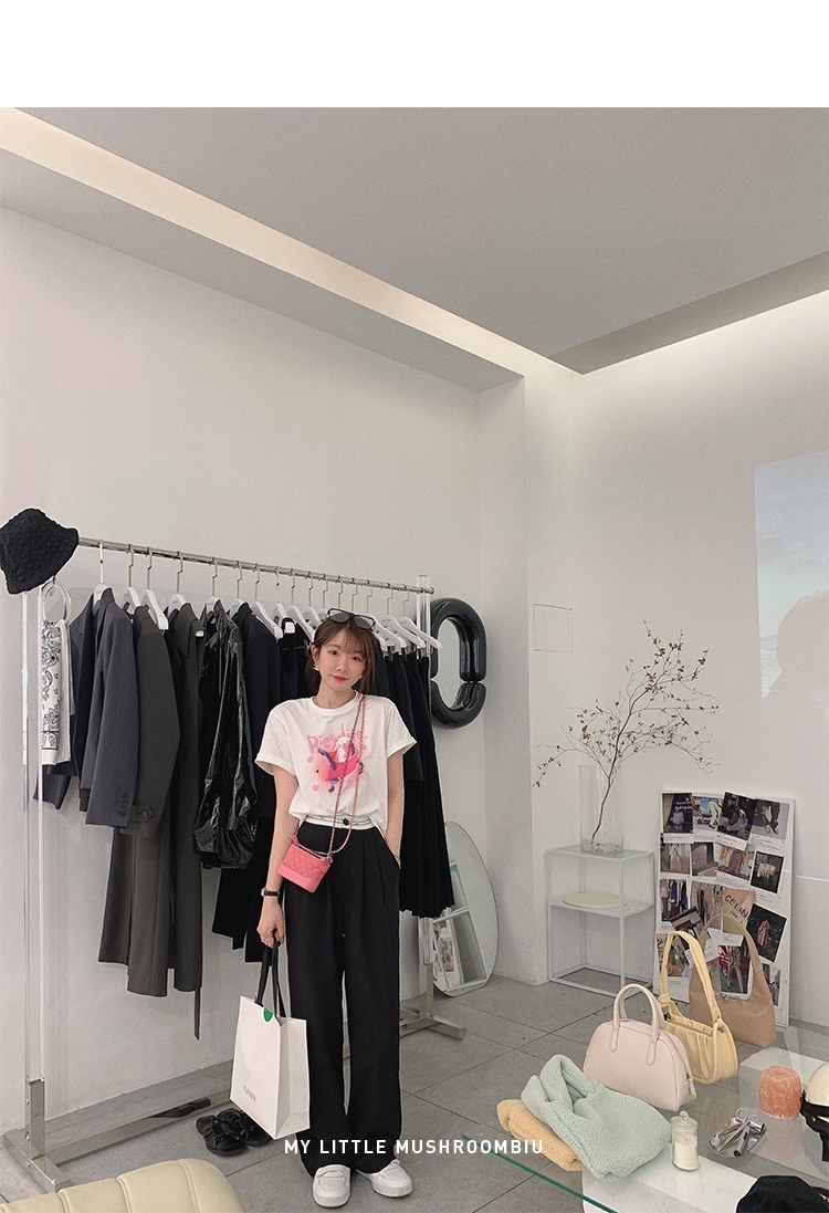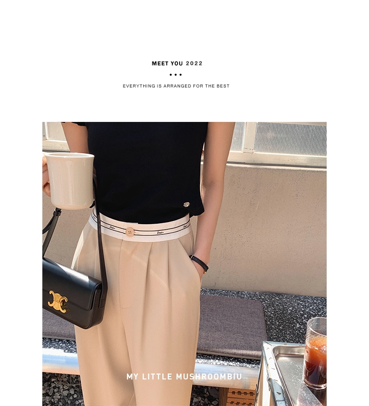 金蘑菇菇【day off假日西裤】柔软舒适百搭中高腰拖地裤休闲长裤