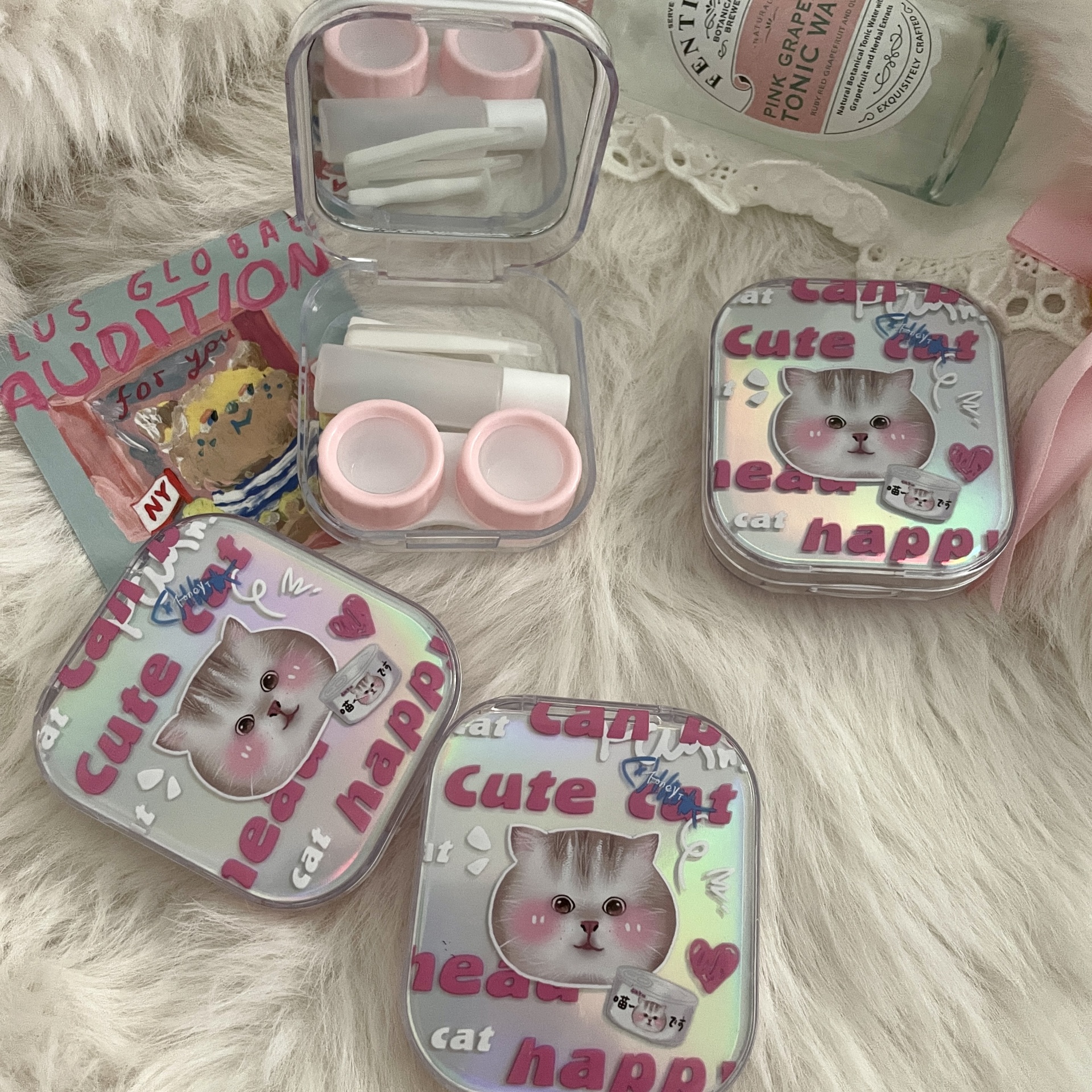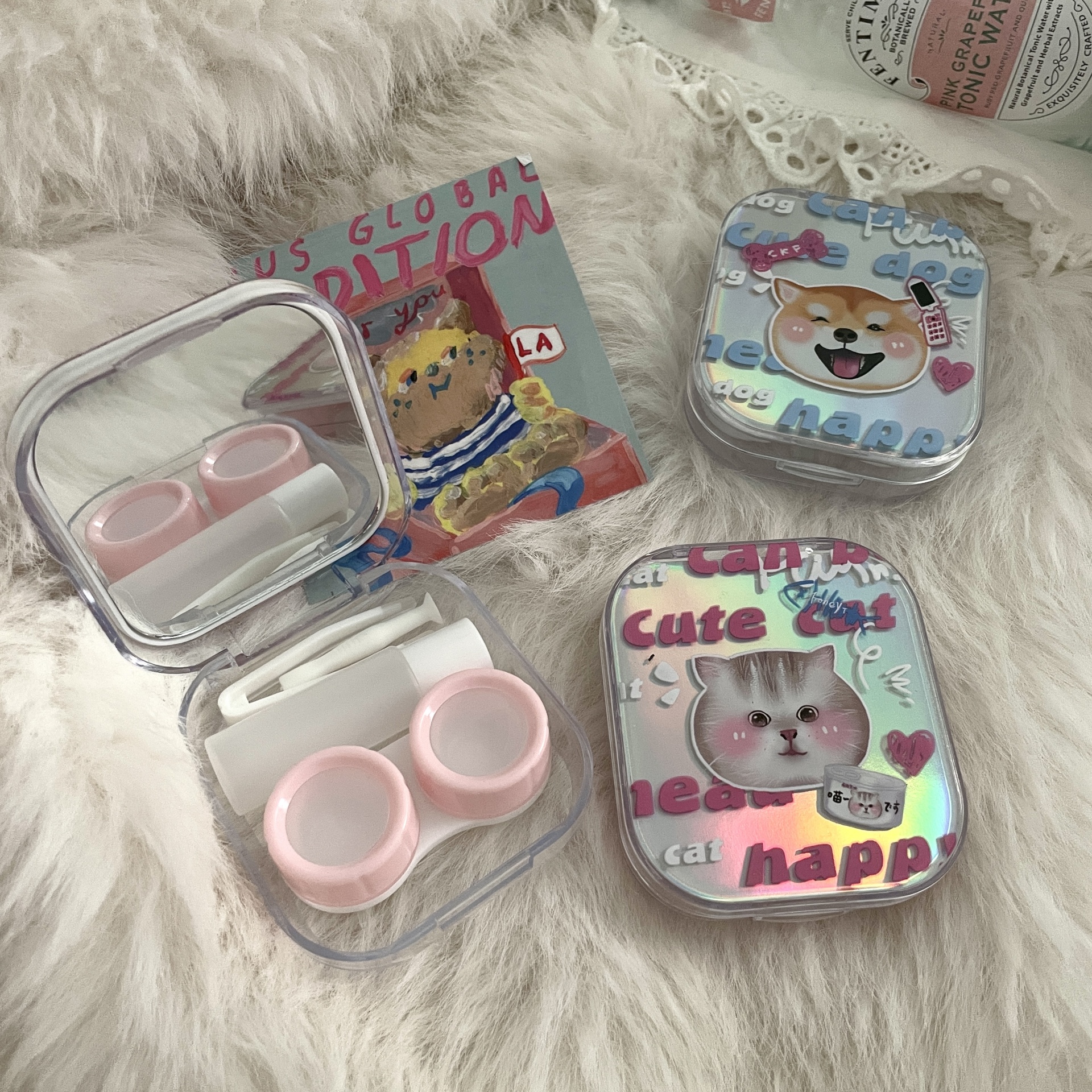 伴侣盒套装组成:双联盒、镊子 ,配戴棒、镜子、瓶子。