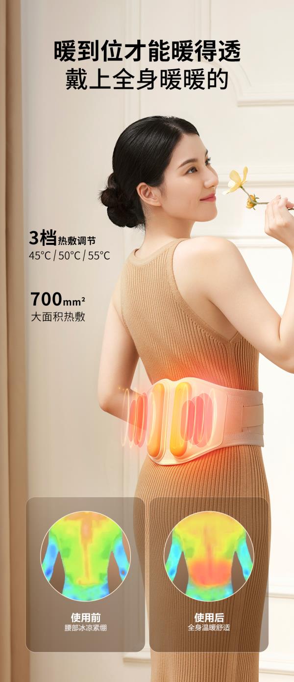 breo倍轻松腰部按摩器Y2按摩腰带热敷暖腰暖腹暖宫便携式护腰椎按摩仪
