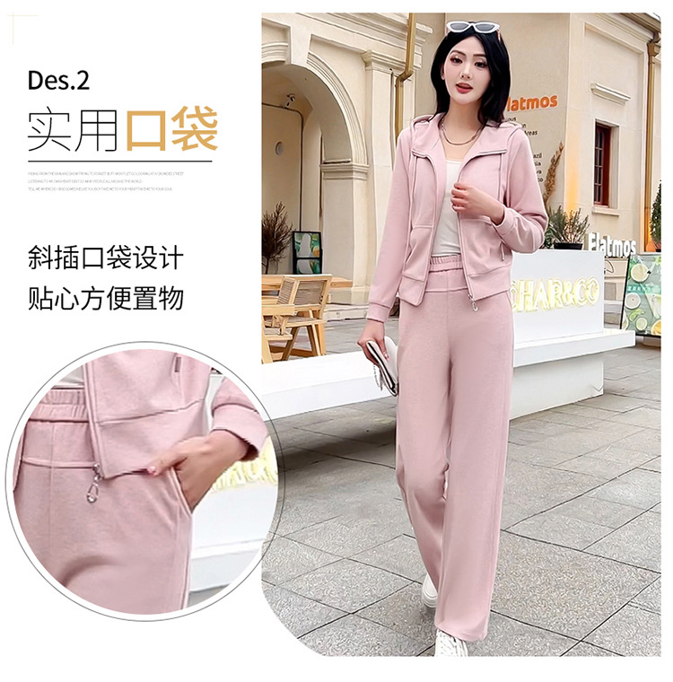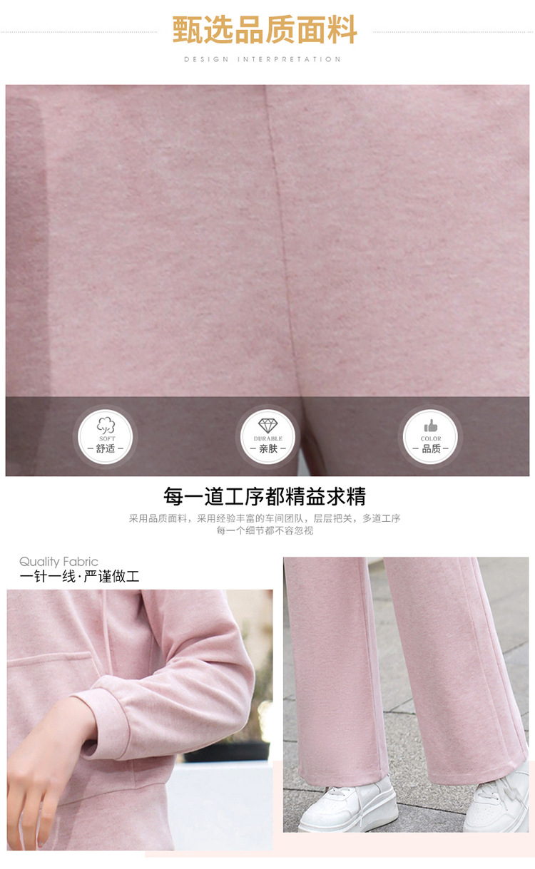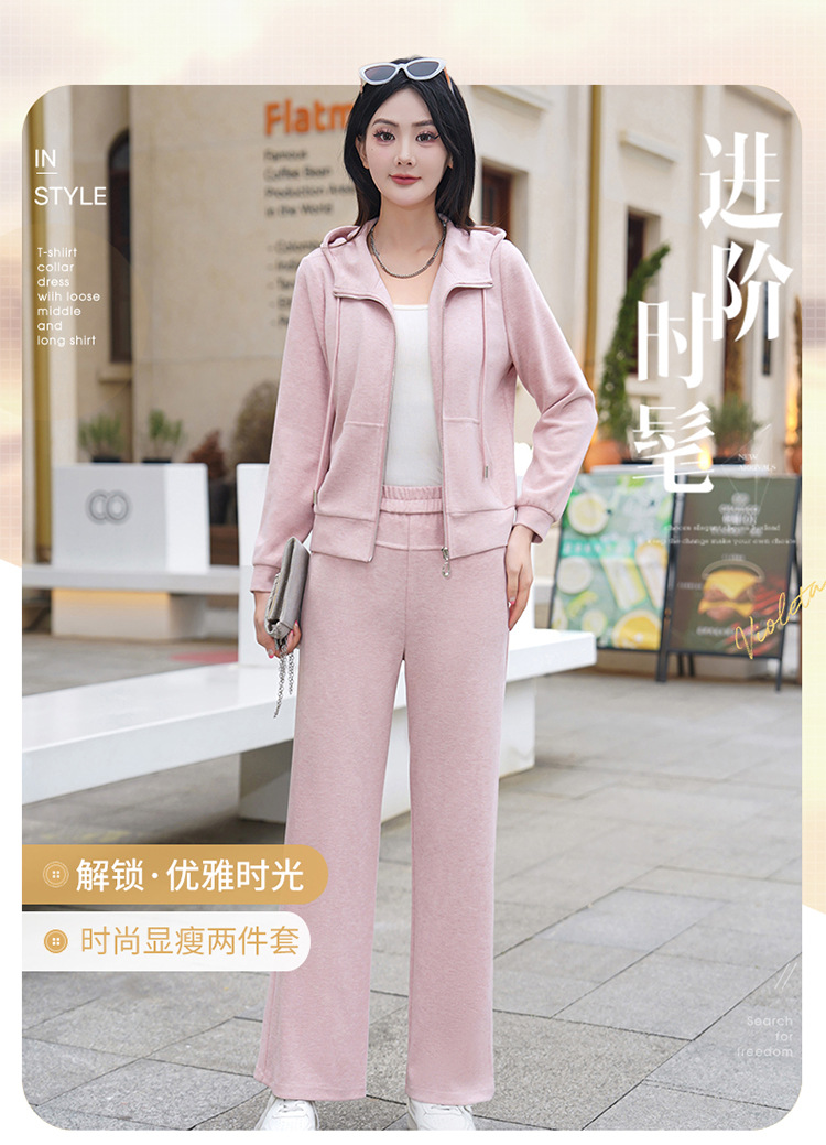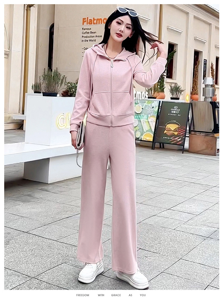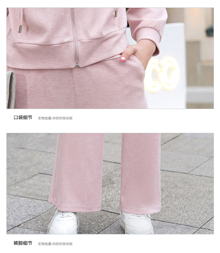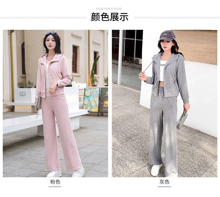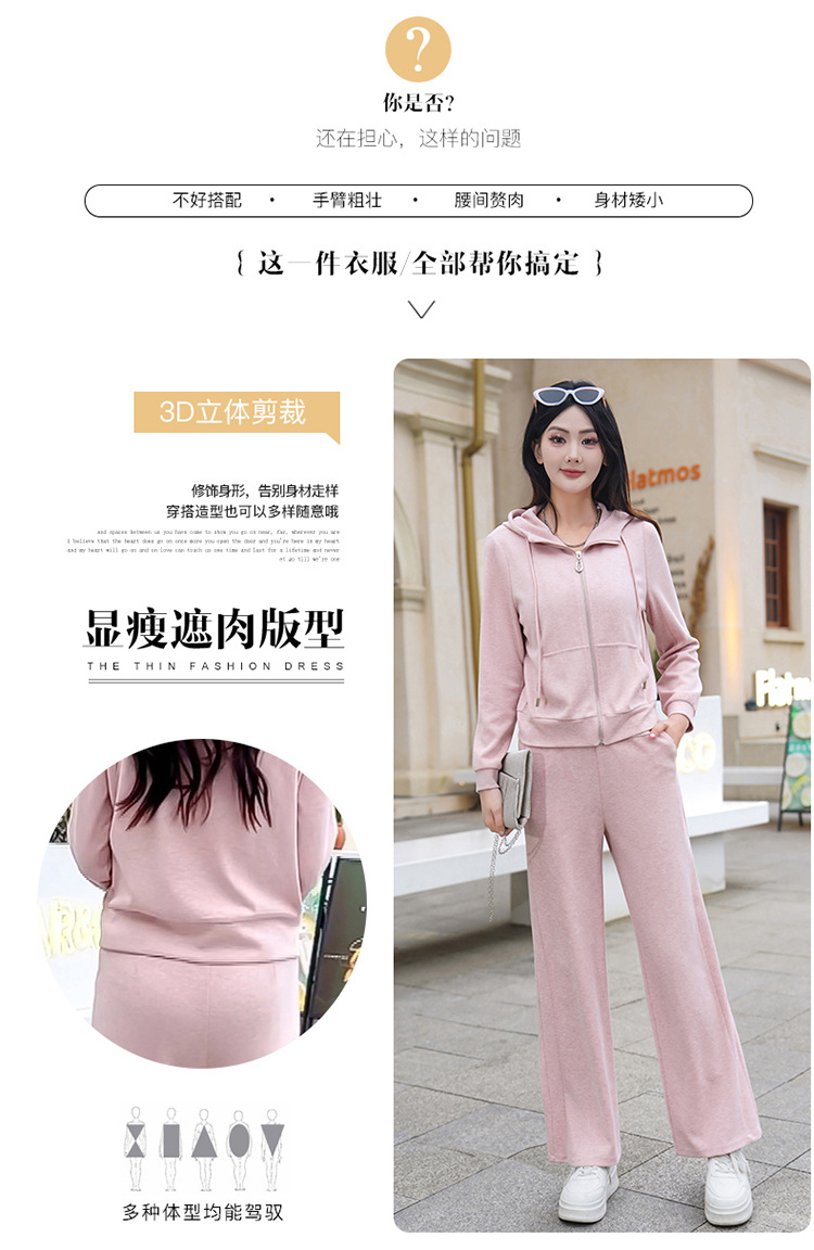 纯色连帽运动休闲短款外套,时尚减龄修身阔腿裤两件套QYM- XYKL-4846-L