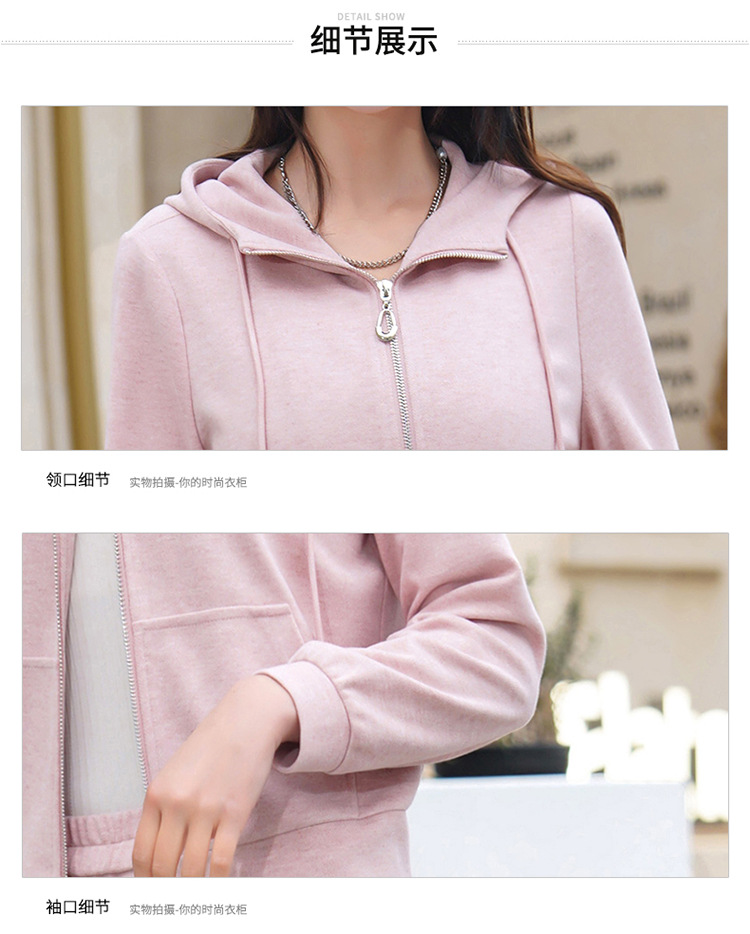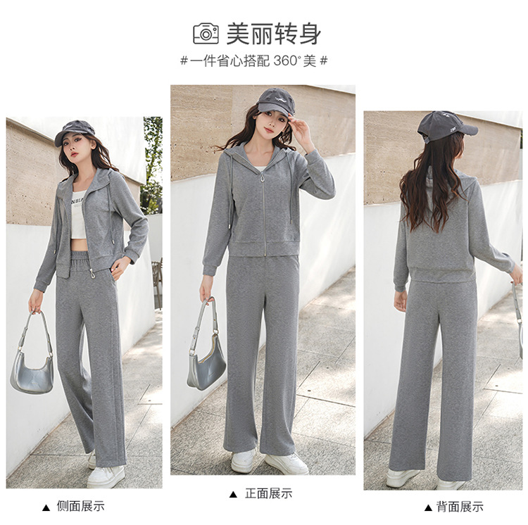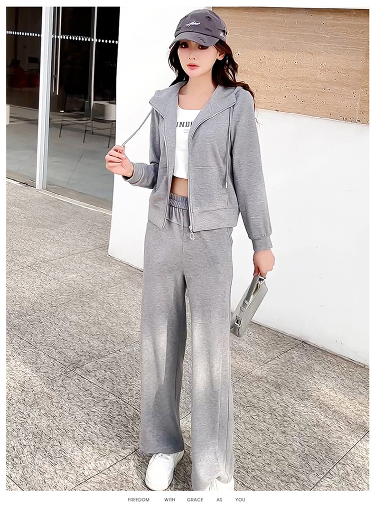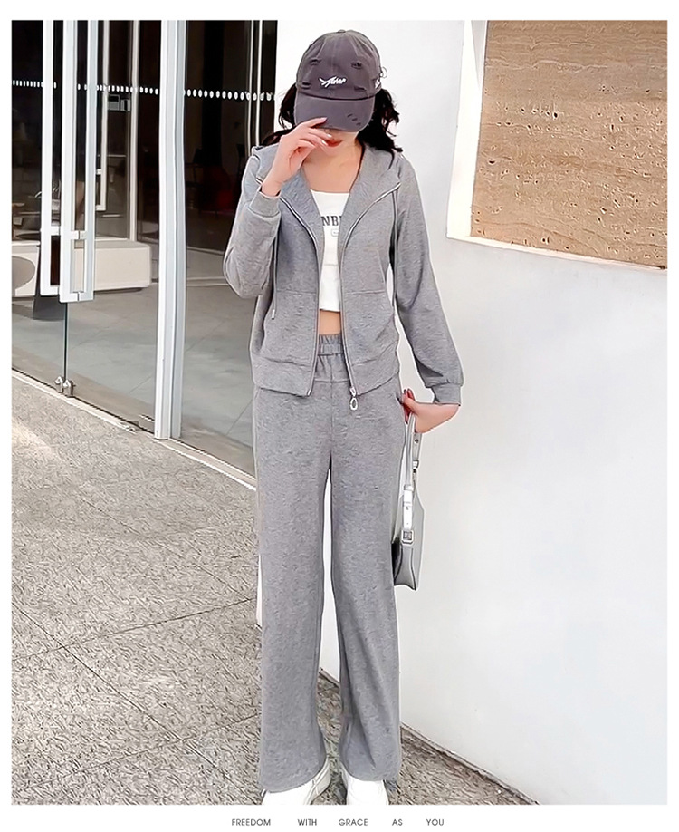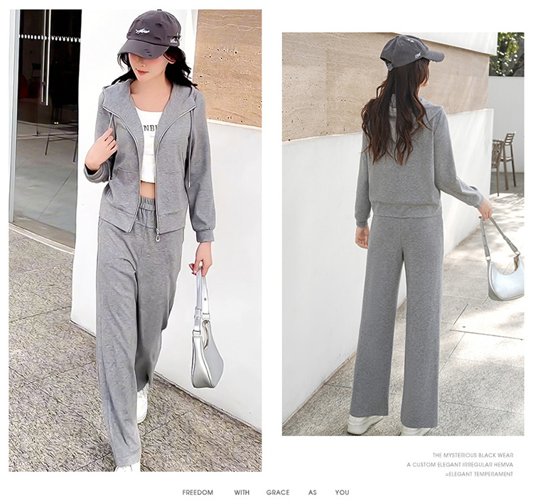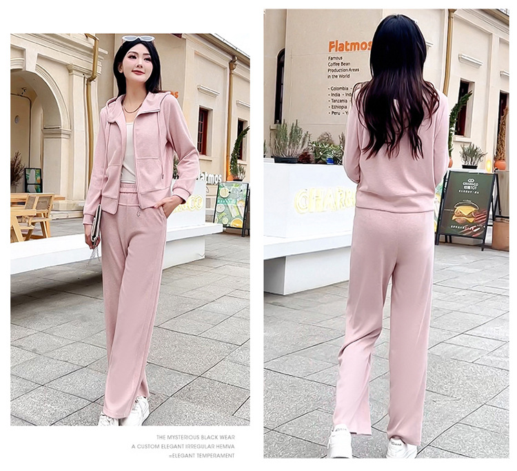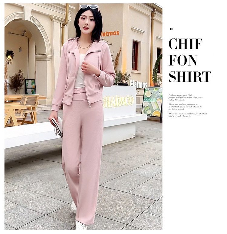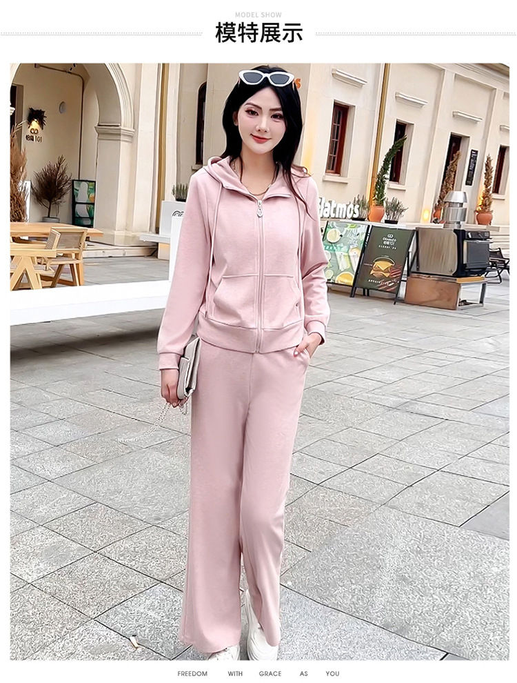 纯色连帽运动休闲短款外套,时尚减龄修身阔腿裤两件套QYM- XYKL-4846-L