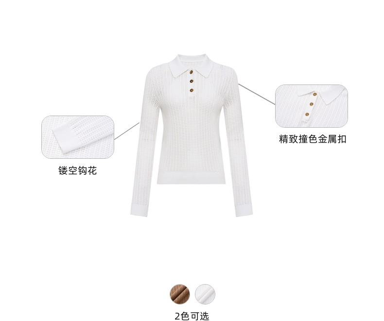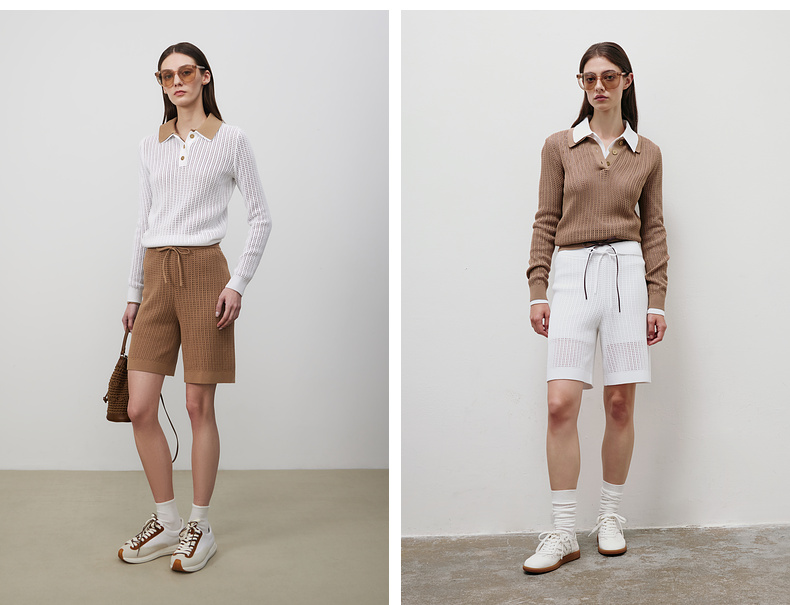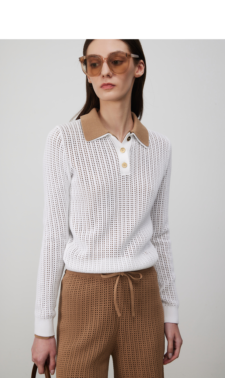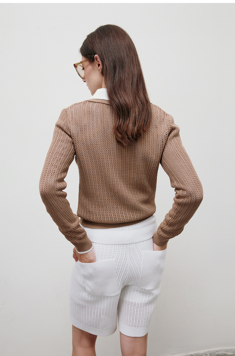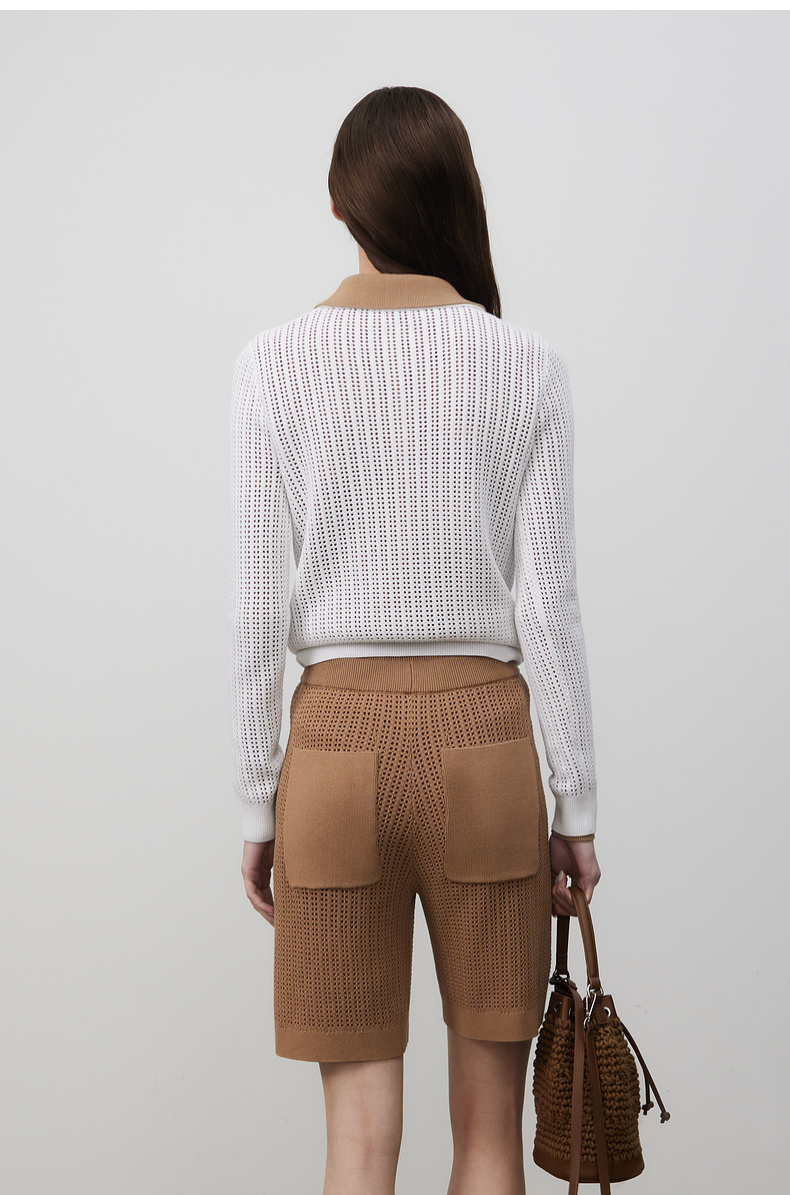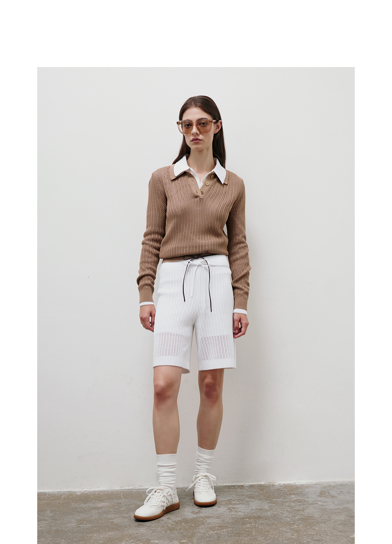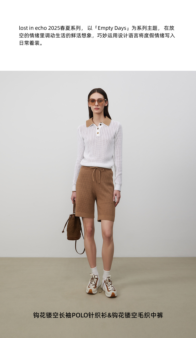 lost in echo2025春夏新款钩花镂空长袖透气POLO针织衫针织中短裤