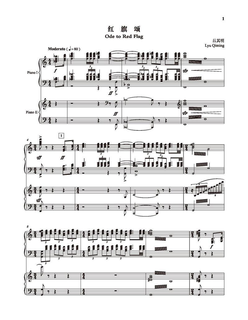 红旗颂 双钢琴版 总谱 吕其明作曲 上海音乐出版社
