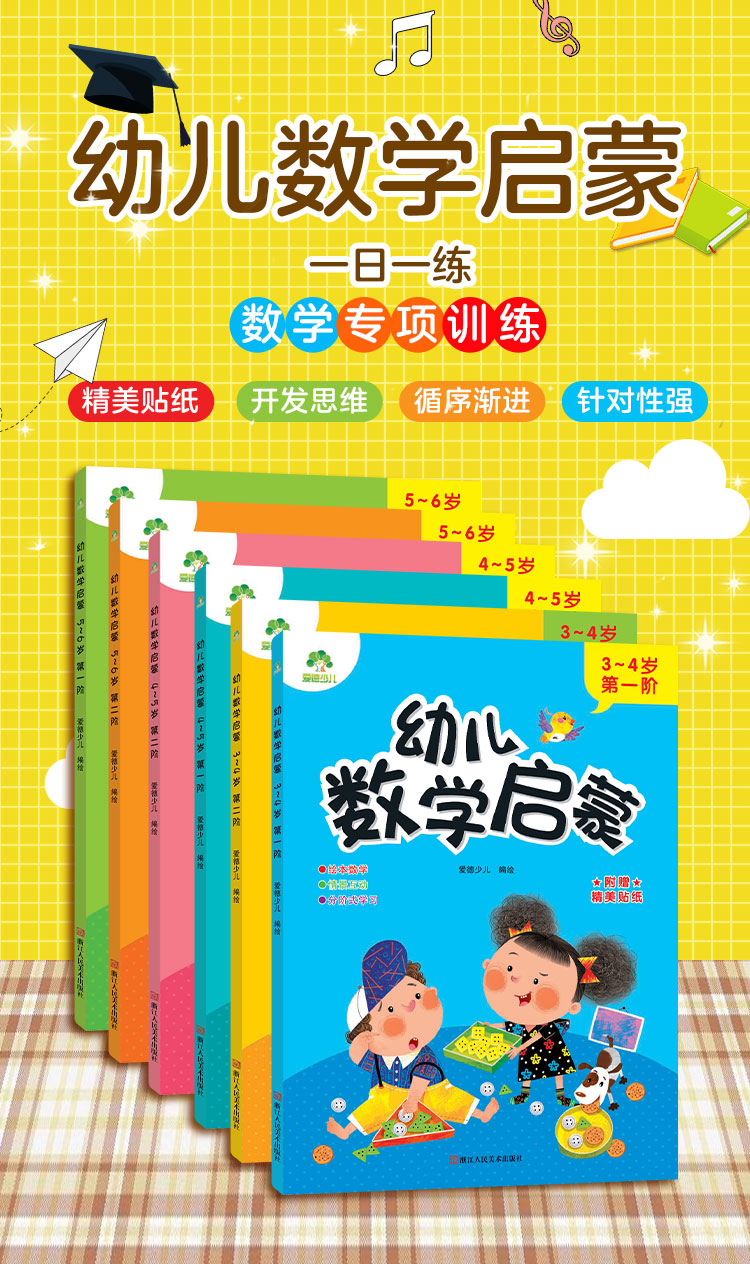 爱德少儿【幼儿数学启蒙】教材数学思维训练3-4-5岁儿童逻辑书籍幼小衔接一日一练阶梯数学游戏幼儿园大班练习题 学前班小班早教用书