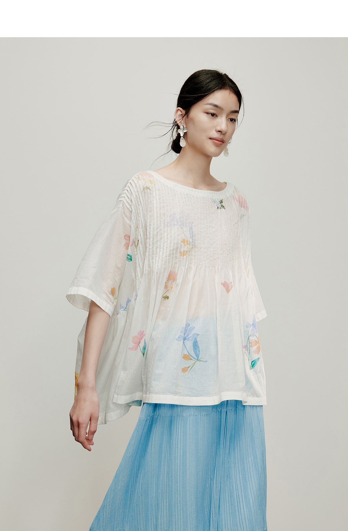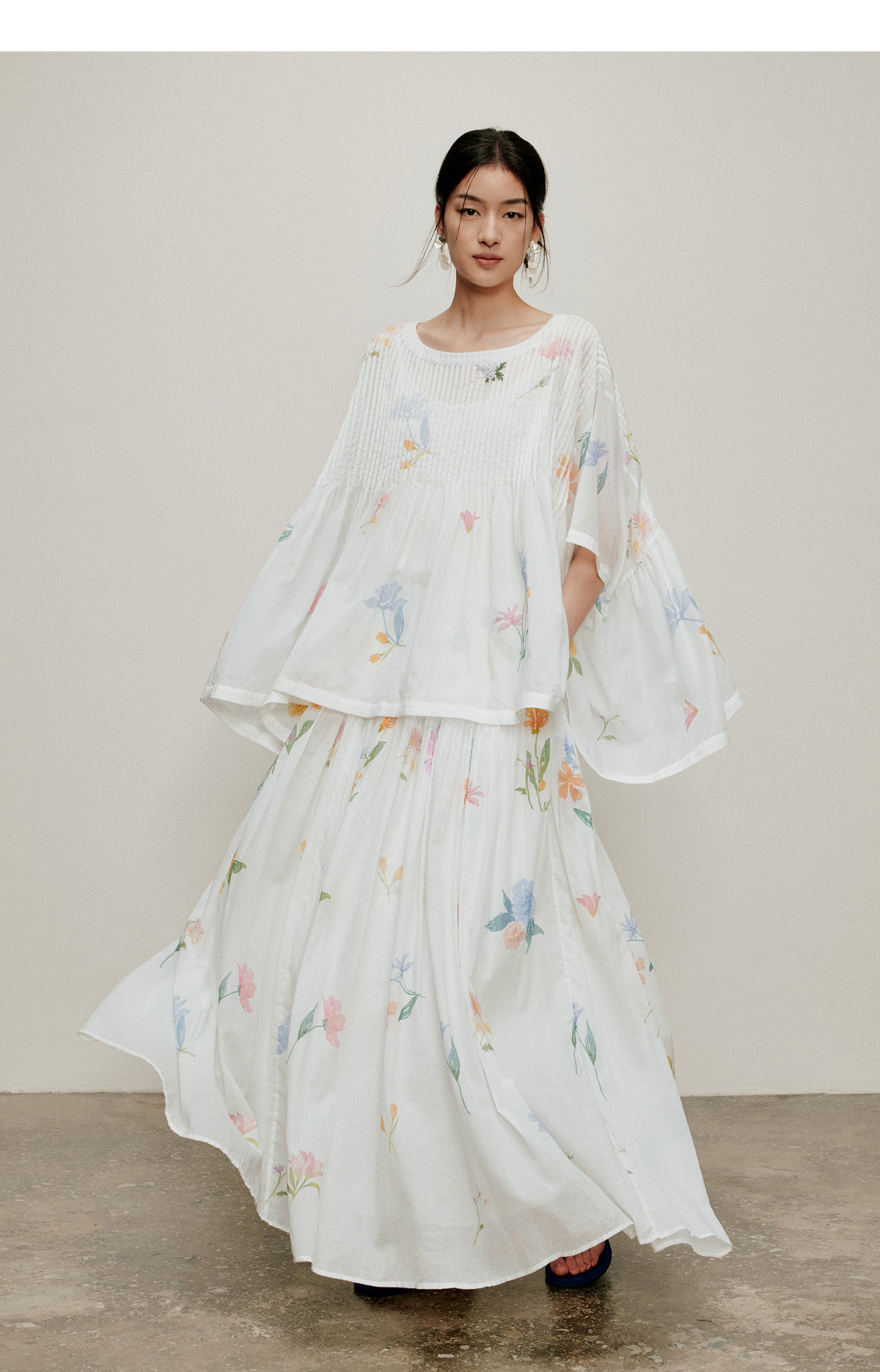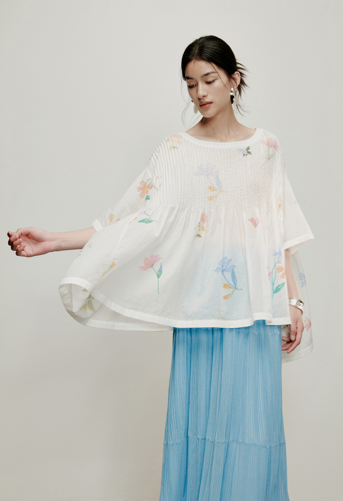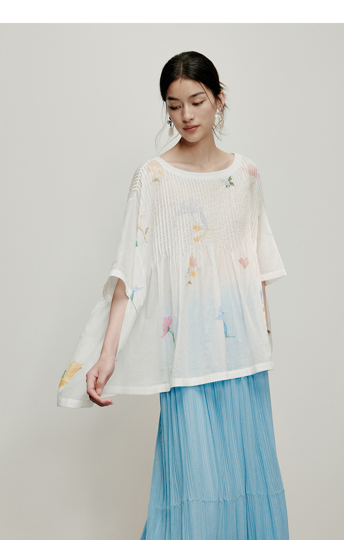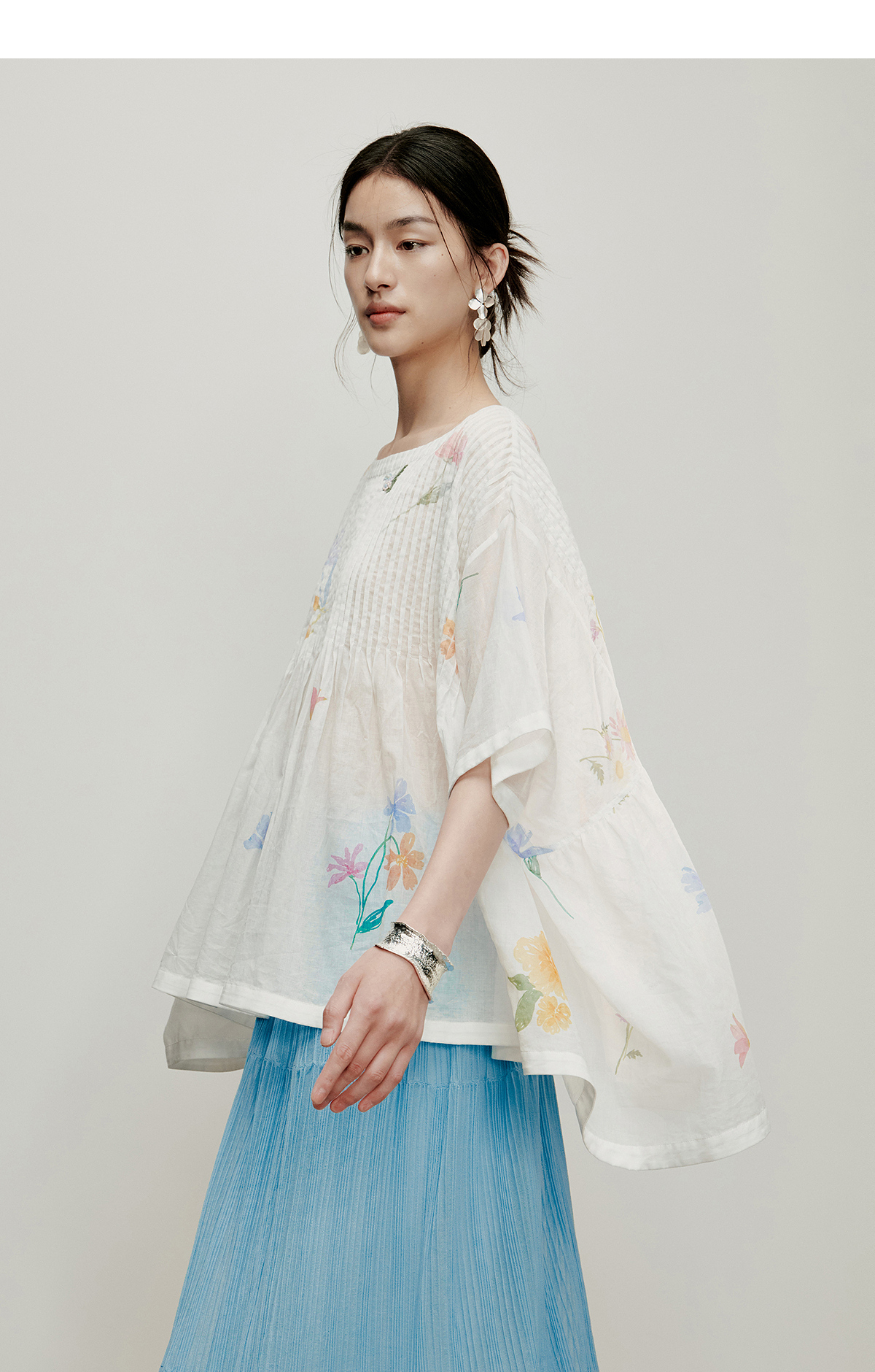 【林栖设计小店】手工绣花|婴儿棉压褶肌理感2026夏新款印花衬衣两件套1962140