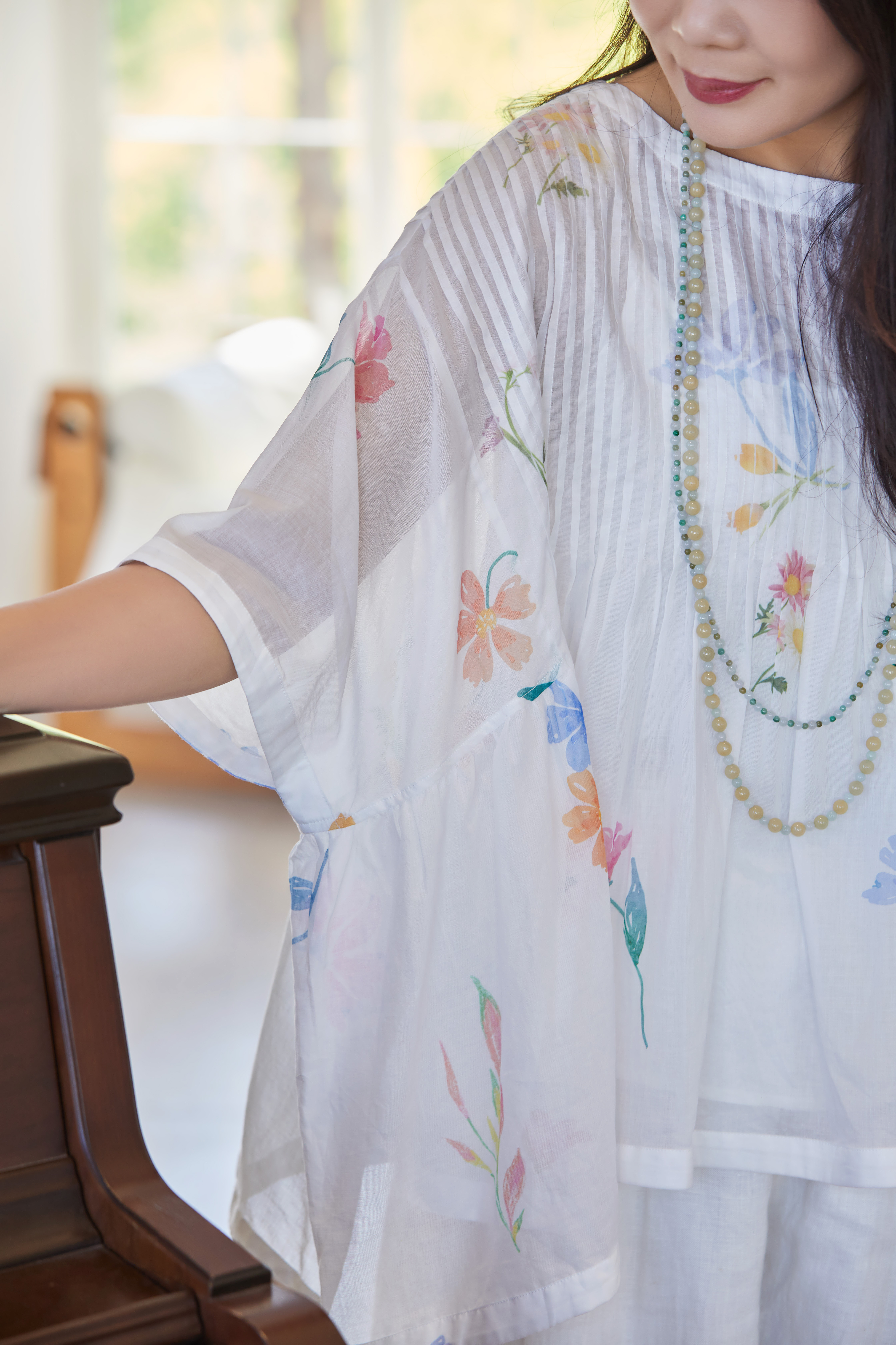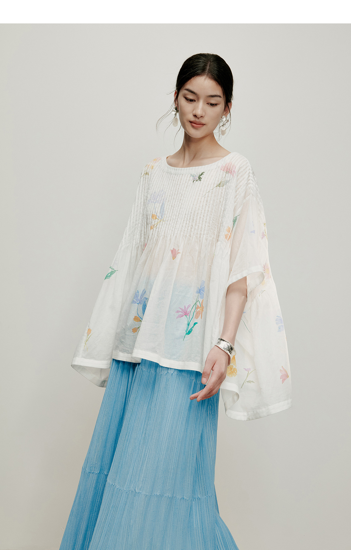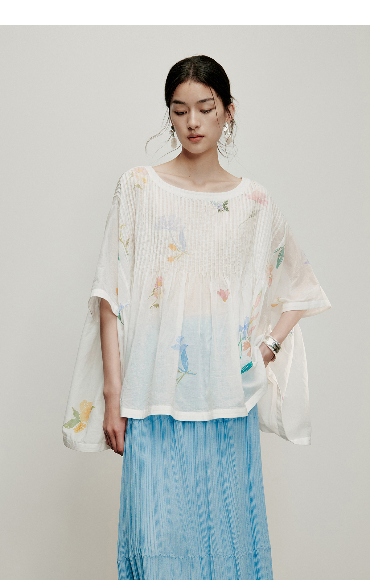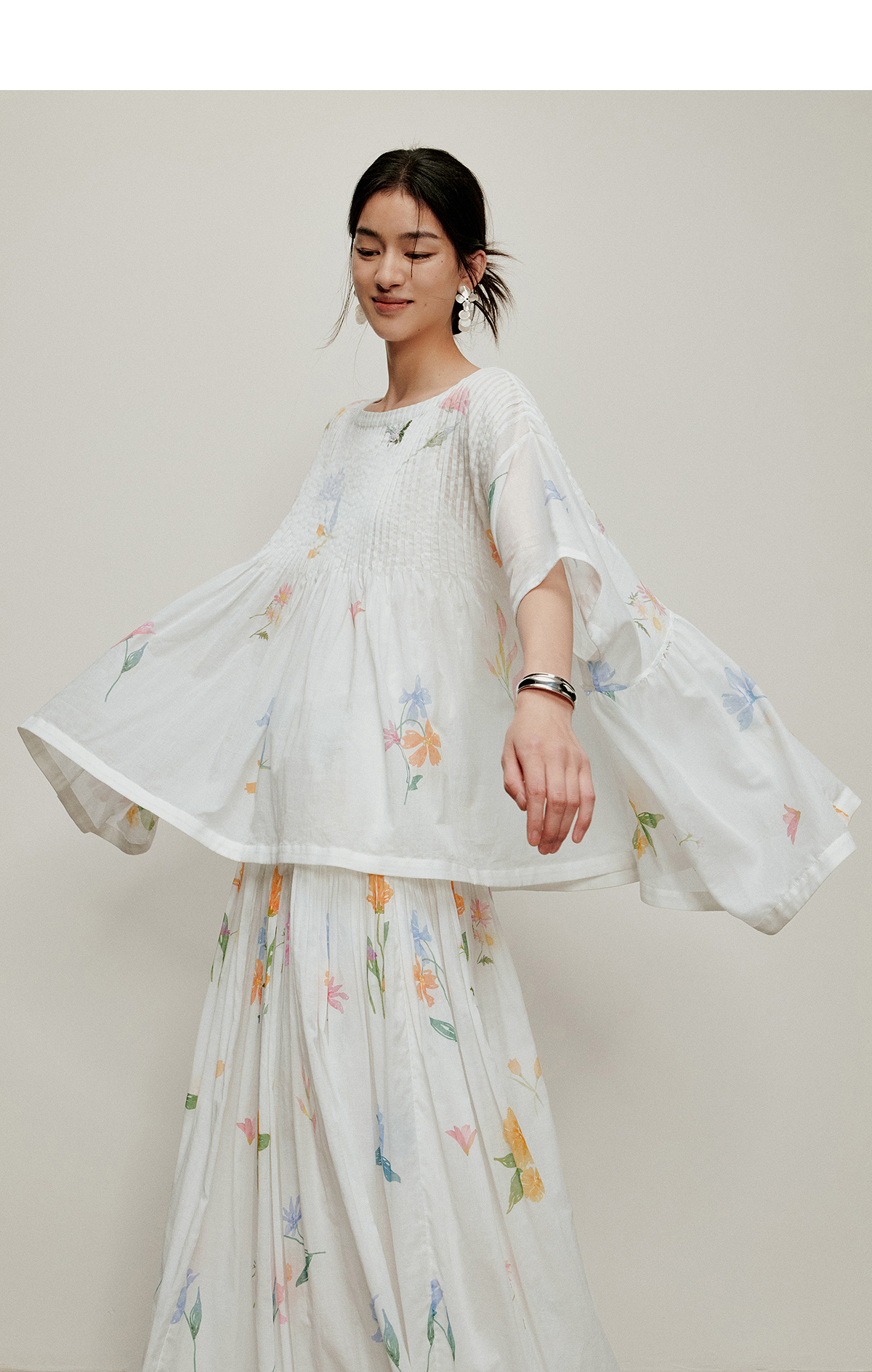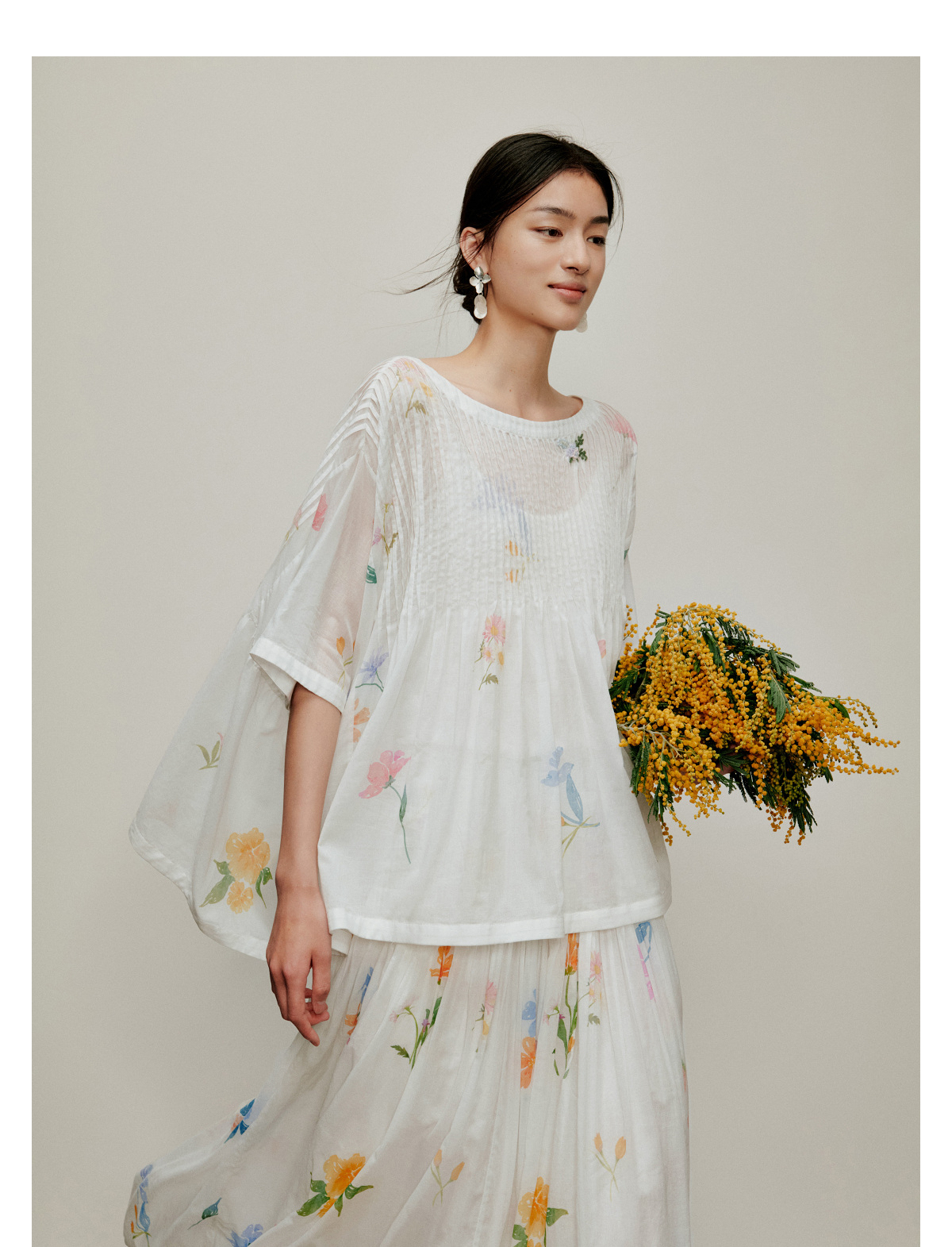 【林栖设计小店】手工绣花|婴儿棉压褶肌理感2026夏新款印花衬衣两件套1962140