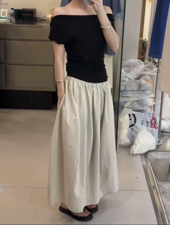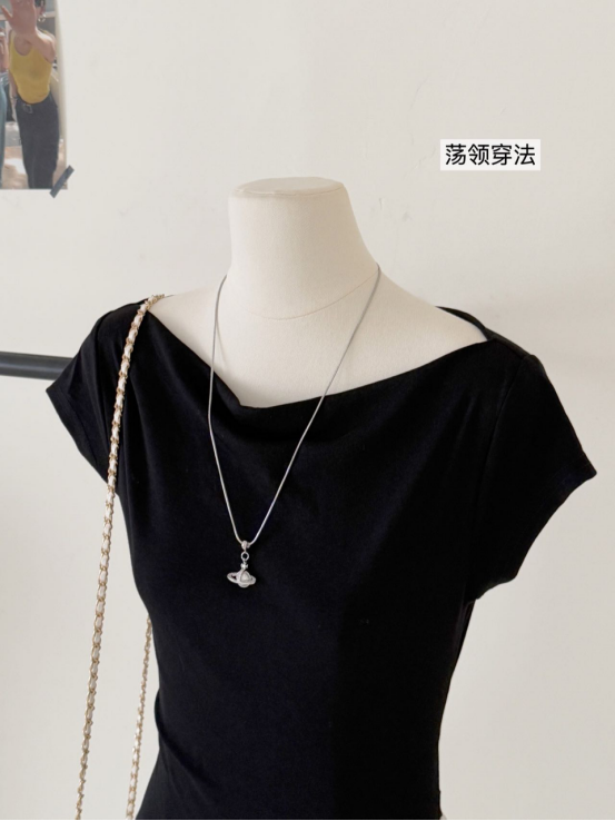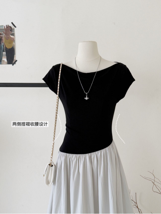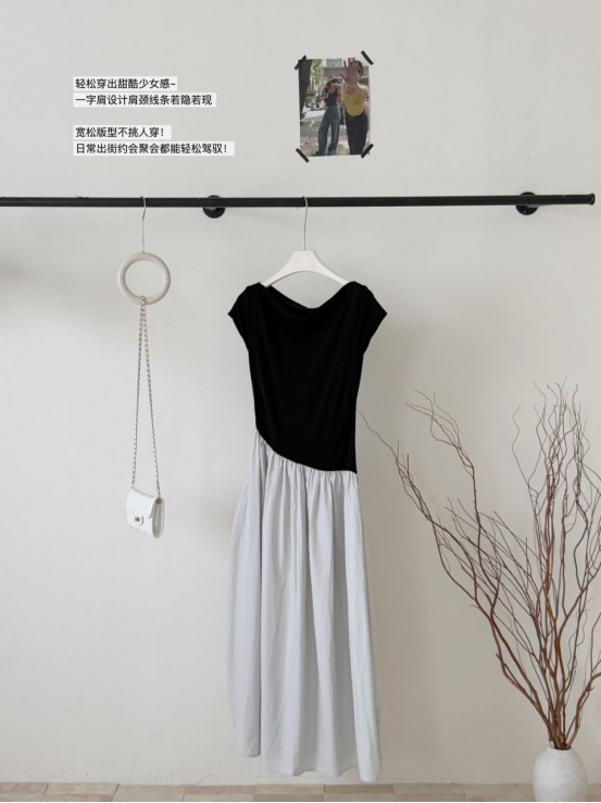 本期菁致+贵气感选手 美的让人挪不开眼 领口两穿+拼接设计 实穿率爆表💥的斜肩连衣裙
