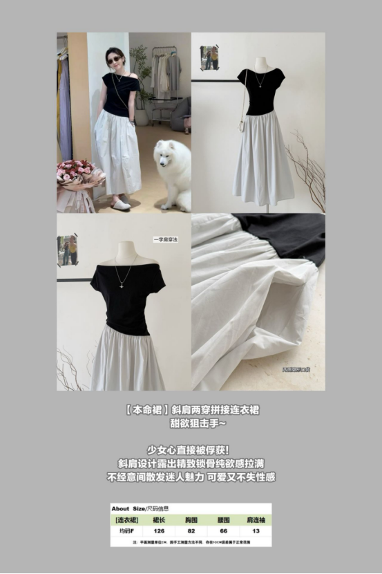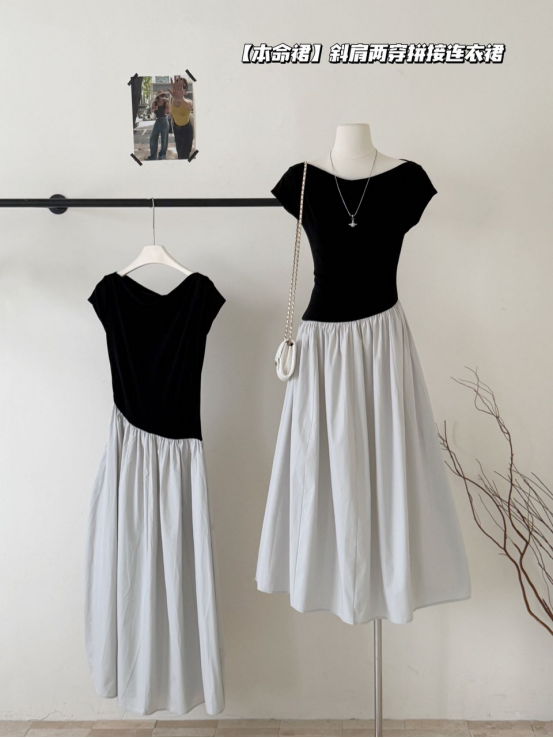 🌸高级感这条裙子yyds~~🖤一字肩出街太美👗 【岚可可】斜肩两穿拼接连衣裙,甜欲狙击手~😍少女心直接被俘获!🤭 ✅可斜肩可一字肩穿!