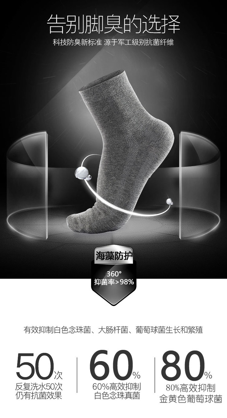 【甄选新疆长绒棉】Basiclive 基础生活海藻防臭袜 轻薄透气 高支纱线密织 柔软细腻 不臭脚 健康新升级 避免脚臭尴尬