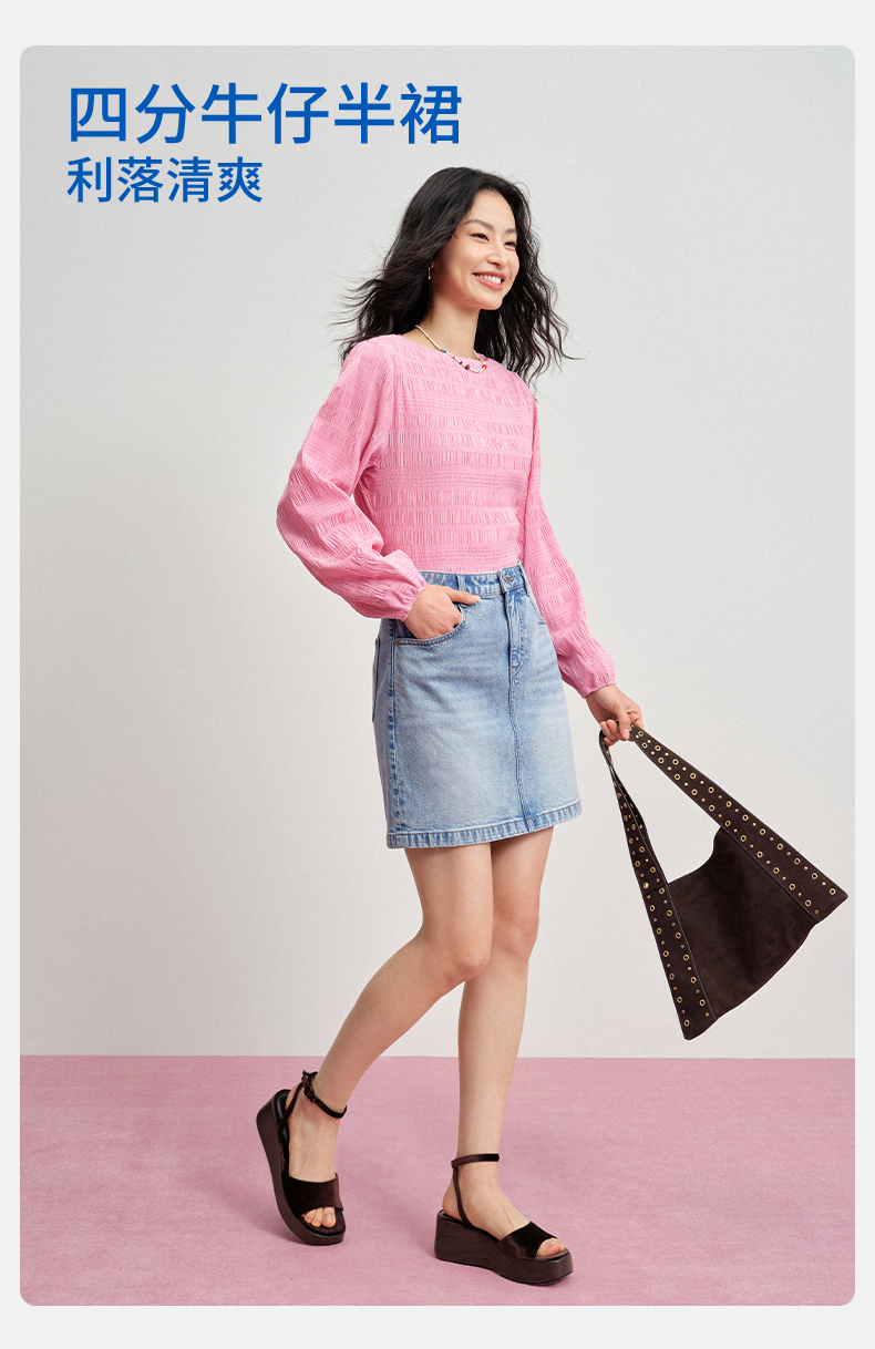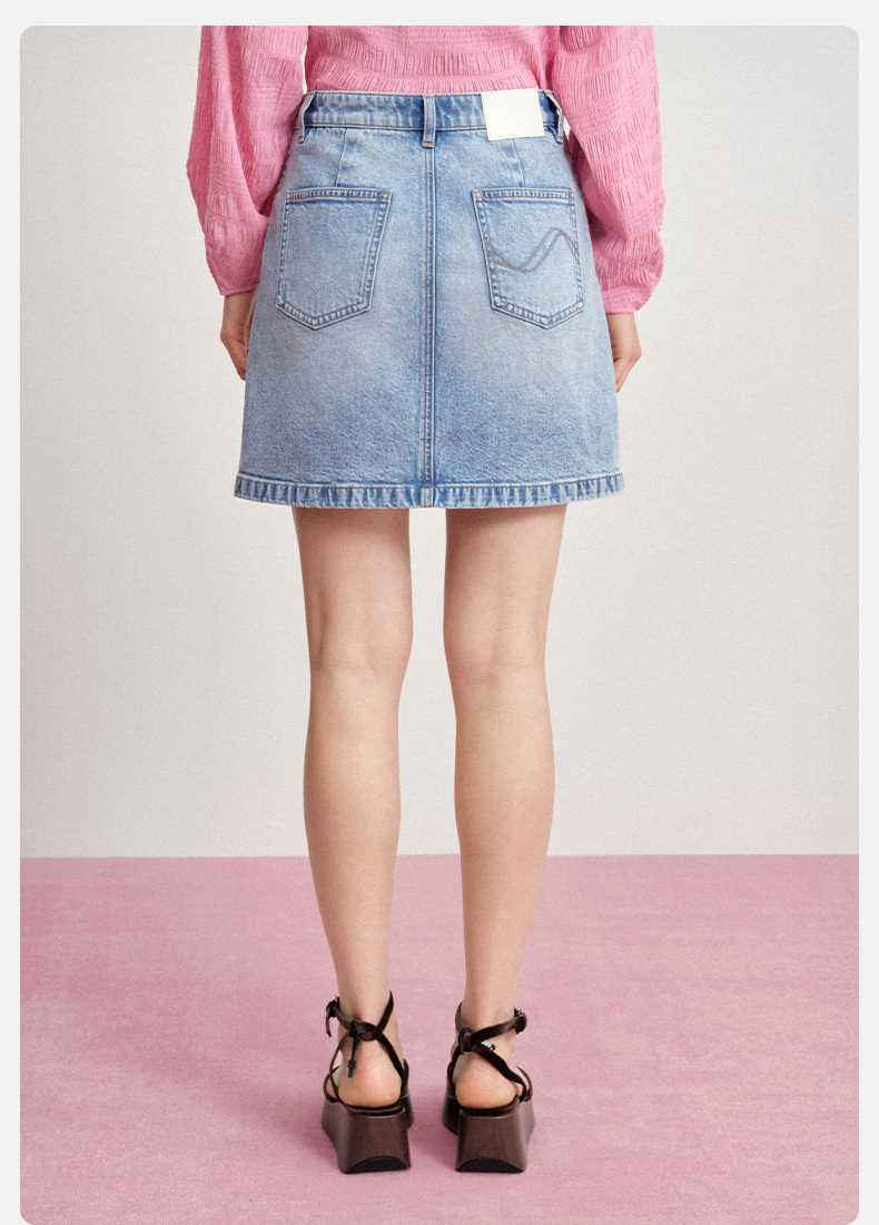 【四分牛仔半裙】simplepieces夏新款SPS牛仔短裙微弹微A字包臀裙
