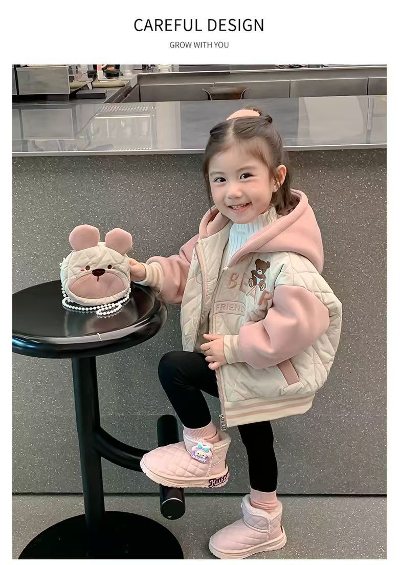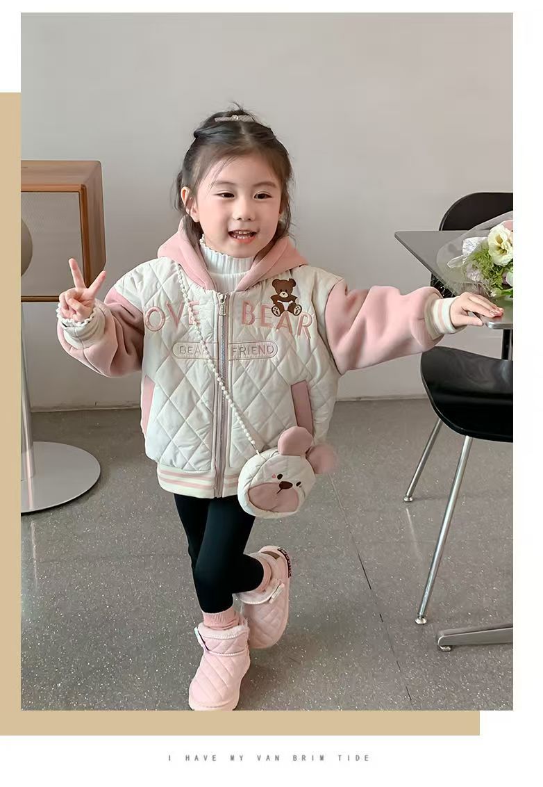 女童外套秋冬新款洋气女宝宝秋季加绒加厚上衣儿童秋装棉衣
