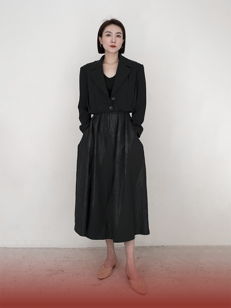 LIYIHAN提花褶皱半裙 Y234Q10890
