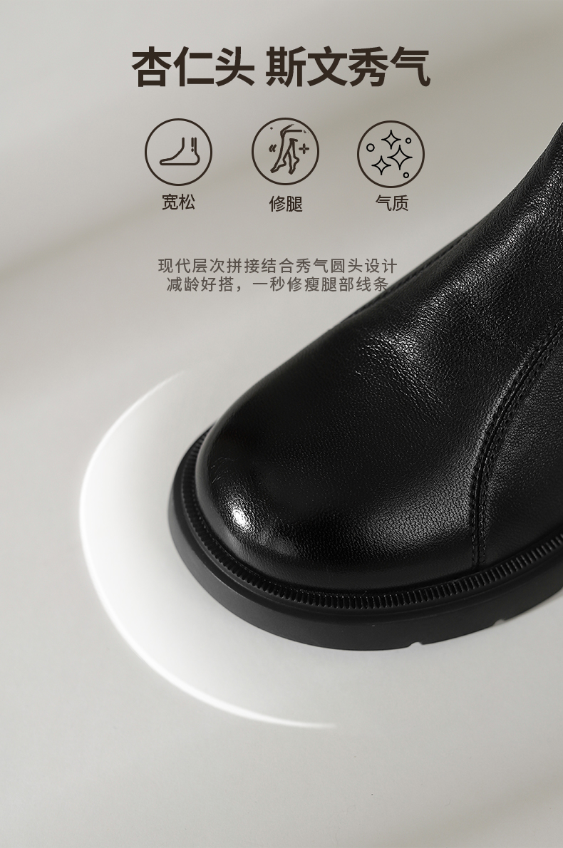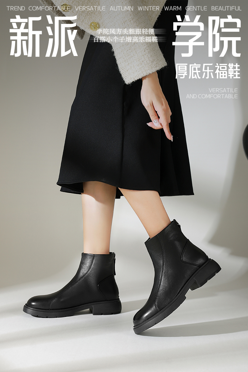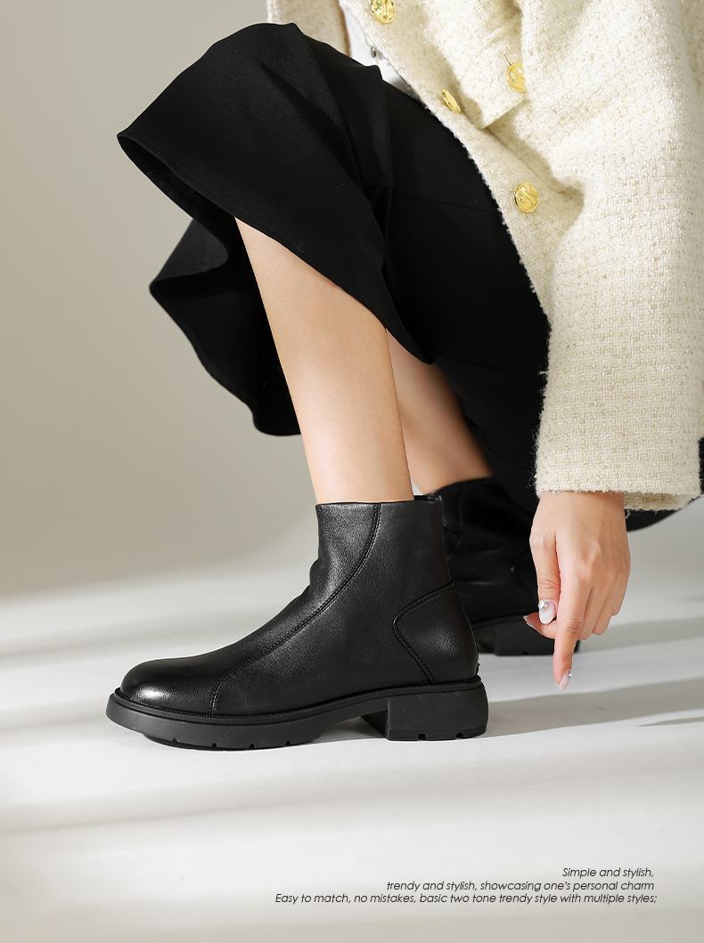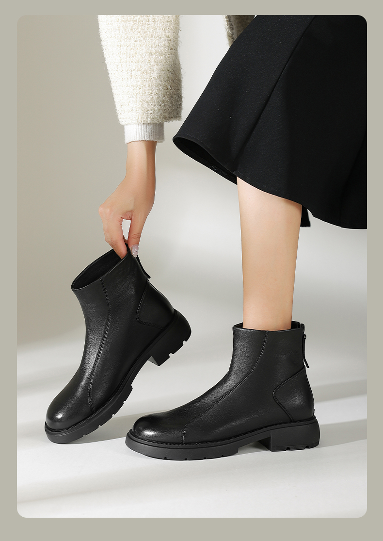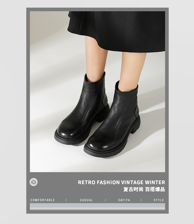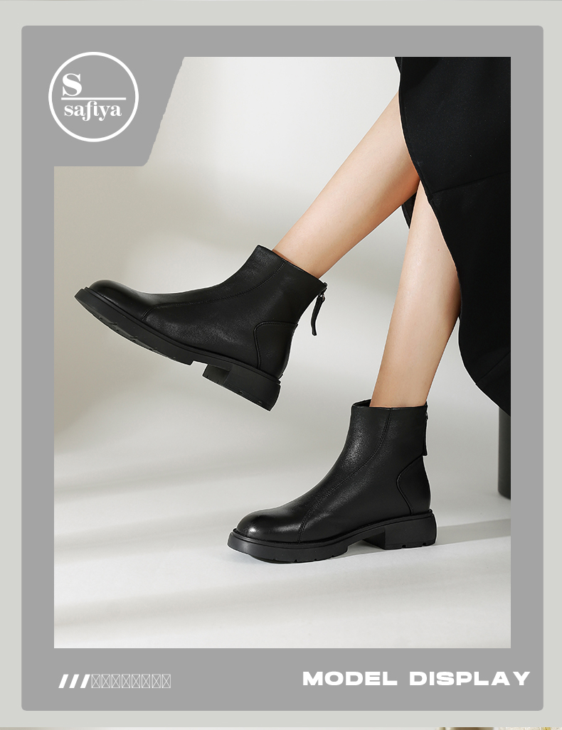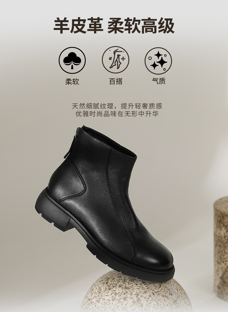 Safiya/索菲娅2024冬季休闲圆头粗跟时尚百搭羊皮后拉链短踝靴 SF44116026