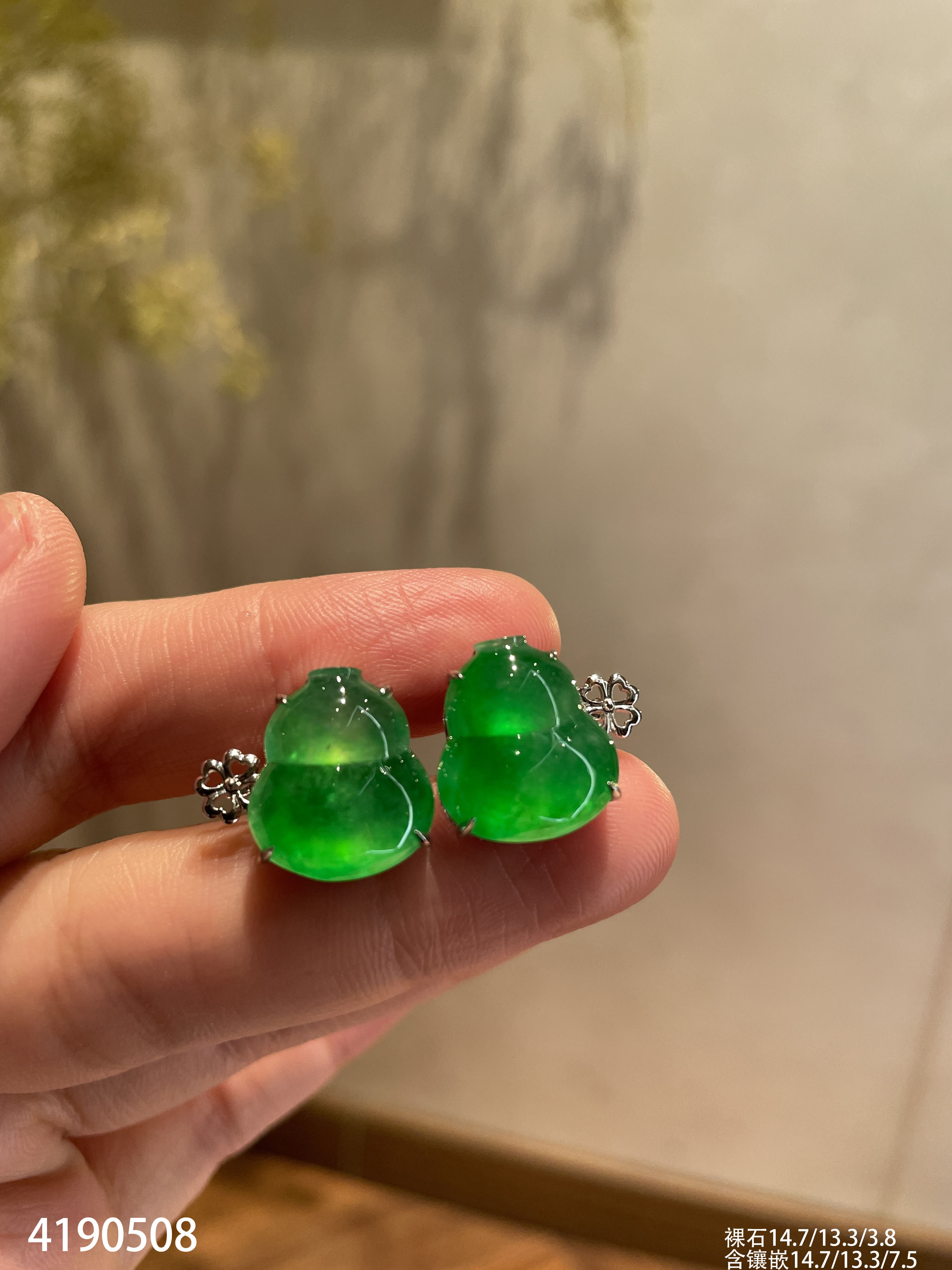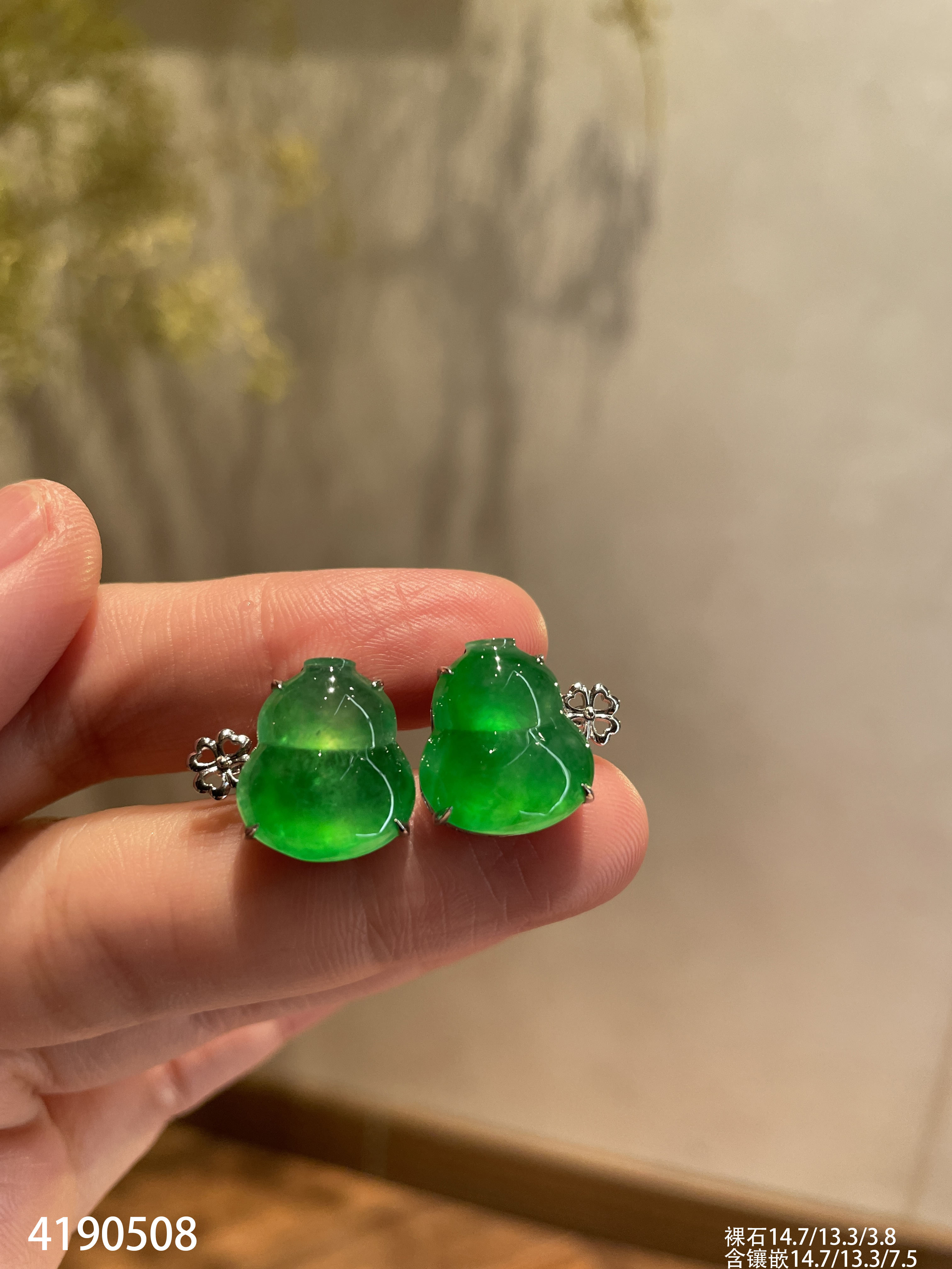 玻璃种阳艳绿葫芦耳钉【4190508】具体价格微信咨询