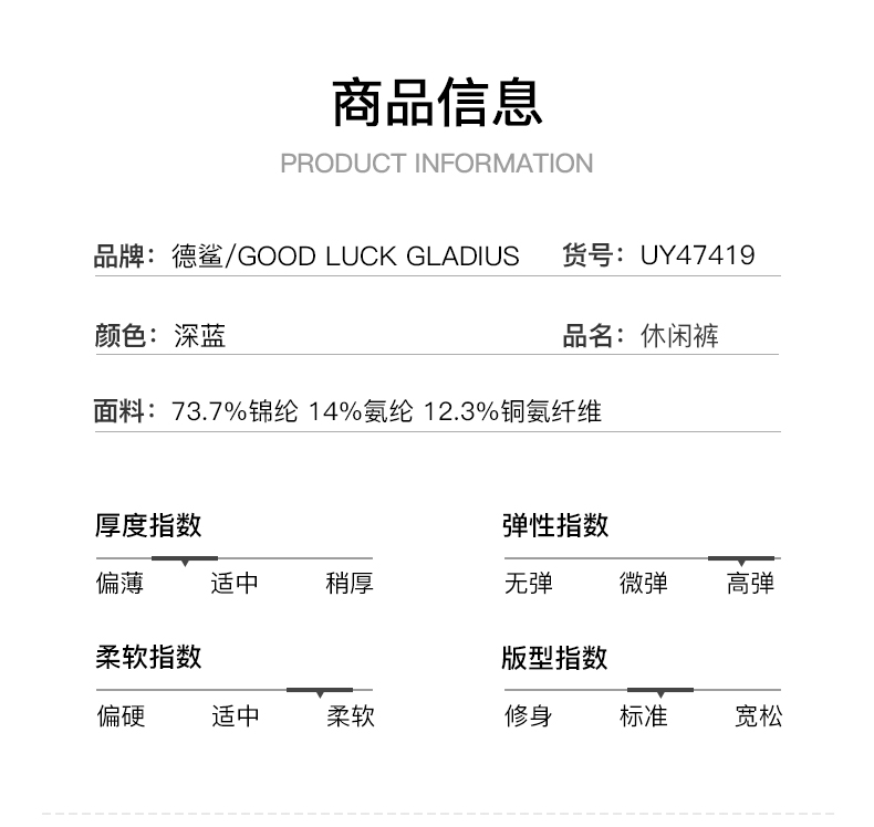 GOOD LUCK GLADIUS品牌由“浙江德鲨服饰有限公司”引进中国市场,经过多年发展,凭借完善的终端形象,规范化的销售管理,迅速赢得消费者的认可,引领国内消费流行,是成功人士首选男装品牌。