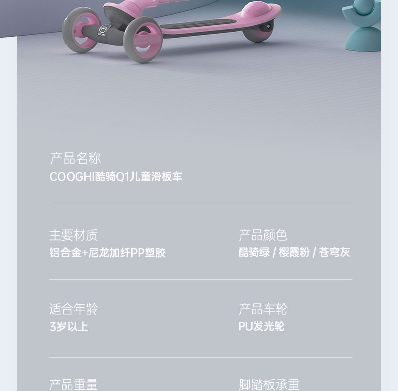 【积分商城】COOGHI酷骑Q1儿童滑板车 可折叠大童滑板车