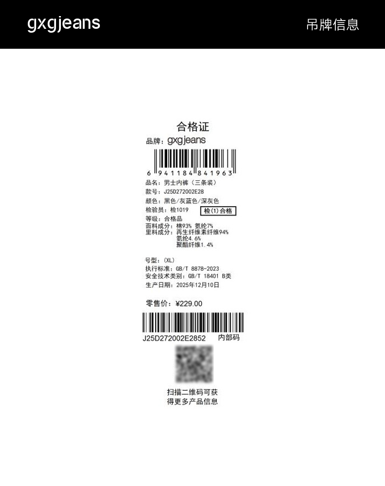 gxg.jeans男士内裤【3条装】多色基础宽松男士平角内裤裤衩短裤 25年夏热卖