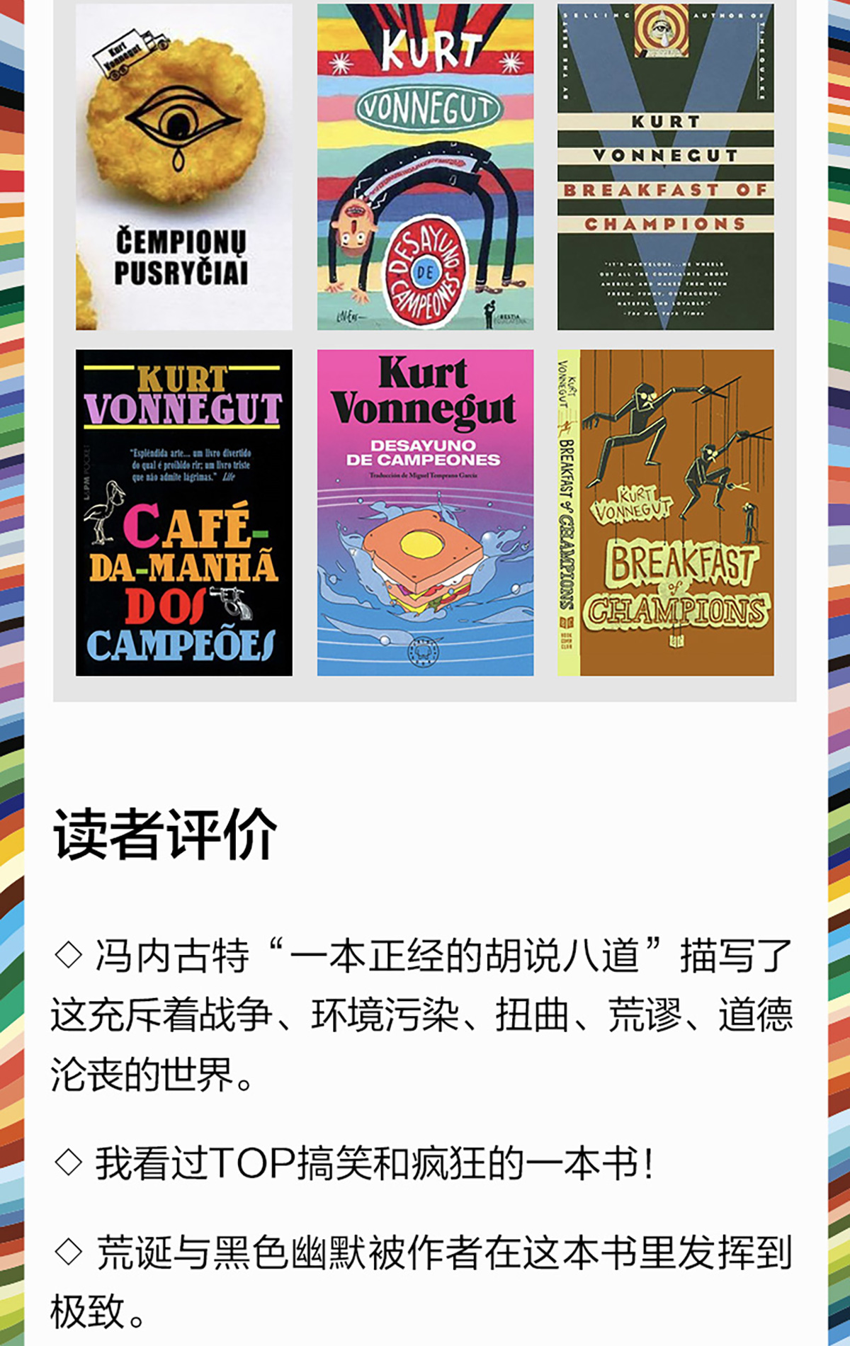 读客冠军早餐冯内古特作品 后现代主义杰作 美国大学生枕边书