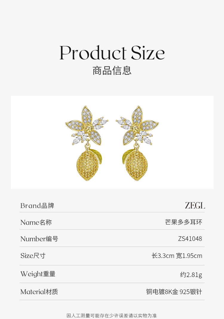 ZEGL设计师水果系列耳环女2023新款爆款耳钉小众设计925银针耳饰