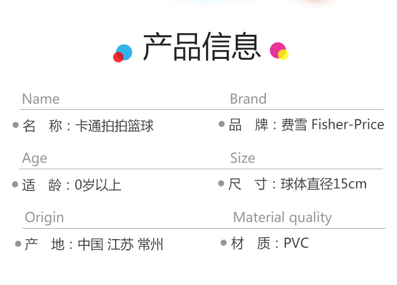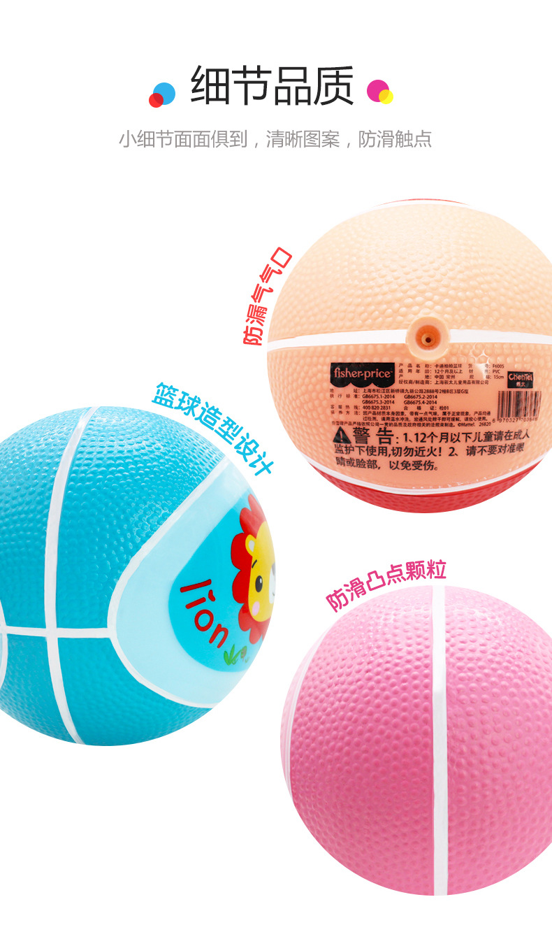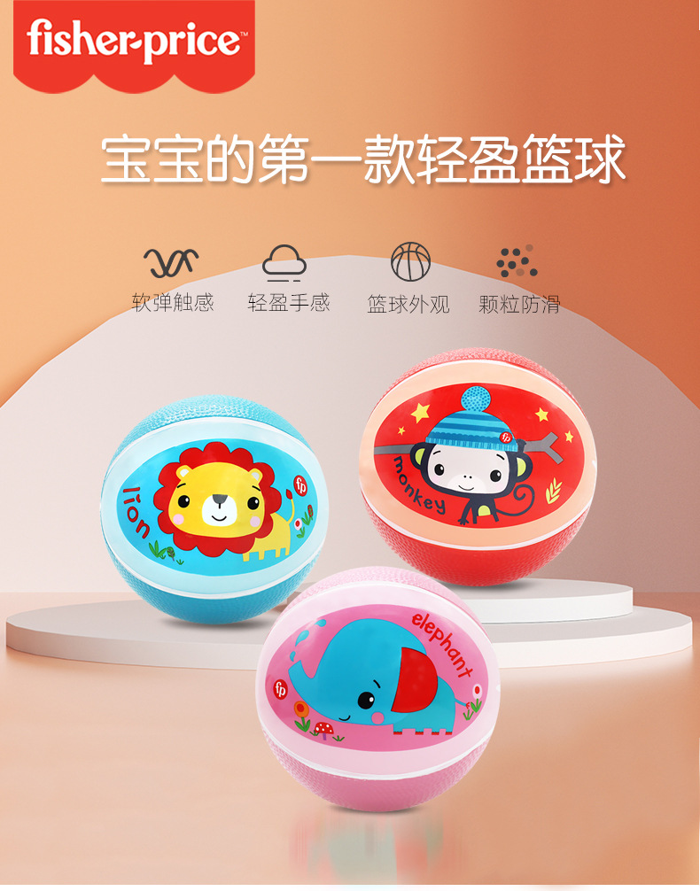 【宝宝的轻盈篮球 培养“奥运宝宝”】Fisher-Price费雪儿童小皮球篮球17cm/15cm/13cm 防滑/防水/防寒不易滑落 培养宝宝运动好习惯