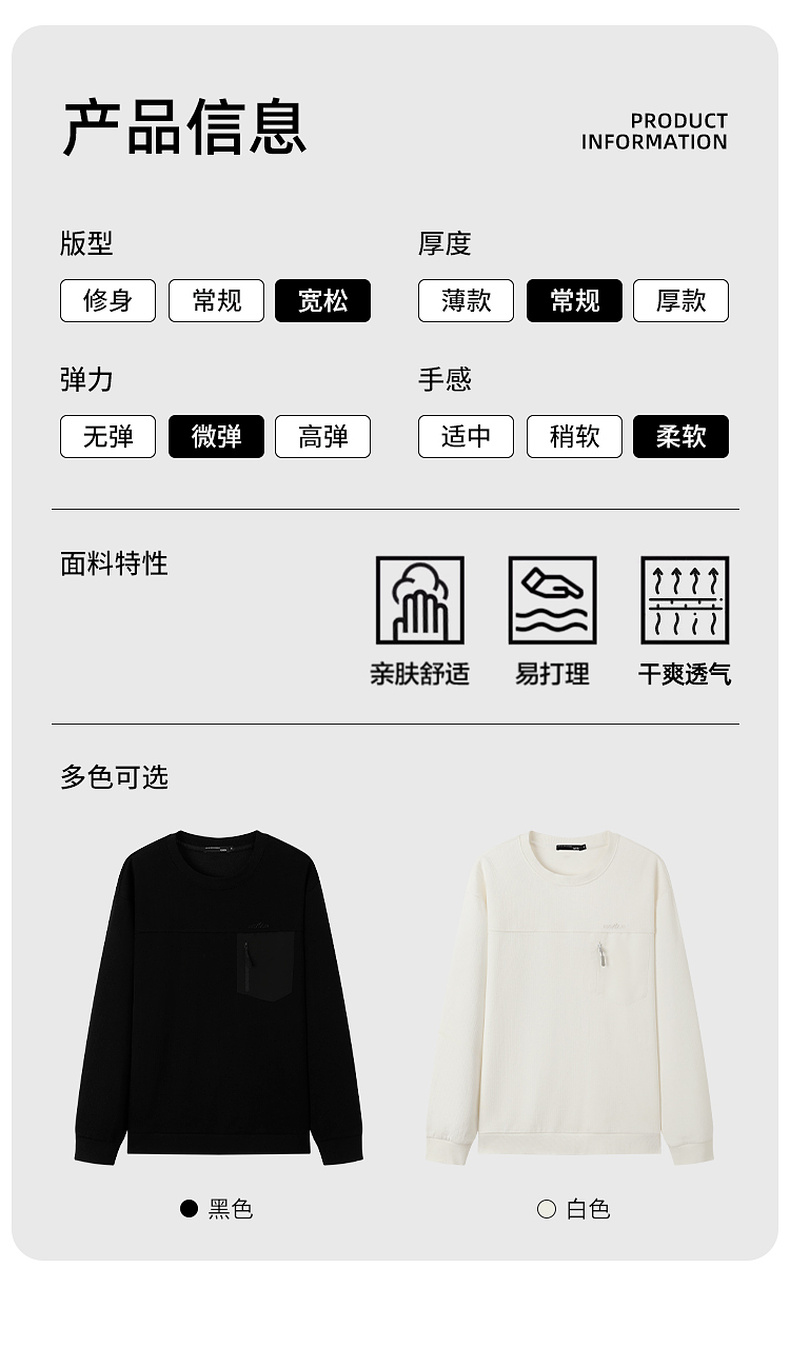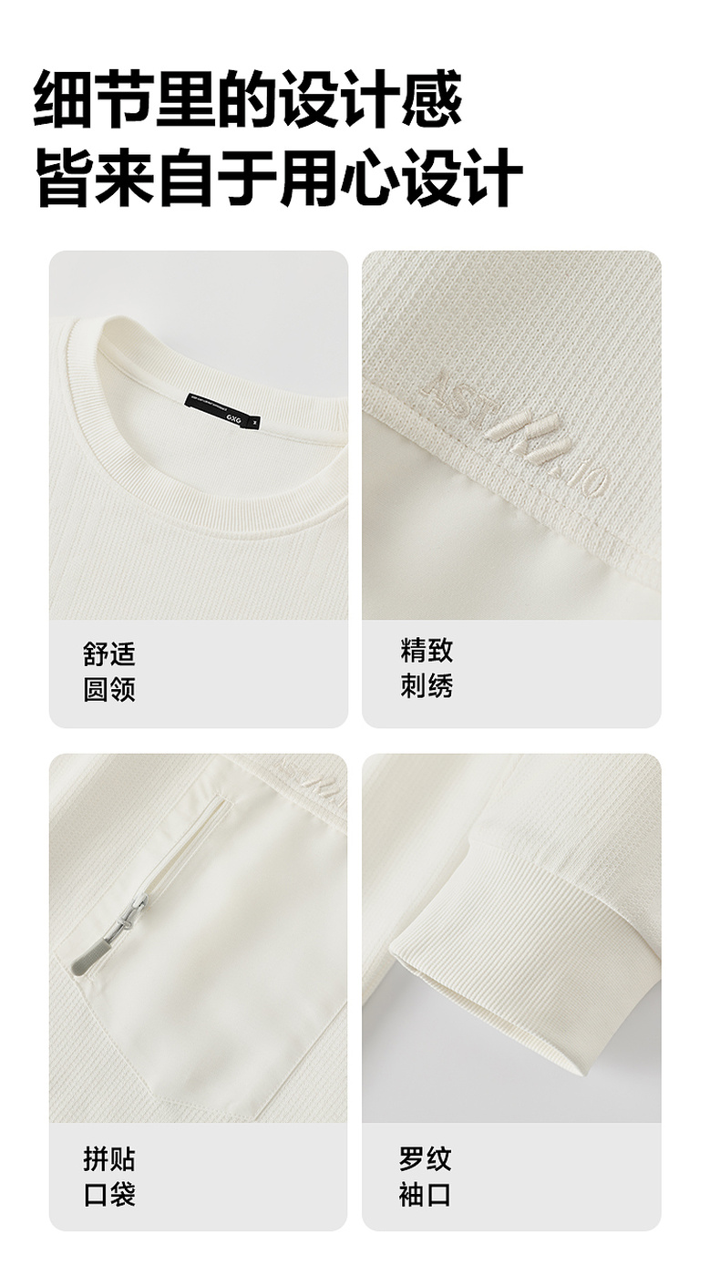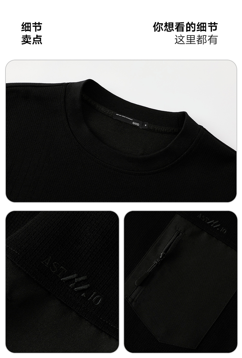 GXG男装【口袋拼接】25秋季简约百搭圆领宽松时尚休闲男式卫衣K&C