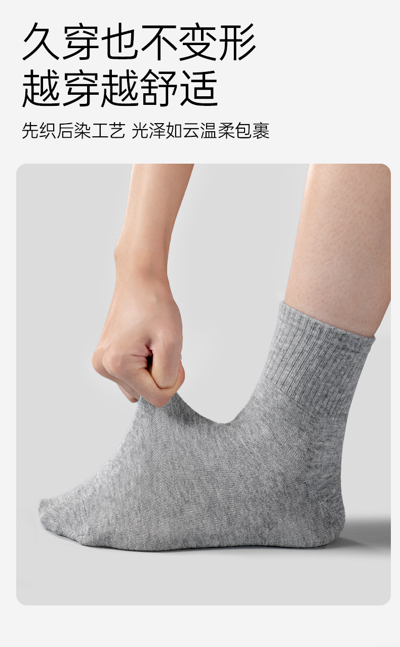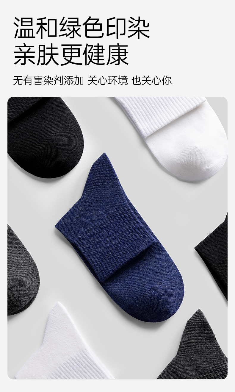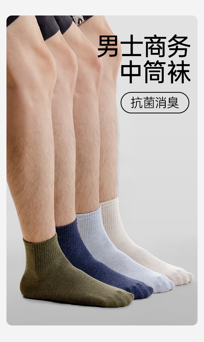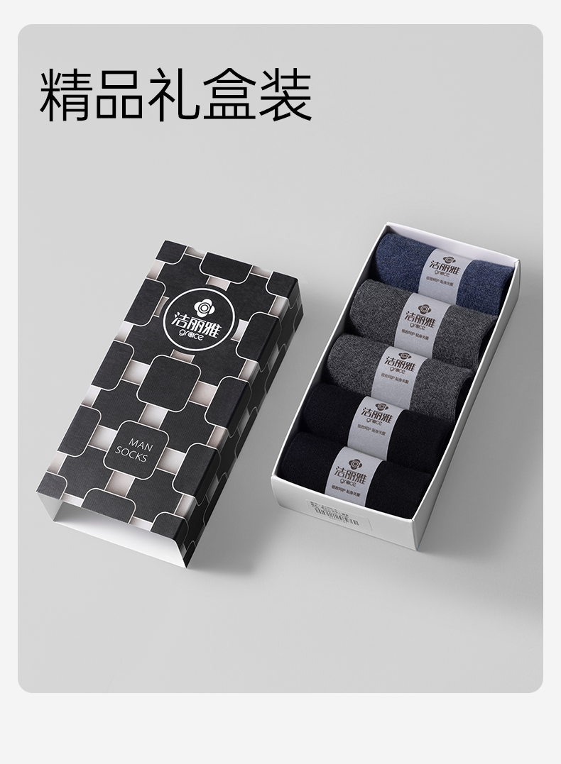 【5A抗菌】洁丽雅5双装男士纯棉商务中筒袜抗菌防臭舒适透气精梳棉袜