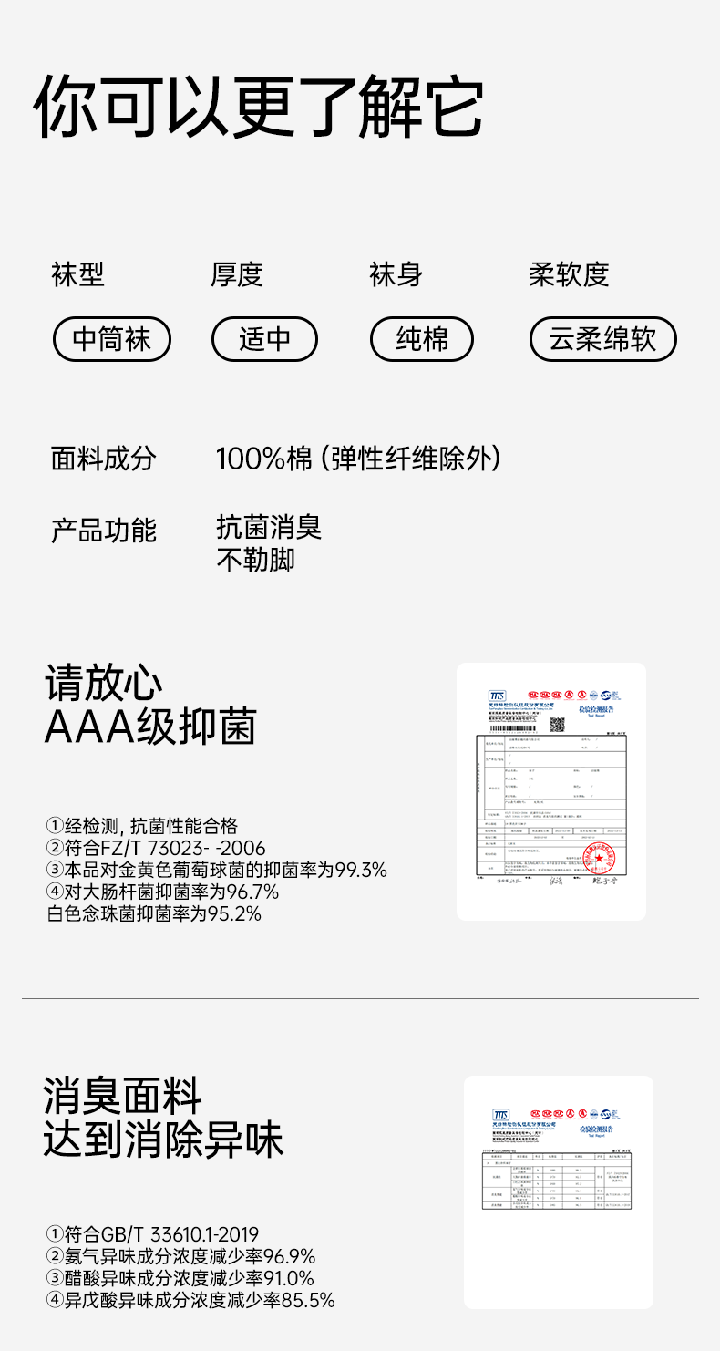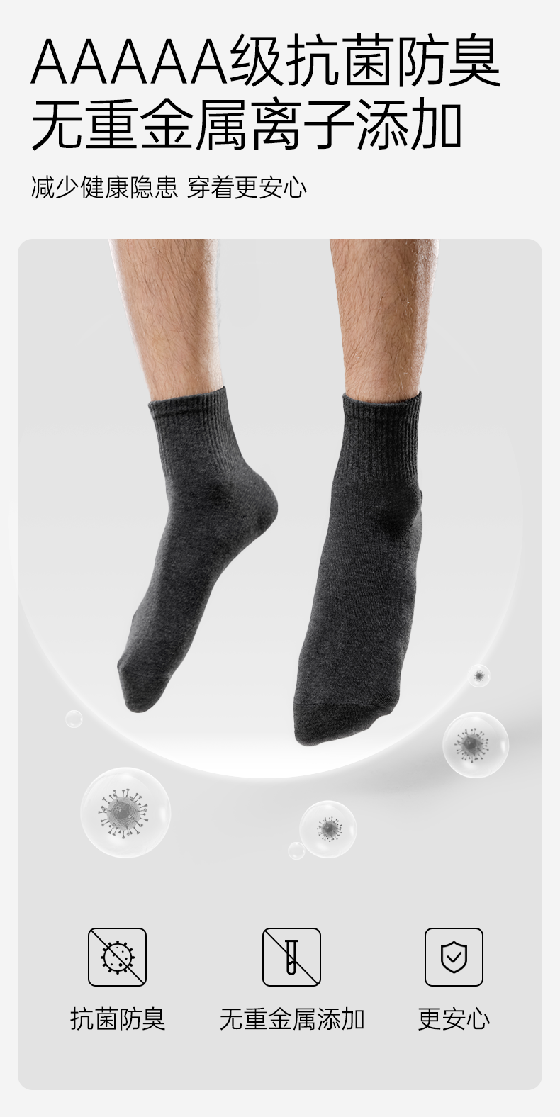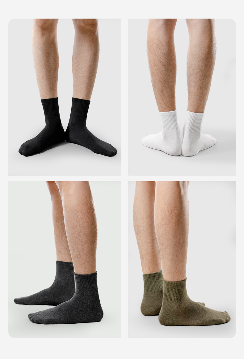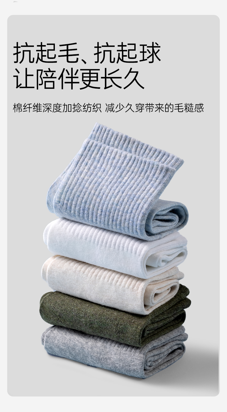 【5A抗菌】洁丽雅5双装男士纯棉商务中筒袜抗菌防臭舒适透气精梳棉袜