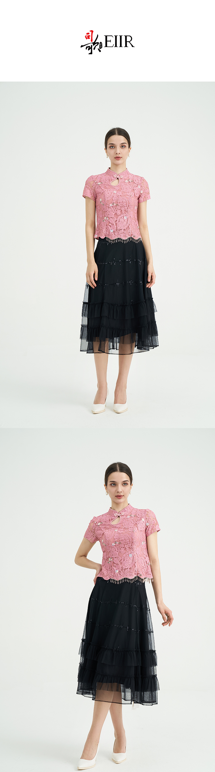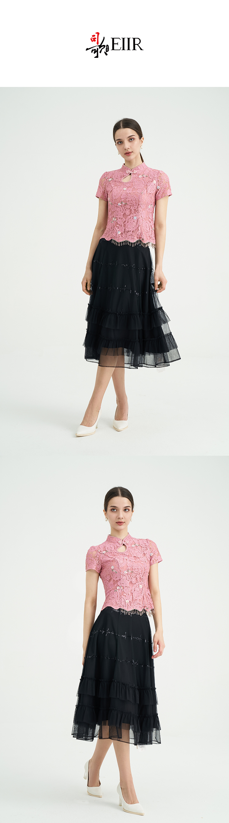 司歌旗袍领短袖蕾丝显瘦上衣刺绣国风T891152X