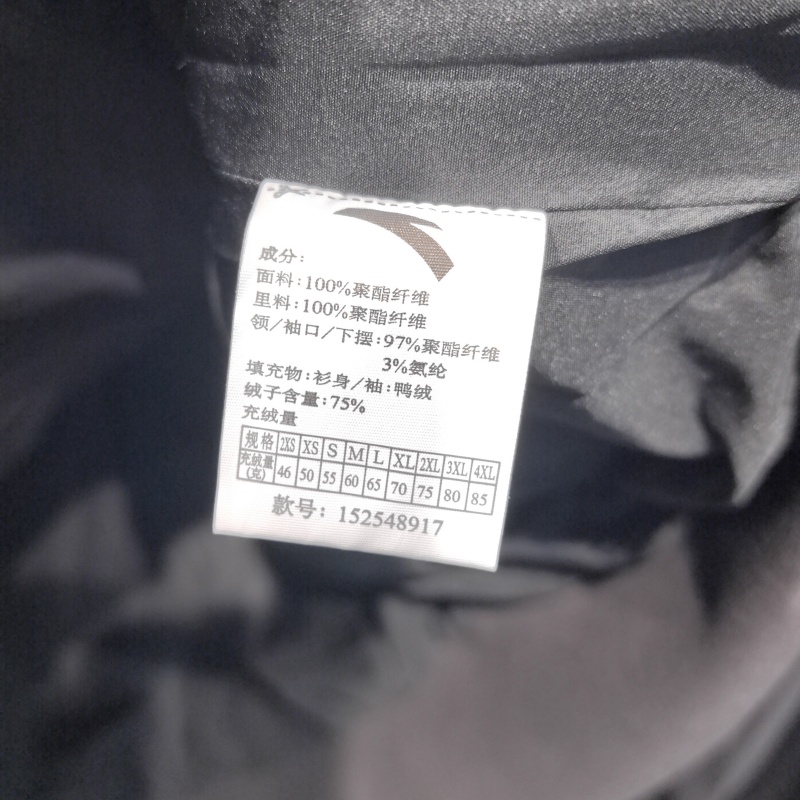 安踏男士短款防泼水棒球领鸭绒羽绒服152548917