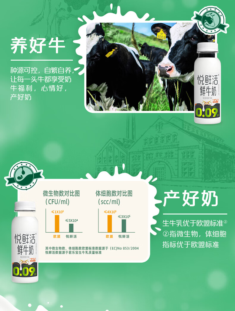 悦鲜活新鲜牛奶260ml*10瓶(普装)低温 君乐宝 生牛乳 配送早餐奶 蛋白牛奶 亲和好吸收
