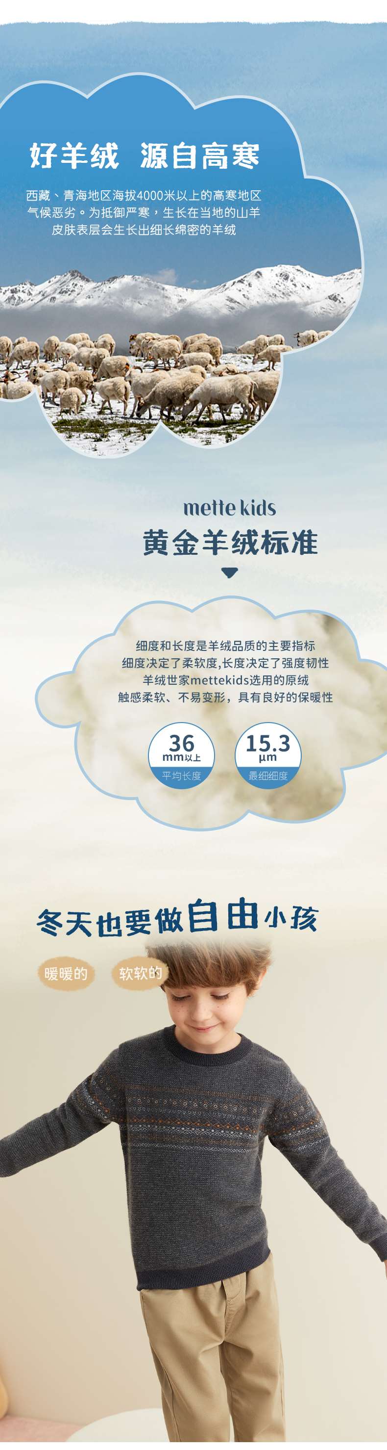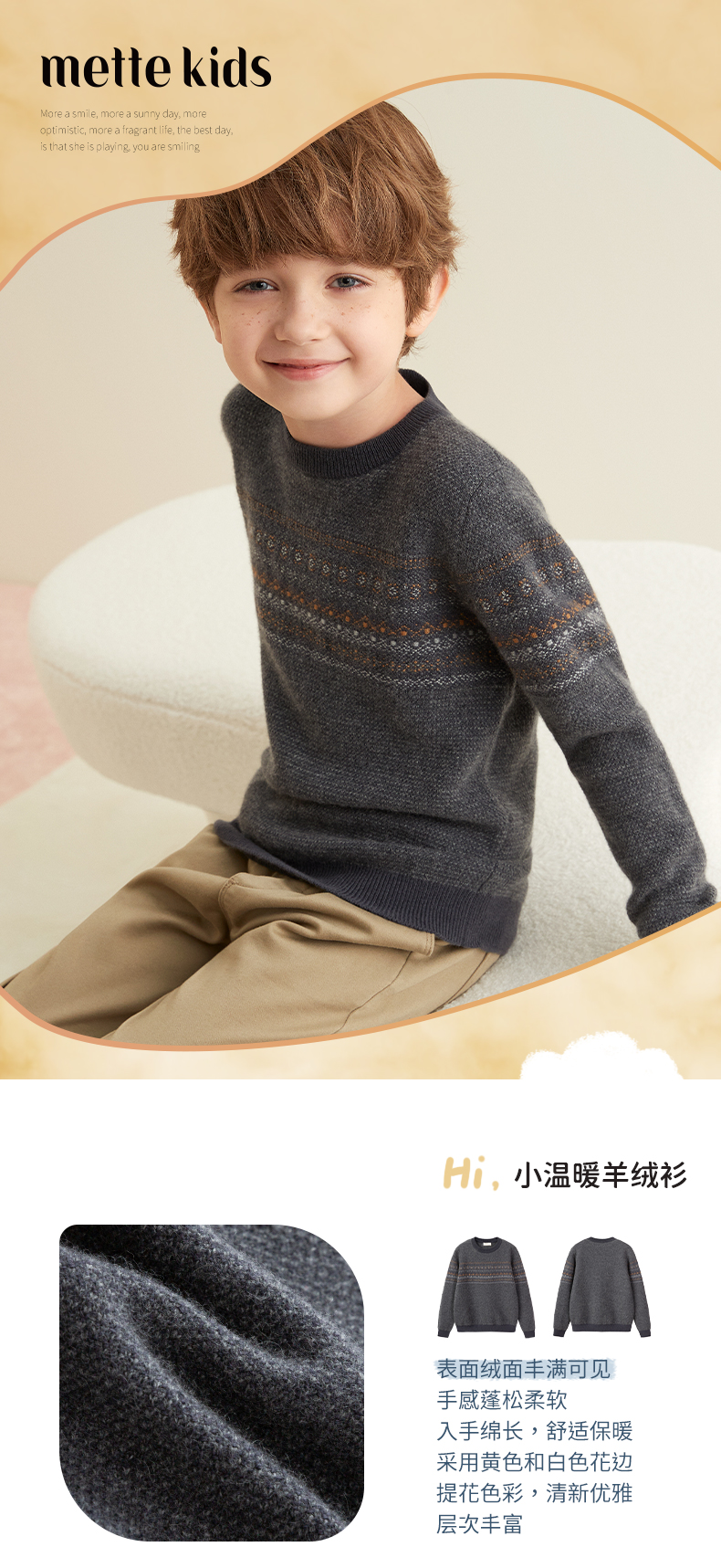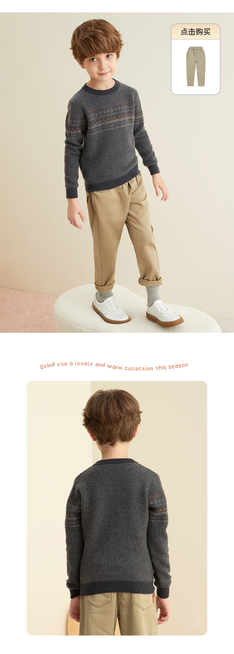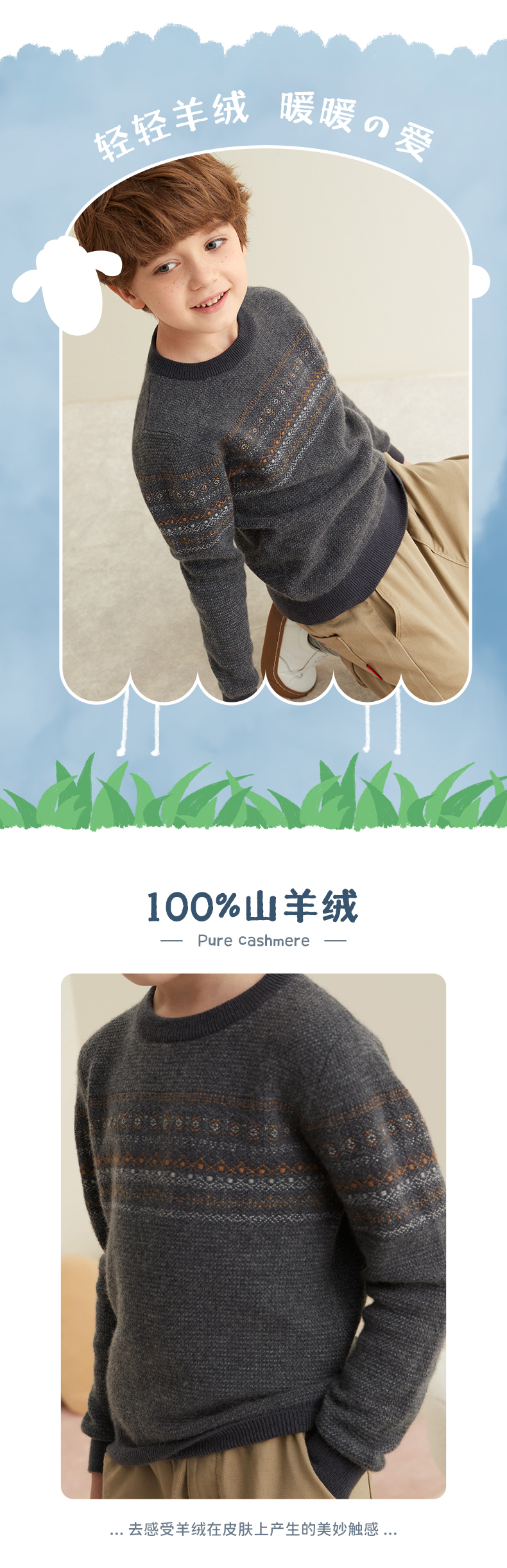 【童装提花羊绒衫】羊绒世家童装男宝100%山羊绒衫圆领套头保暖毛衣