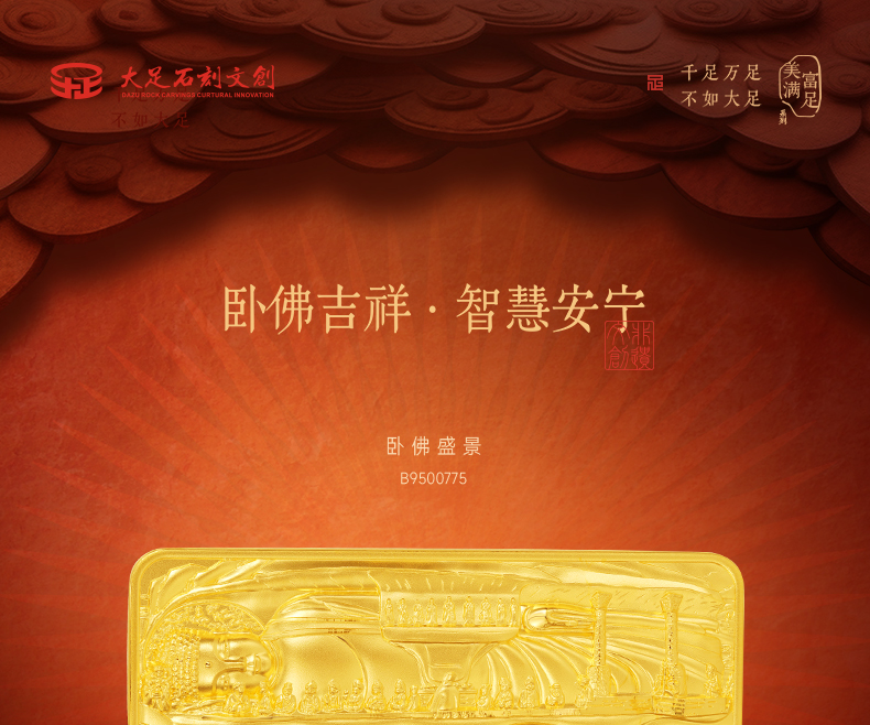 「大足石刻」黄金金条 足金卧佛盛景投资金条收藏送礼【Y】