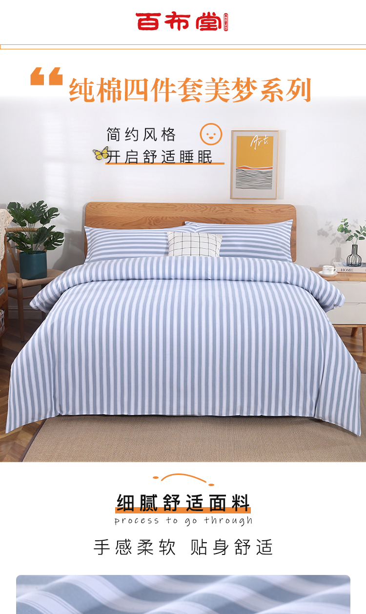 (乡村振兴商品)百布堂纯棉四件套美梦X3-灰条 商品图0