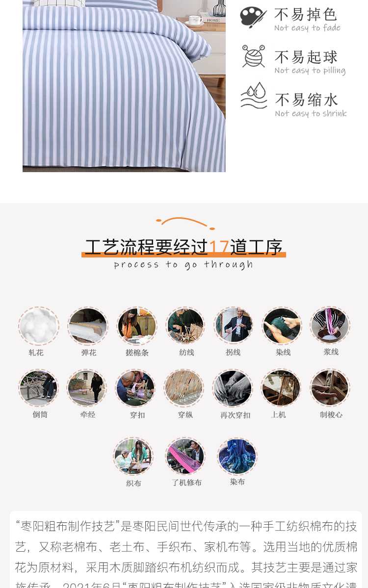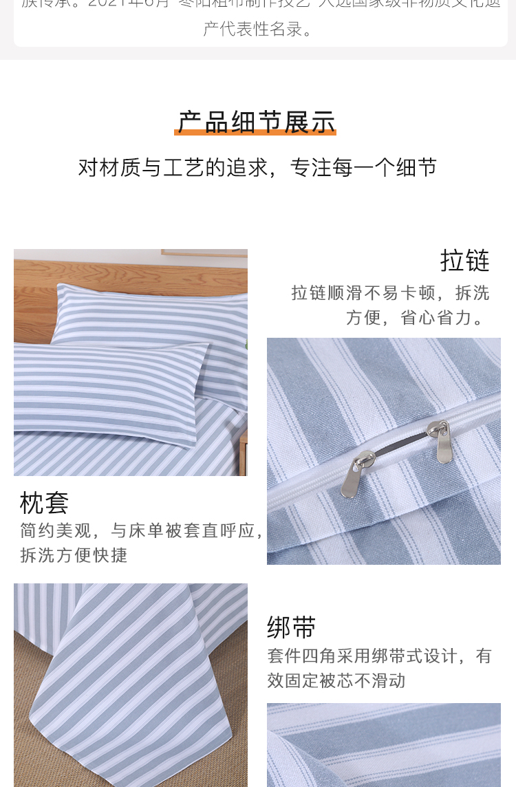 (乡村振兴商品)百布堂纯棉四件套美梦X3-灰条 商品图4