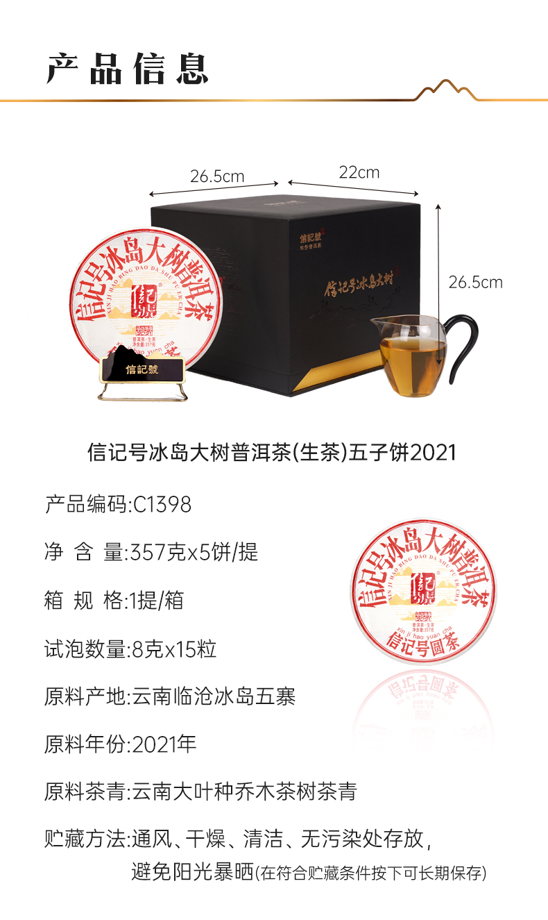 八马信记号|普洱生茶 信记号冰岛大树普洱茶(357克*5饼)C1398