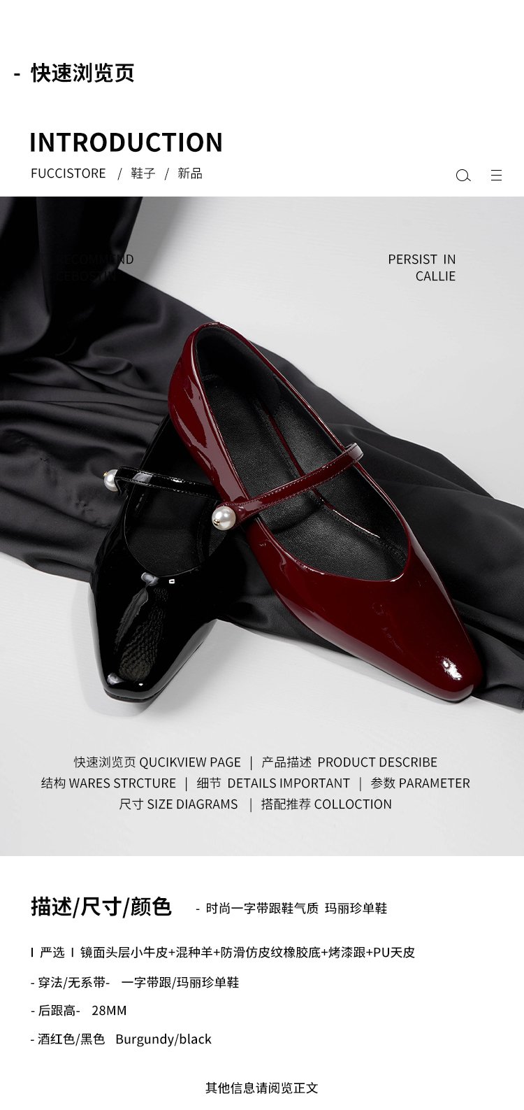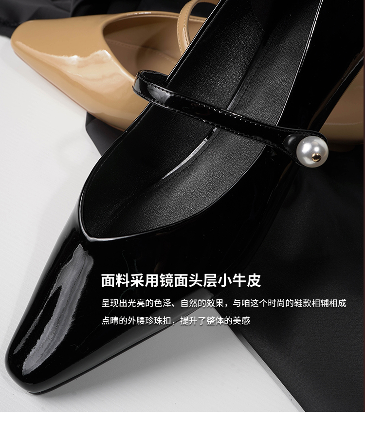 BESSIEIE时尚一字带跟鞋气质玛丽珍单鞋