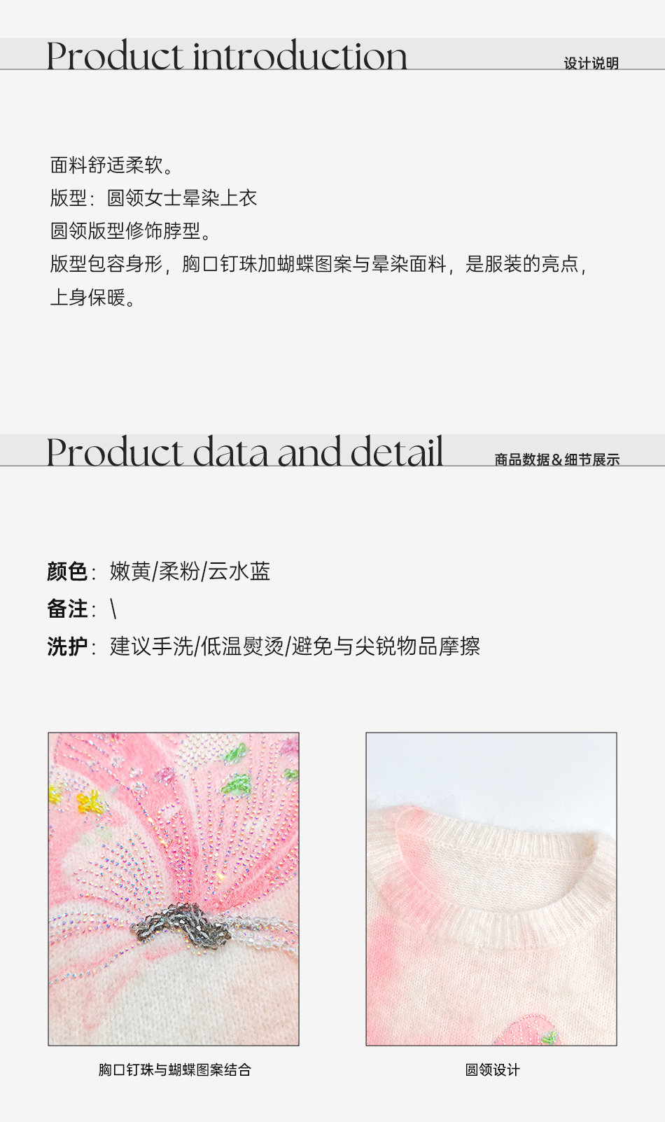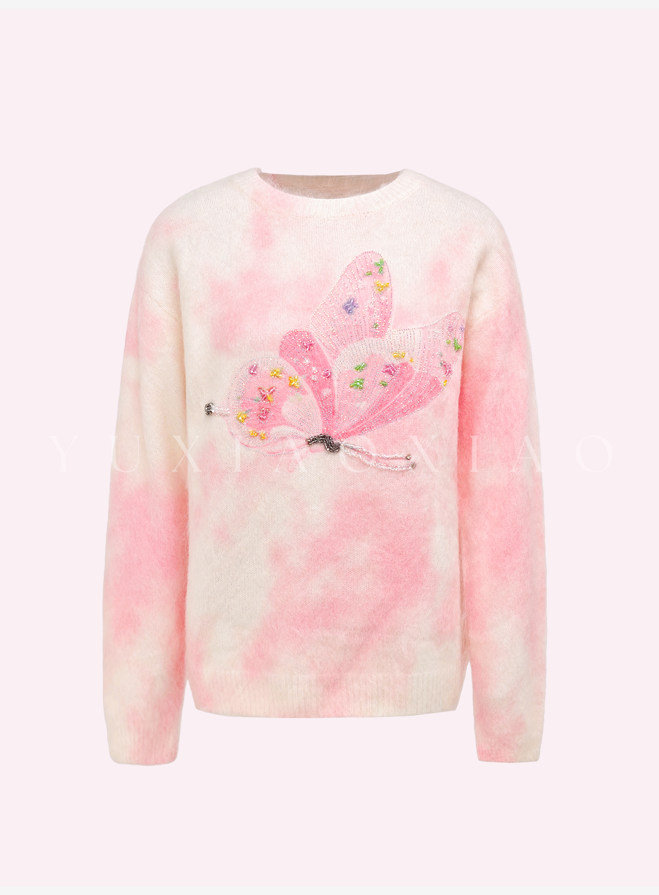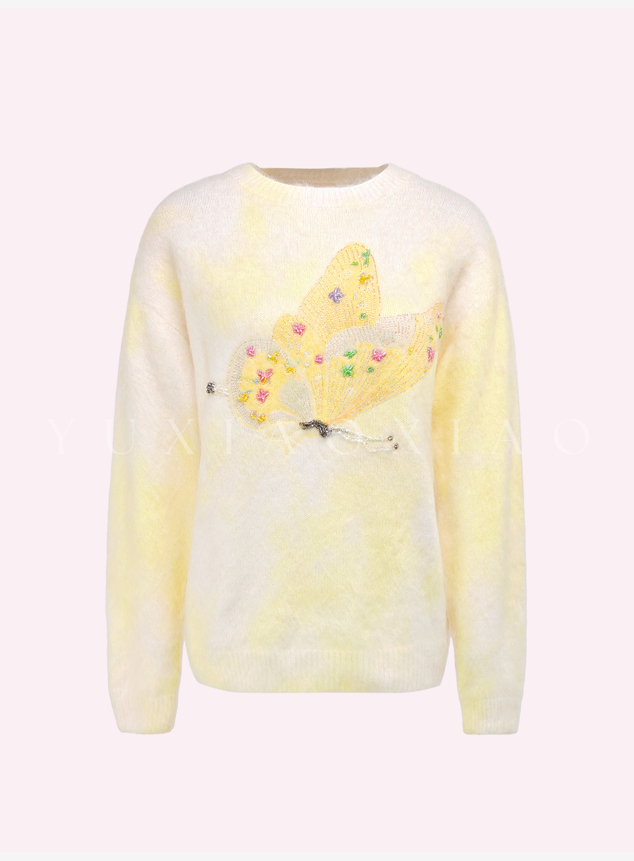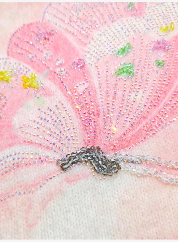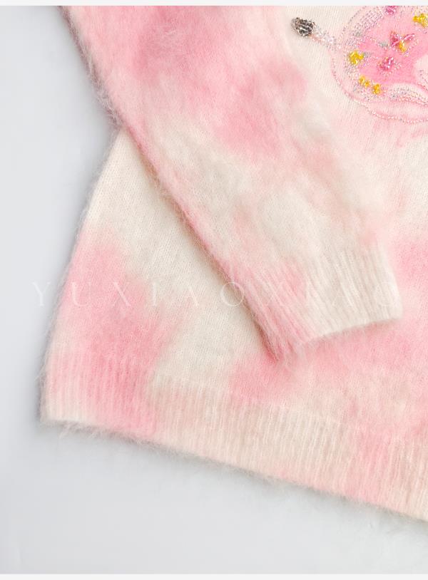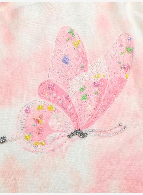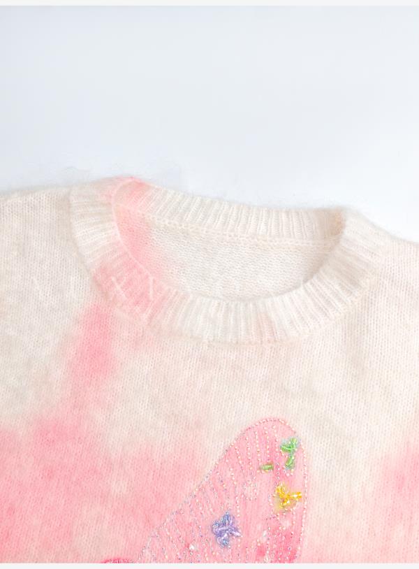 余潇潇【花间蝶语】绵羊毛马海毛混纺晕染蝴蝶烫钻圆领长袖毛衣