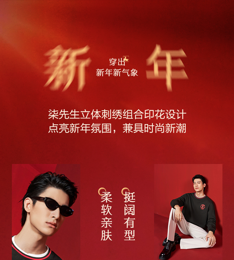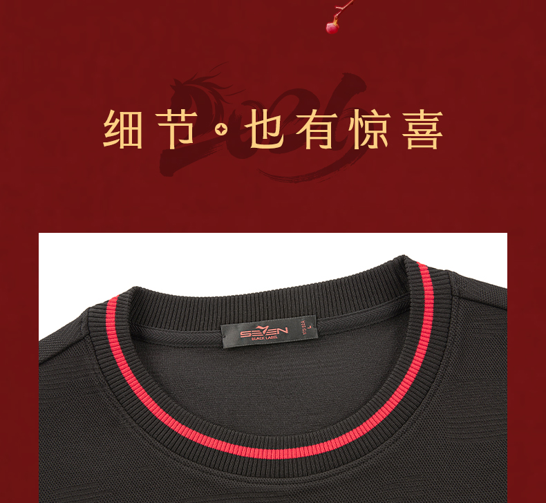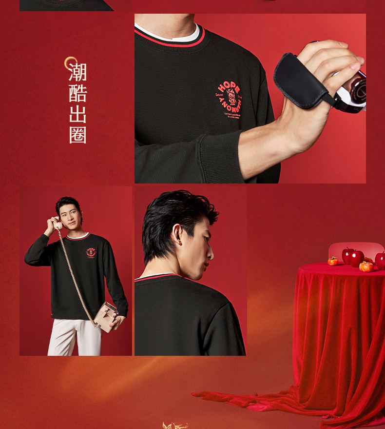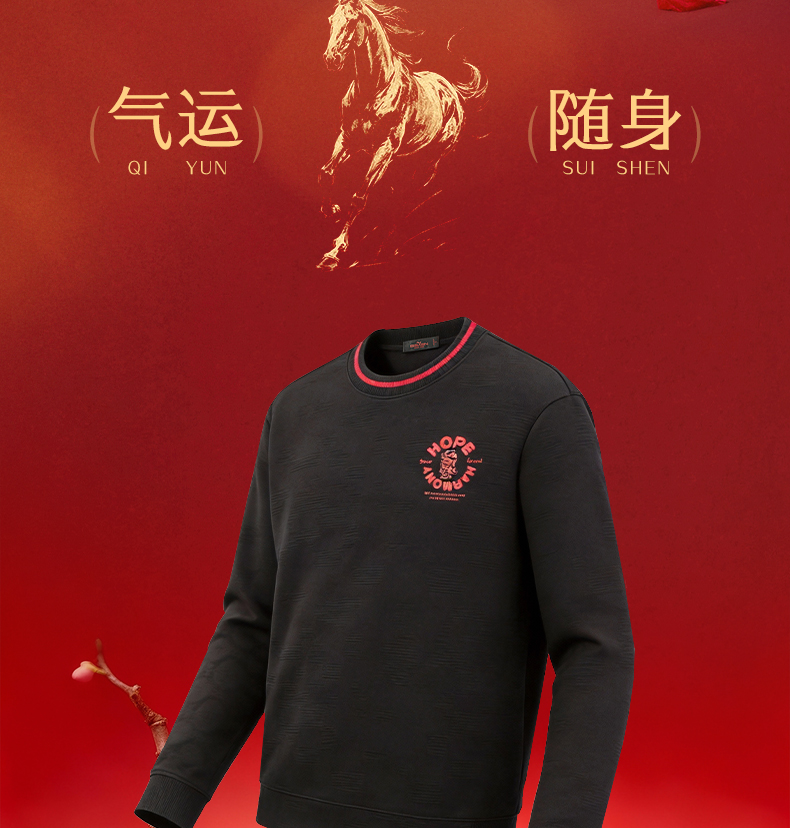【新年系列/空气层】柒牌长袖套头卫衣春季新款新年元素圆领上衣130W70010