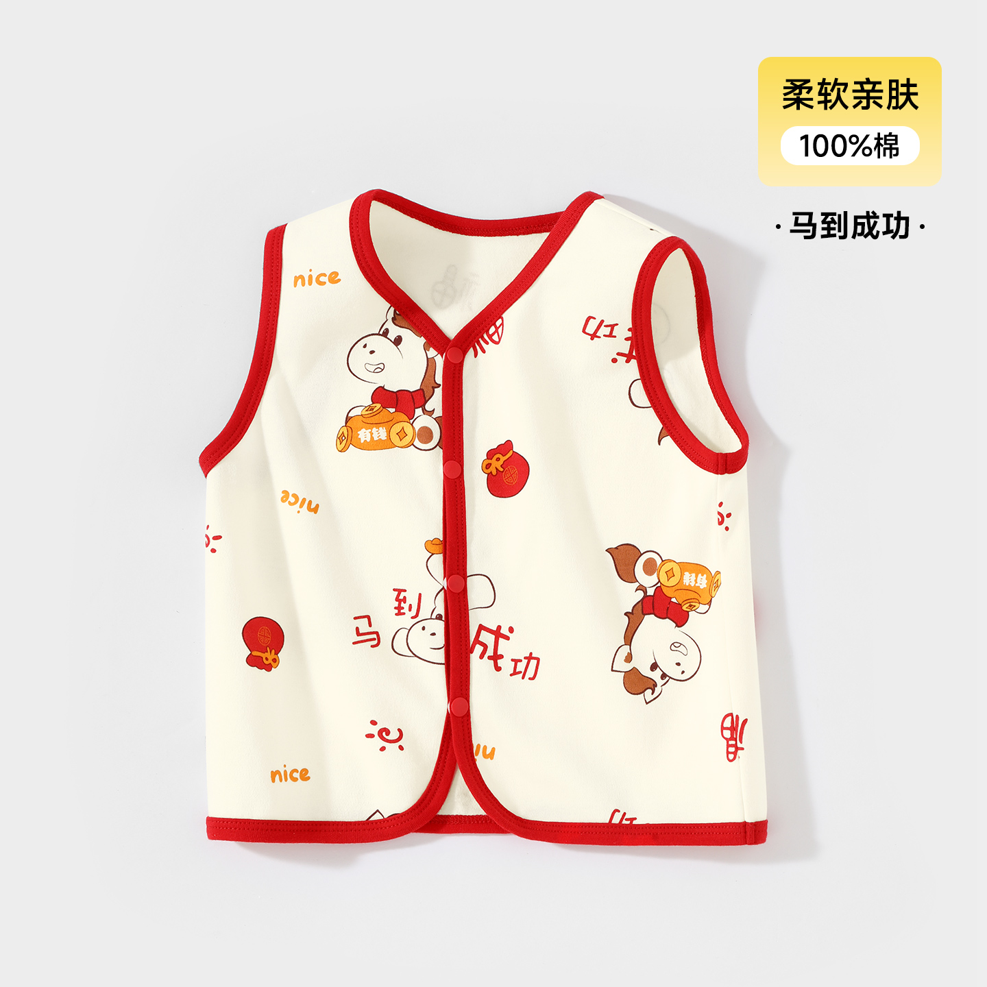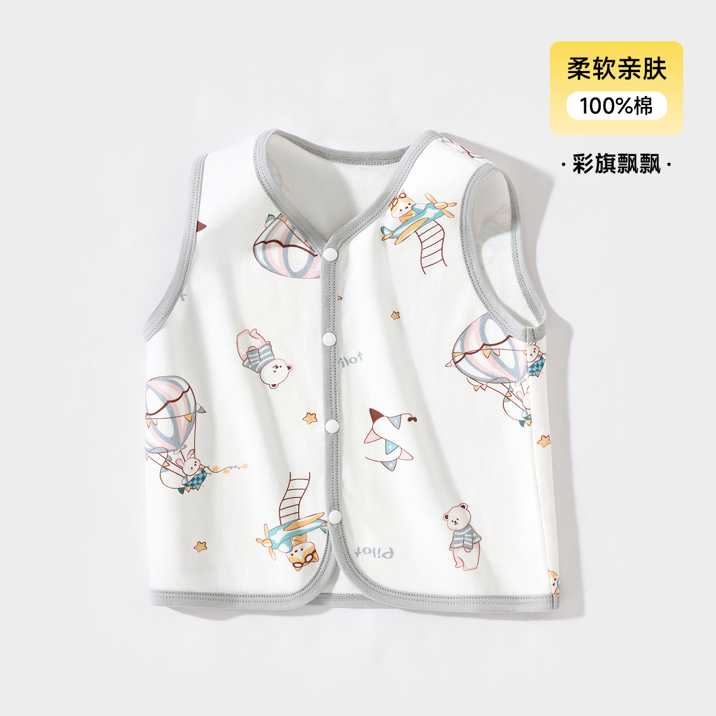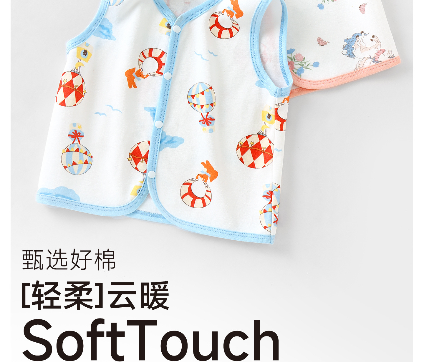 小班郎婴儿马甲新生纯棉A类幼儿坎肩男女宝宝柔软亲肤卡通图案73-110