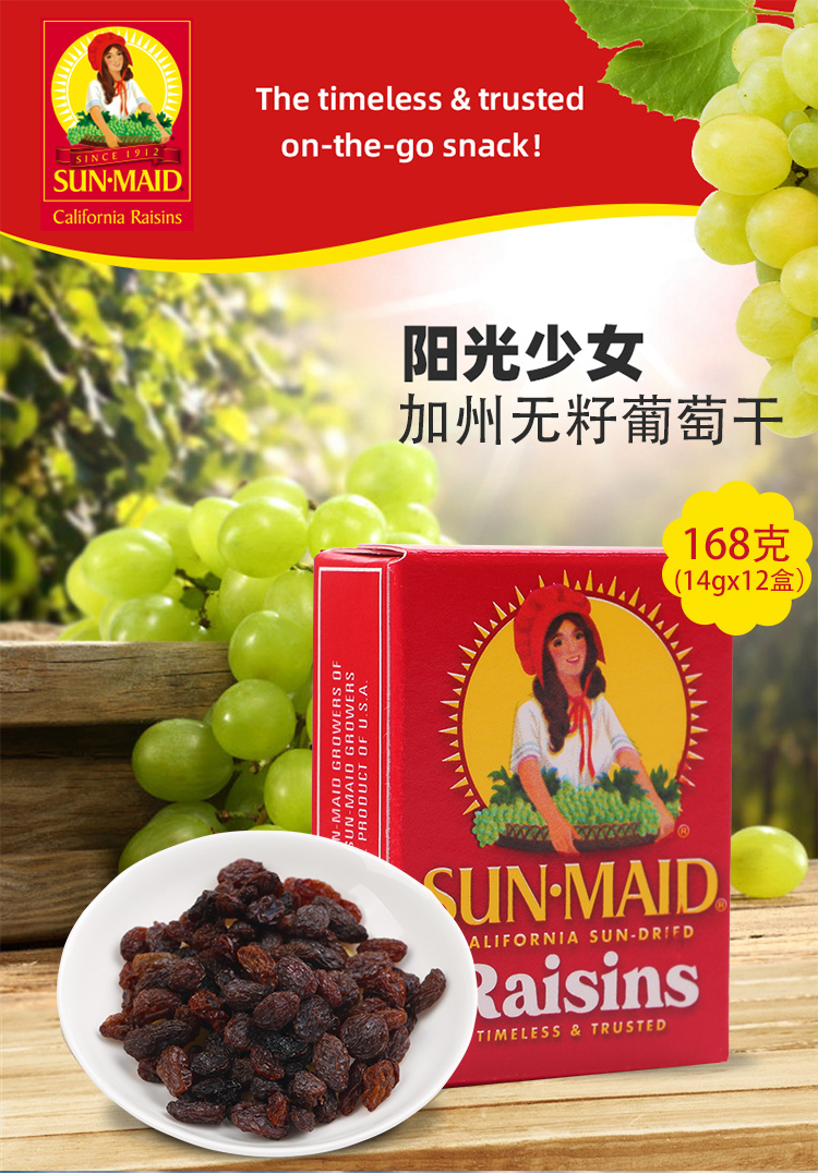美国阳光少女无籽葡萄干168g/060805 颗粒饱满软软糯糯营养多多