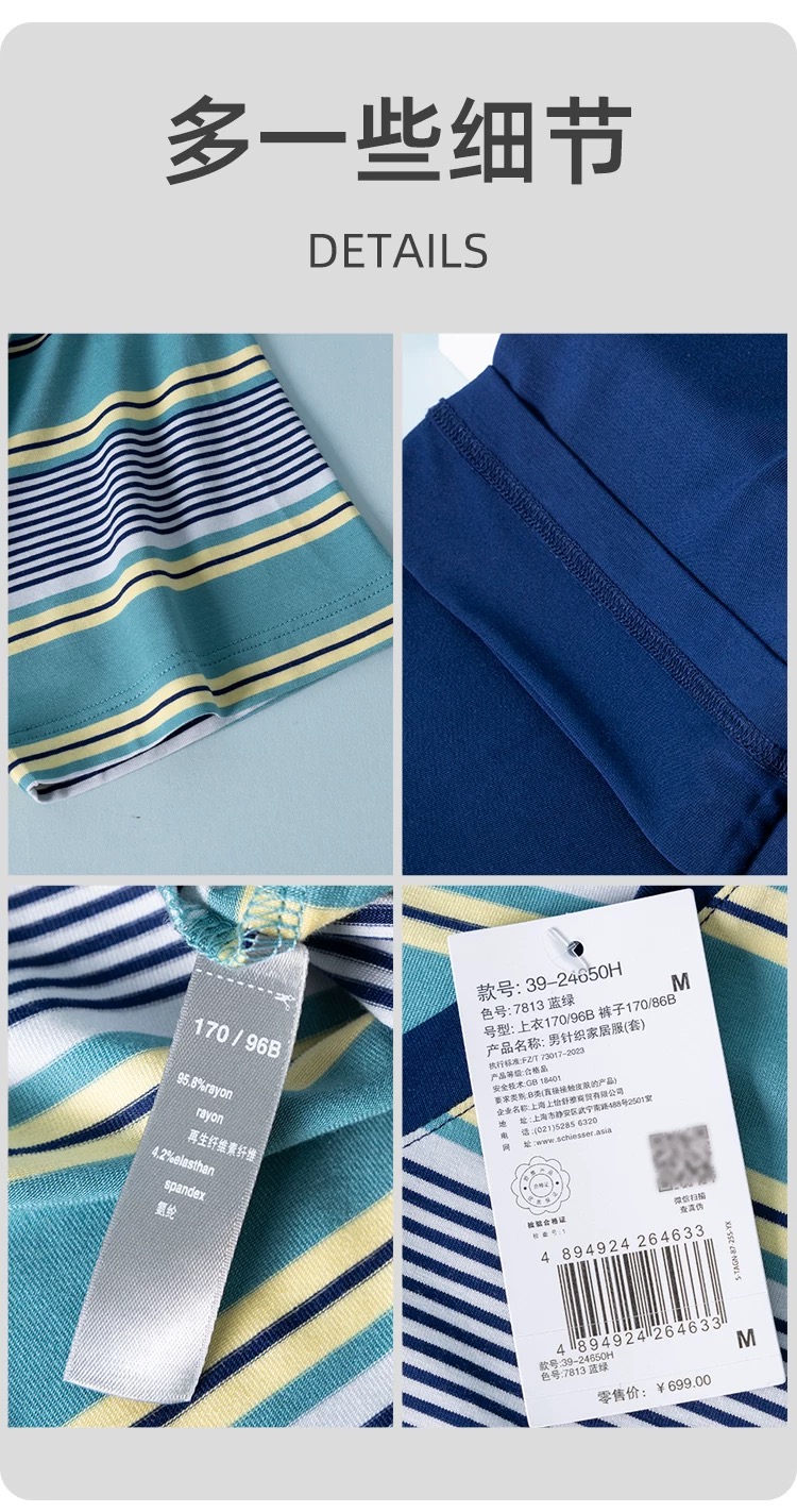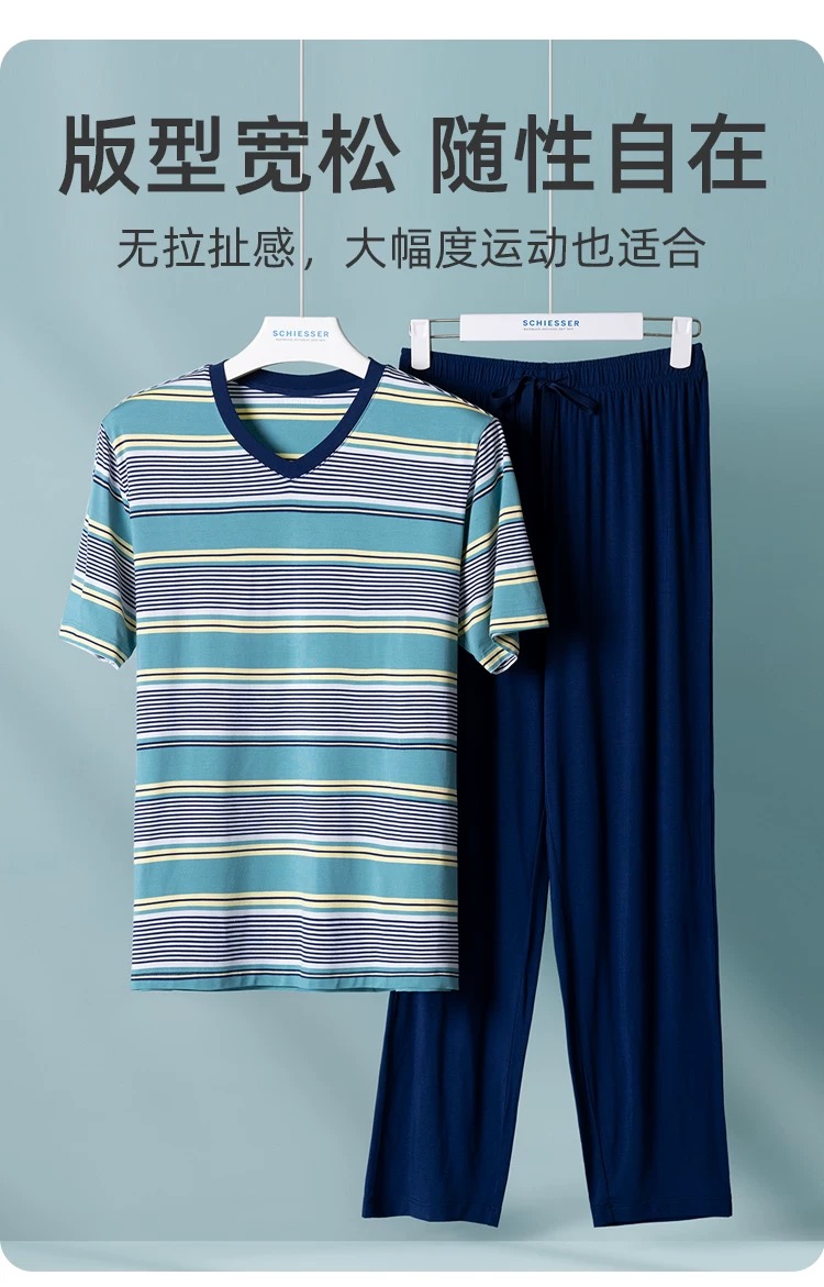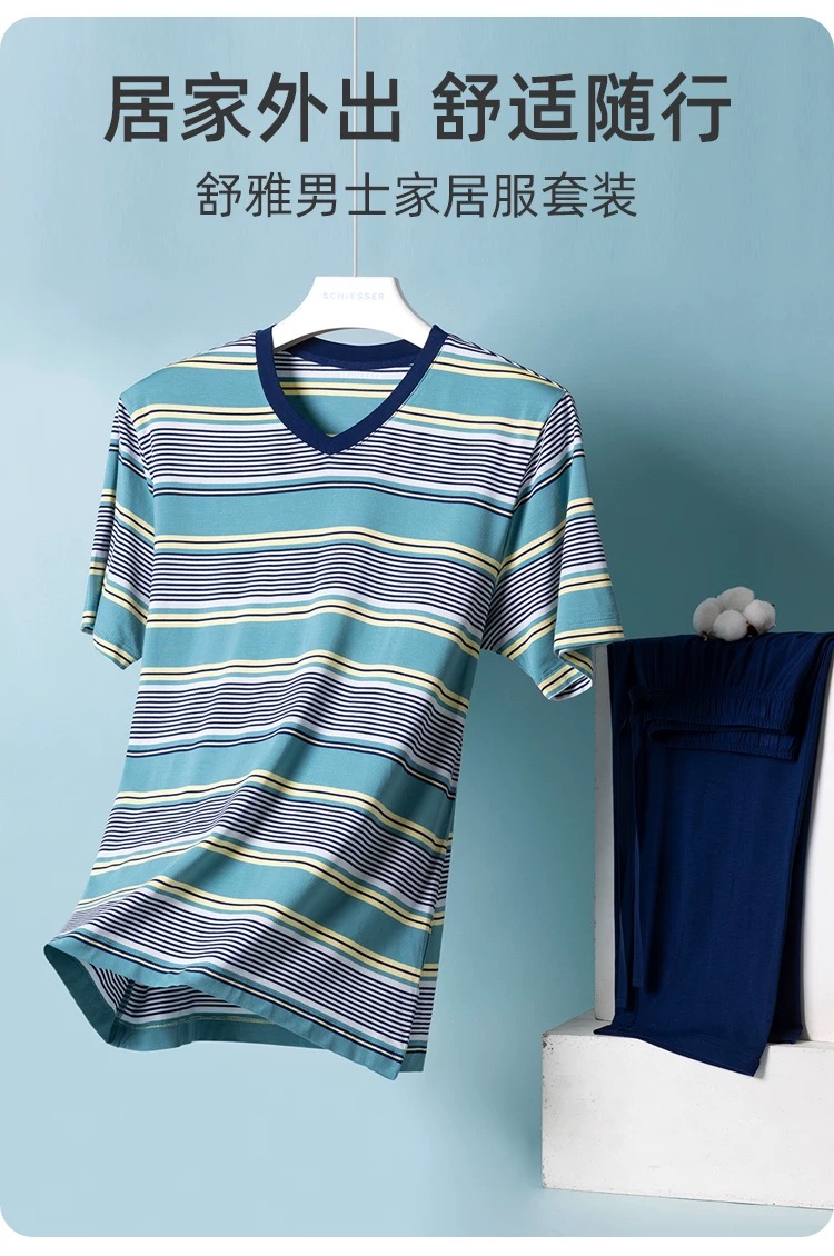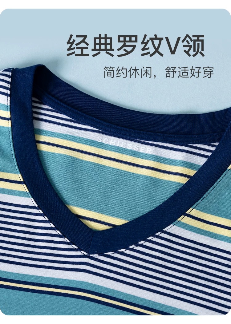 【经典莫代尔条纹】SCHIESSSER德国舒雅男士莫代尔经典条纹时尚家居套装35/24650H