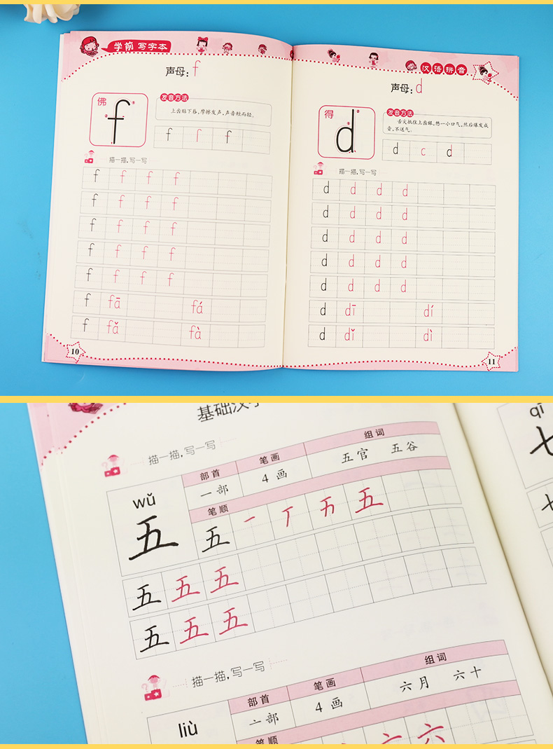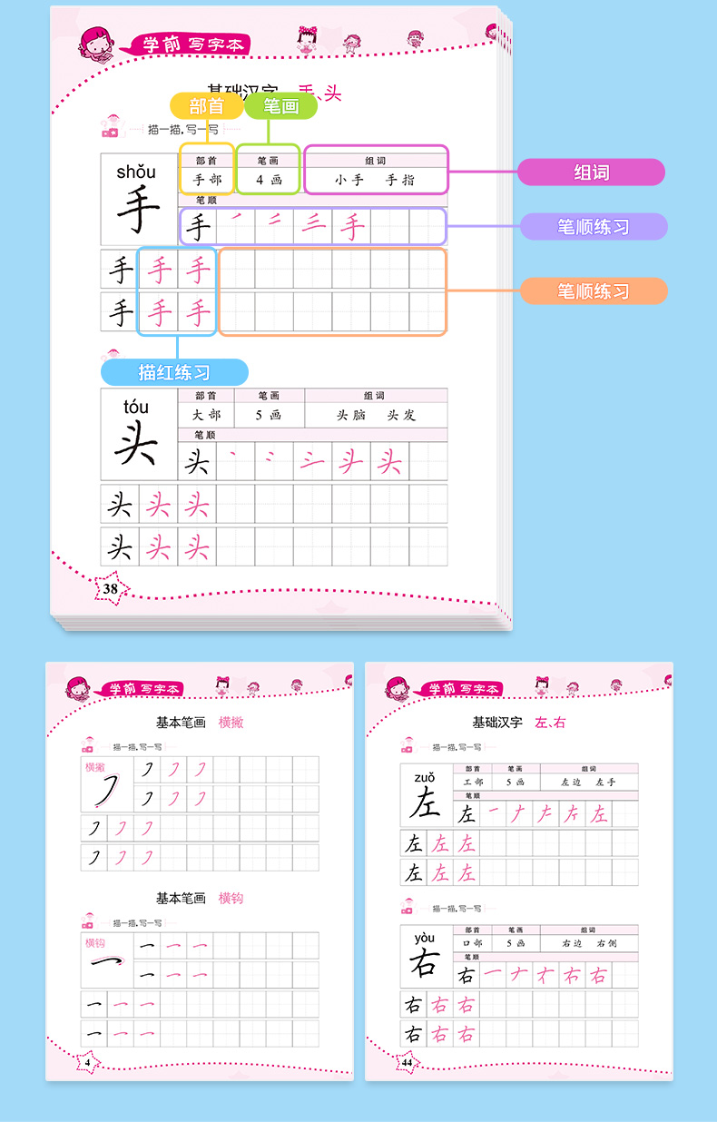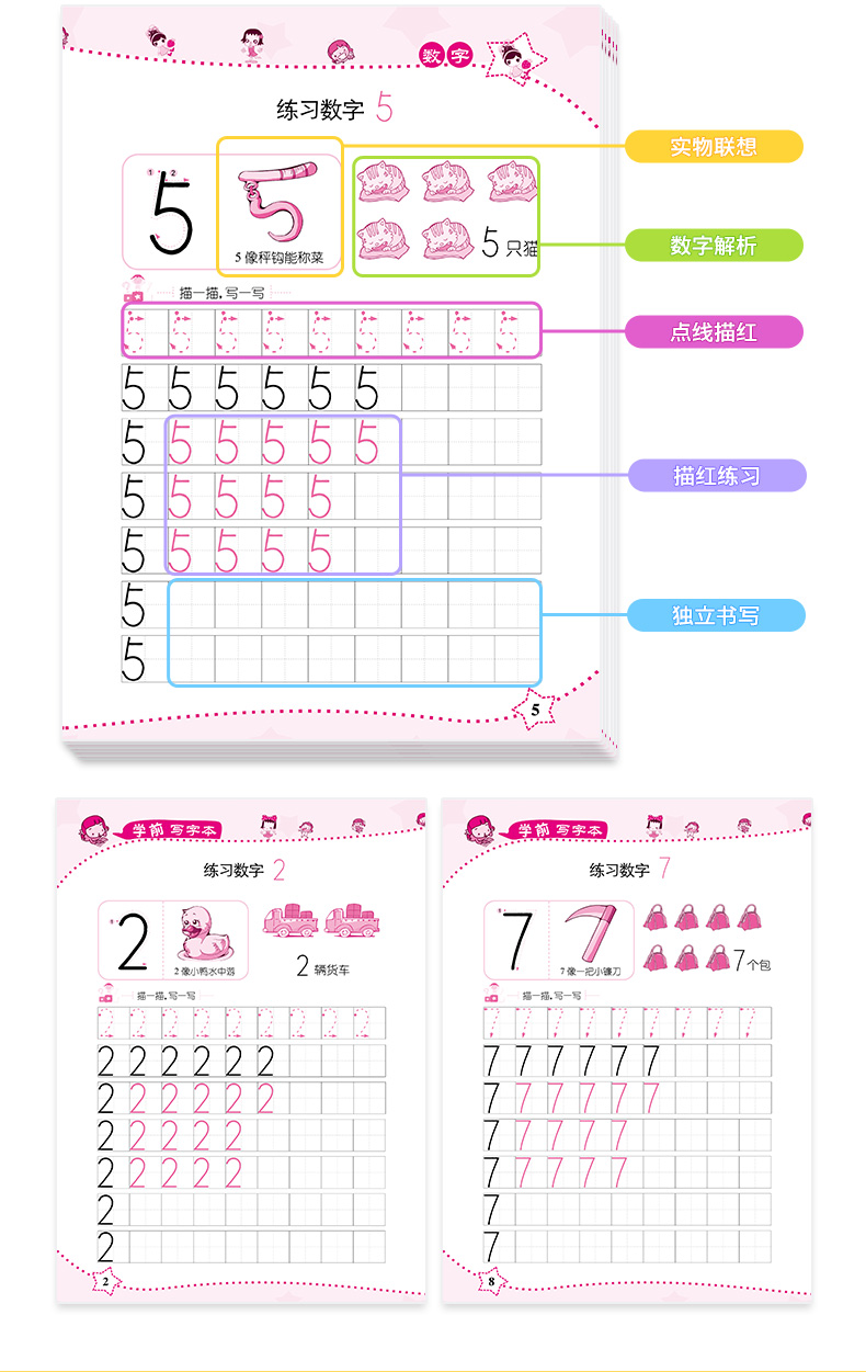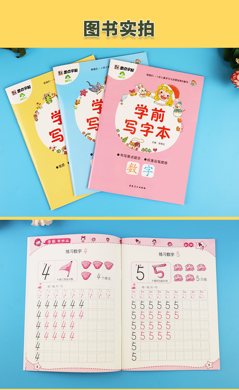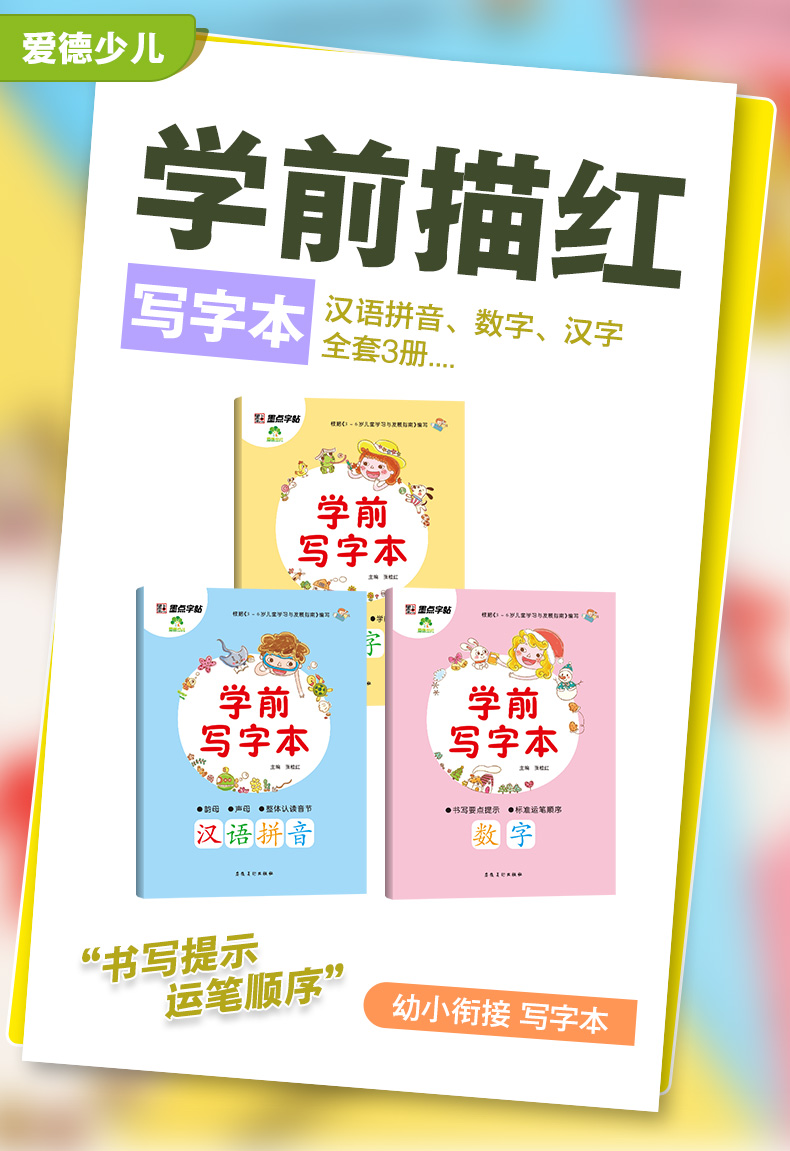 学前写字本3册套装汉字描红本全套幼儿园大班初学者笔画笔顺练字帖铅笔学前常用字练习册儿童练字帖数字写字帖3-6岁初学者练字本