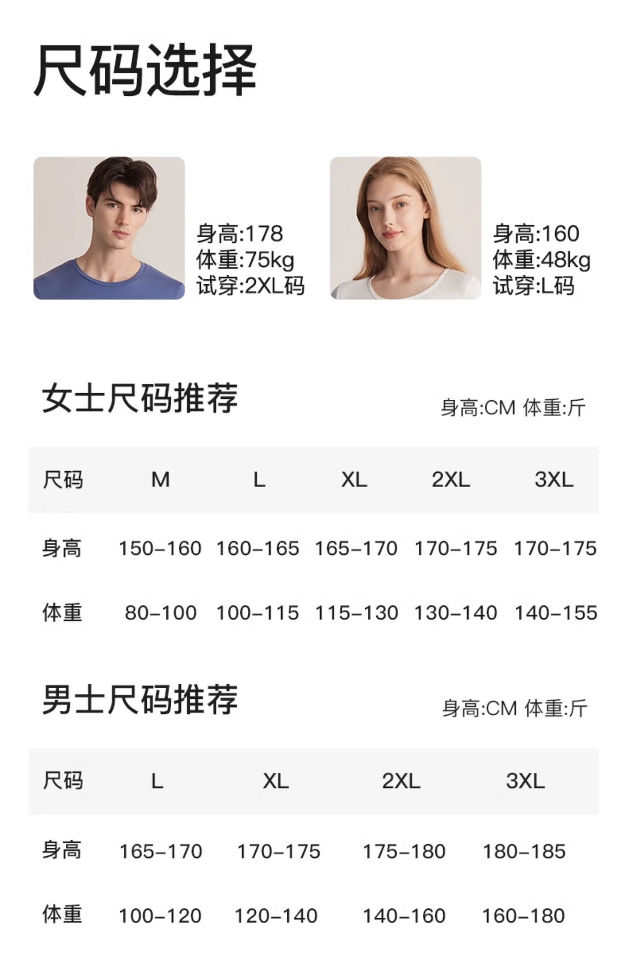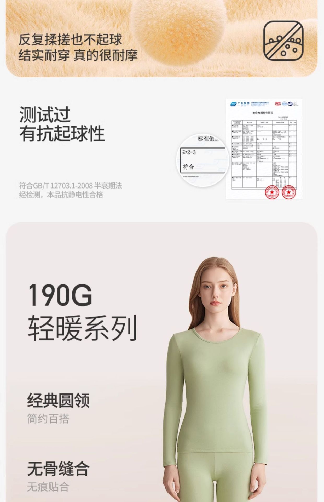 【拍2套118元起】【5A抗菌新疆长绒棉】190G情侣纯棉保暖内衣 秋冬圆领轻暖秋衣秋裤套装