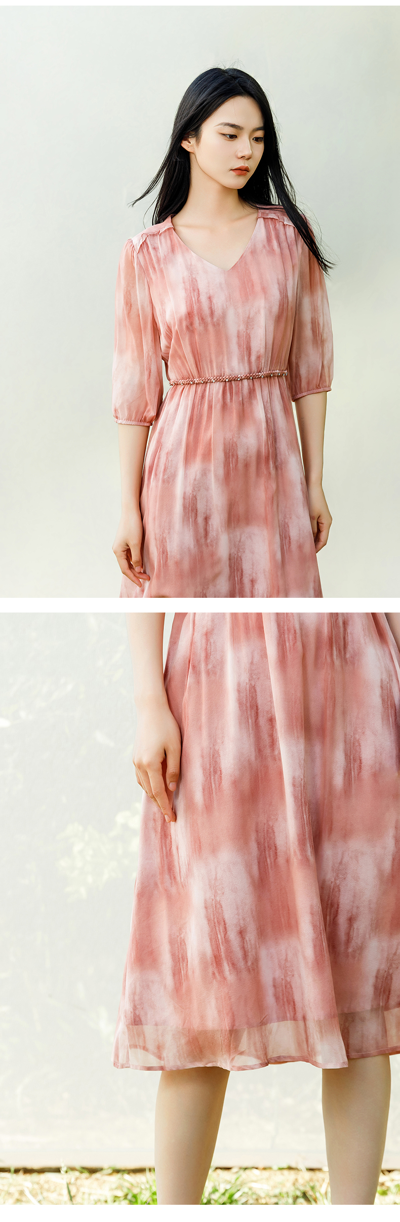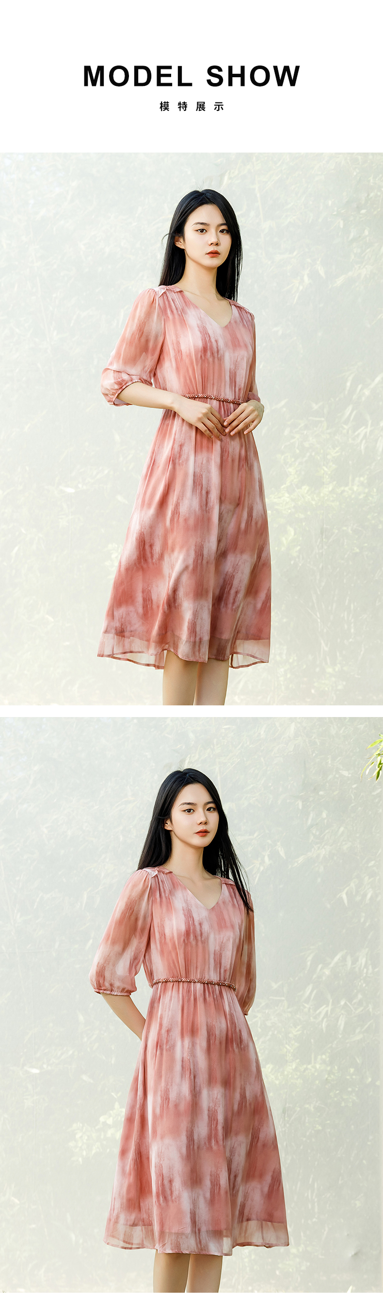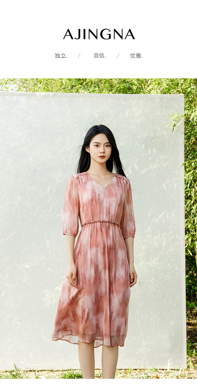 【商场同款】阿菁娜2024夏季新款时尚印花收腰连衣裙A30X212070