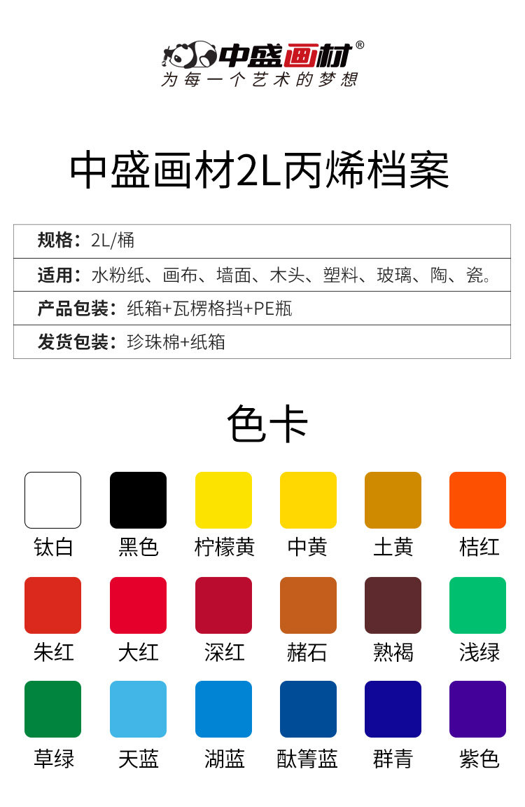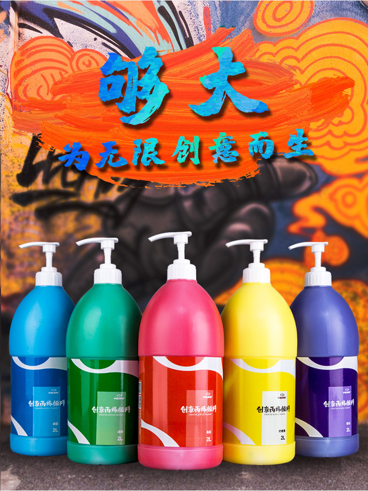 中盛画材2L大桶装丙烯颜料墙绘手绘防水室内外墙壁画涂鸦流体颜料