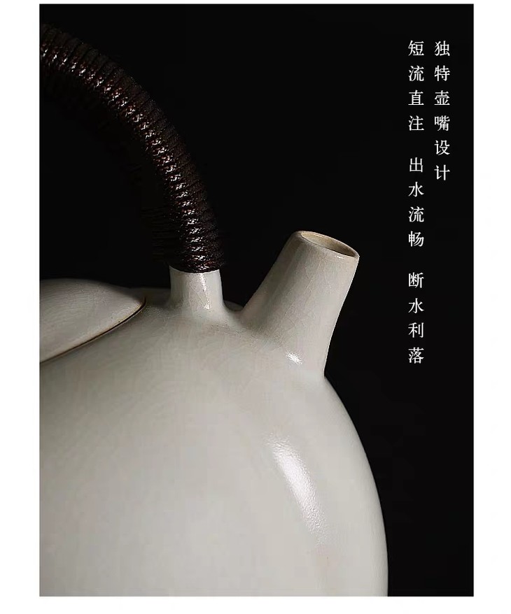 壶盖密合度好,盖钮精美,提梁呢绳手编。蒸汽孔位置安全,使用中不会被蒸汽灼烧。独特的流嘴设计,短流直出,出水流畅,断水利落。