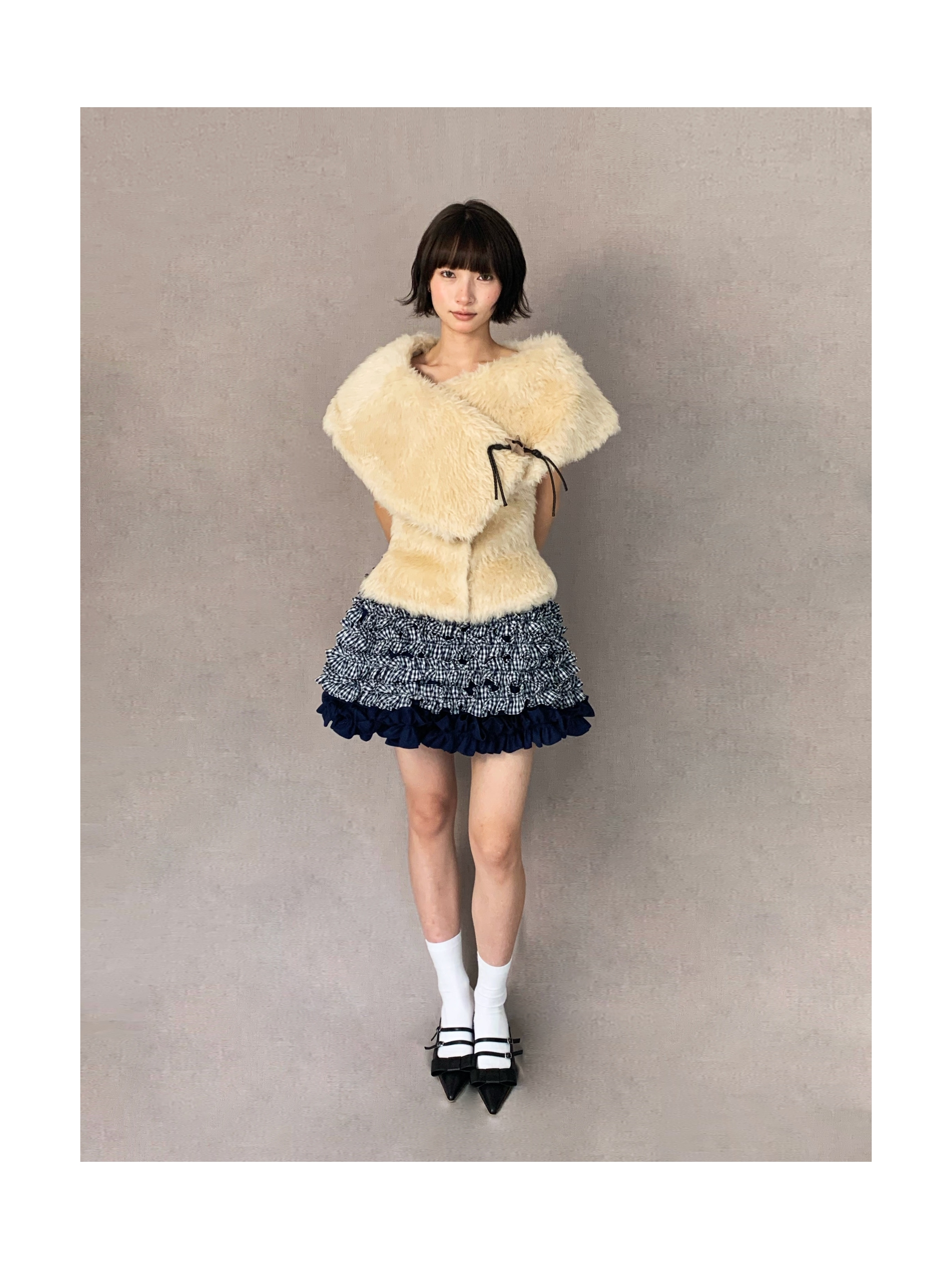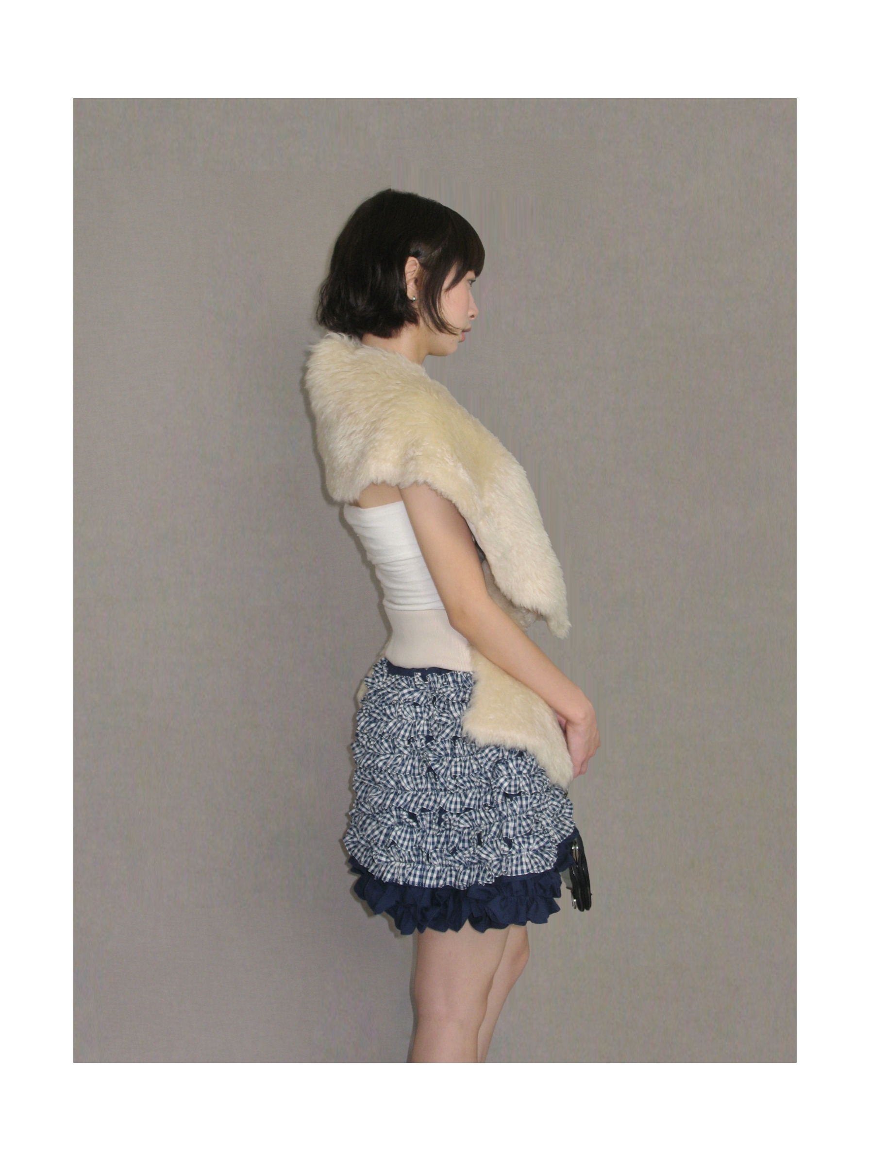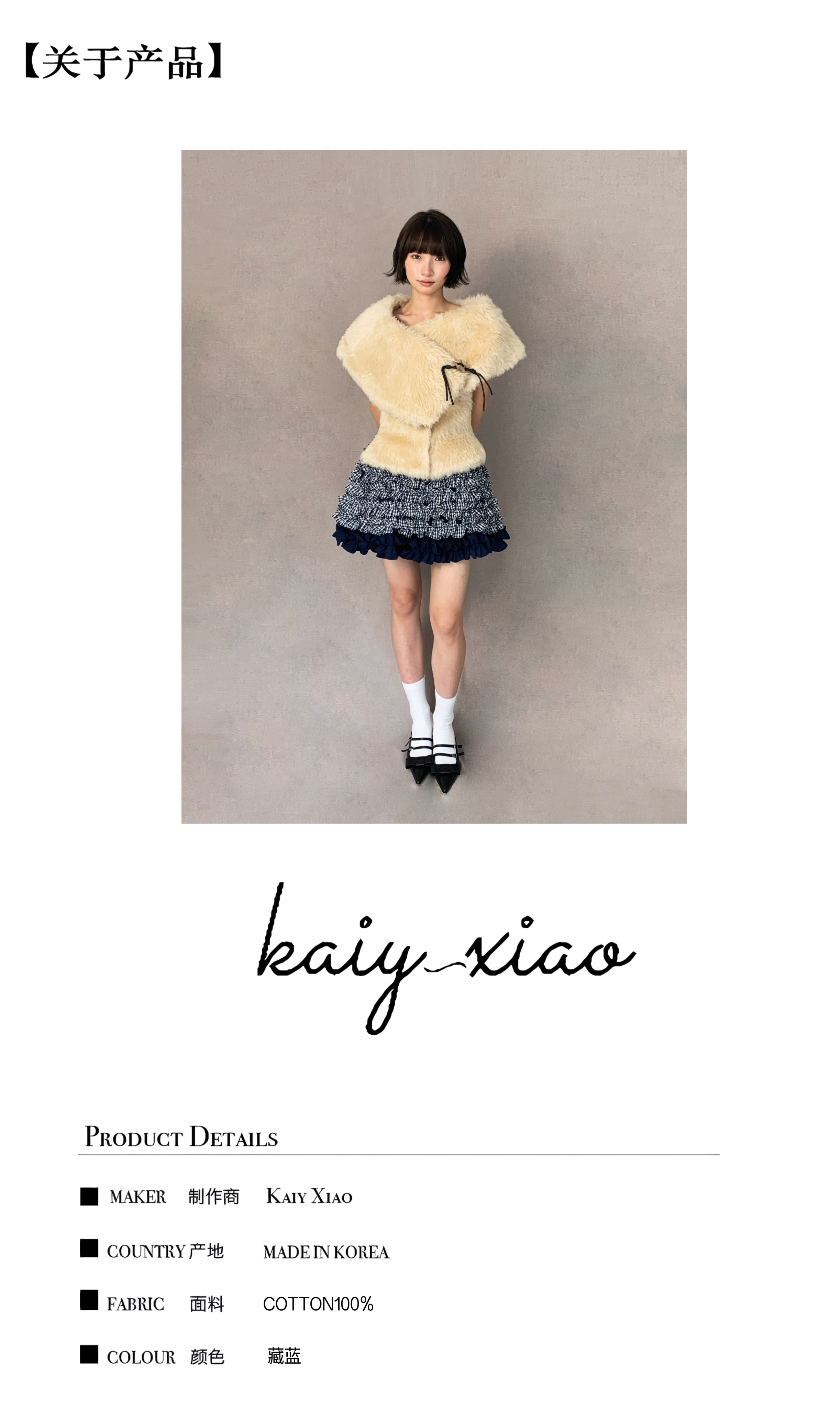 Kaiy Xiao 魔法系列 格纹蛋糕蝴蝶结荷叶褶短裙(包括蝴蝶结)
