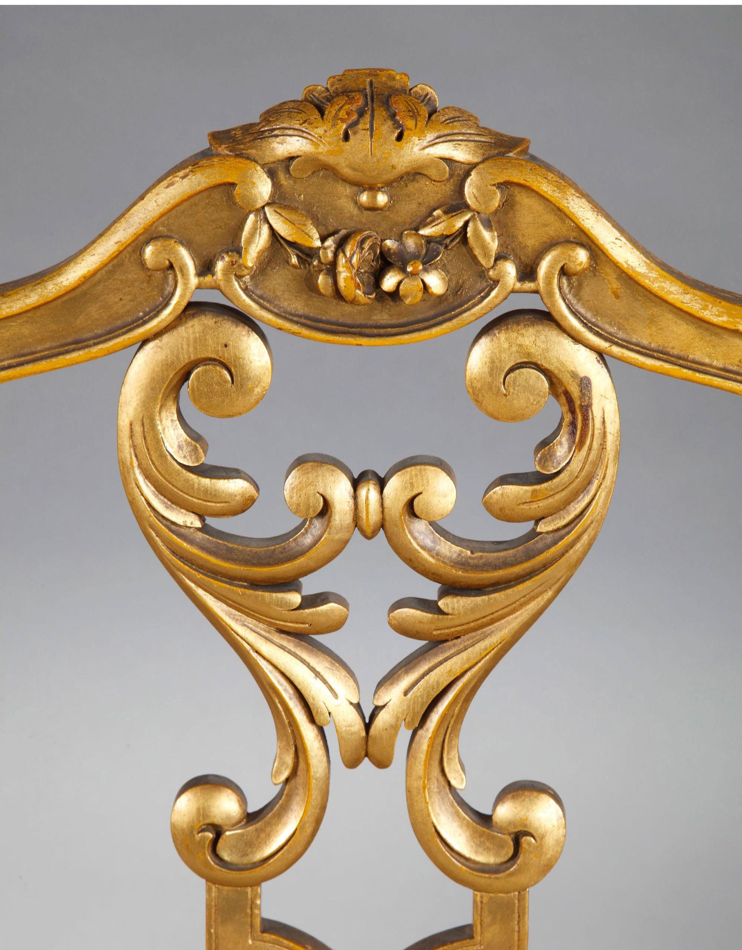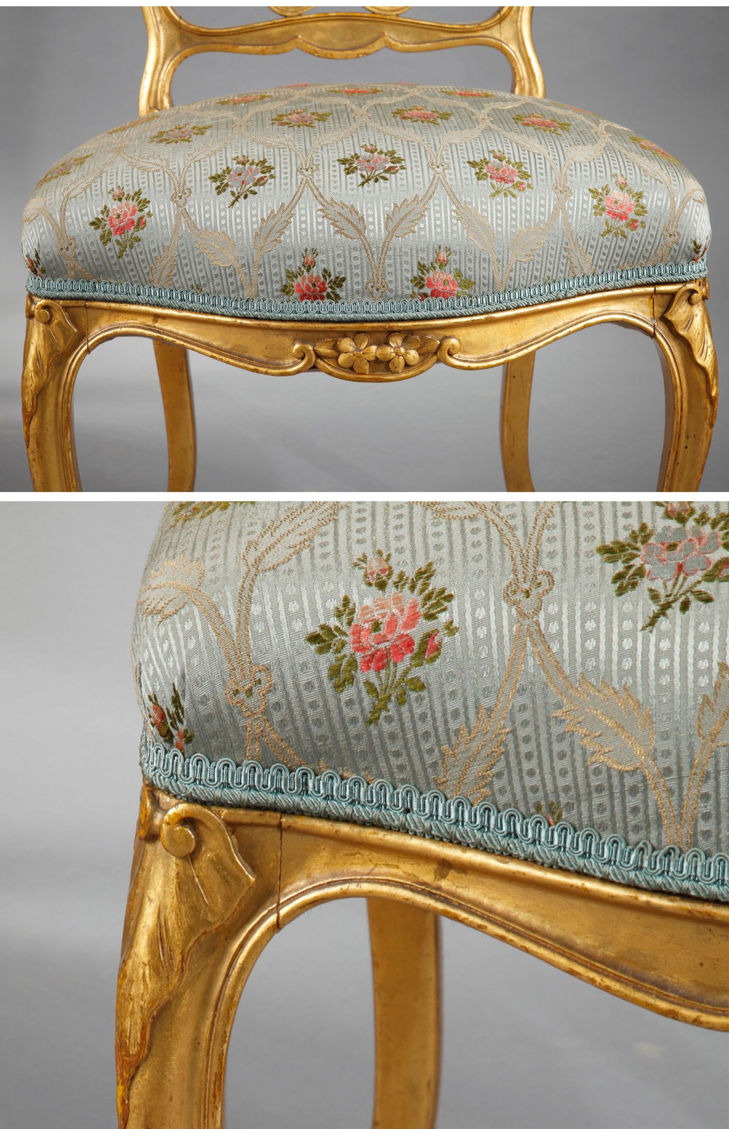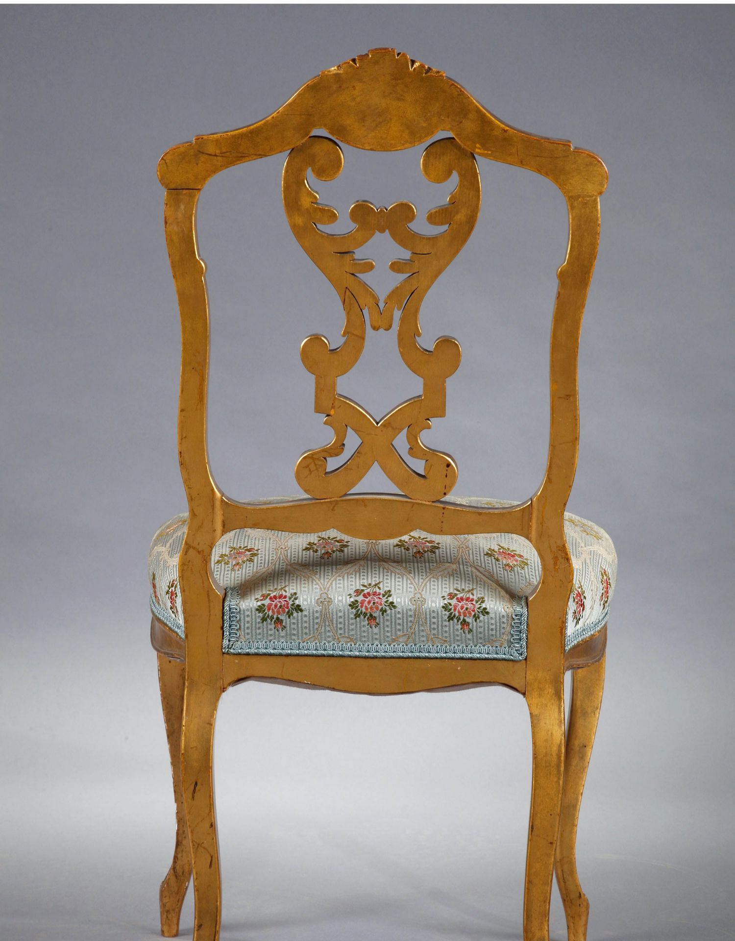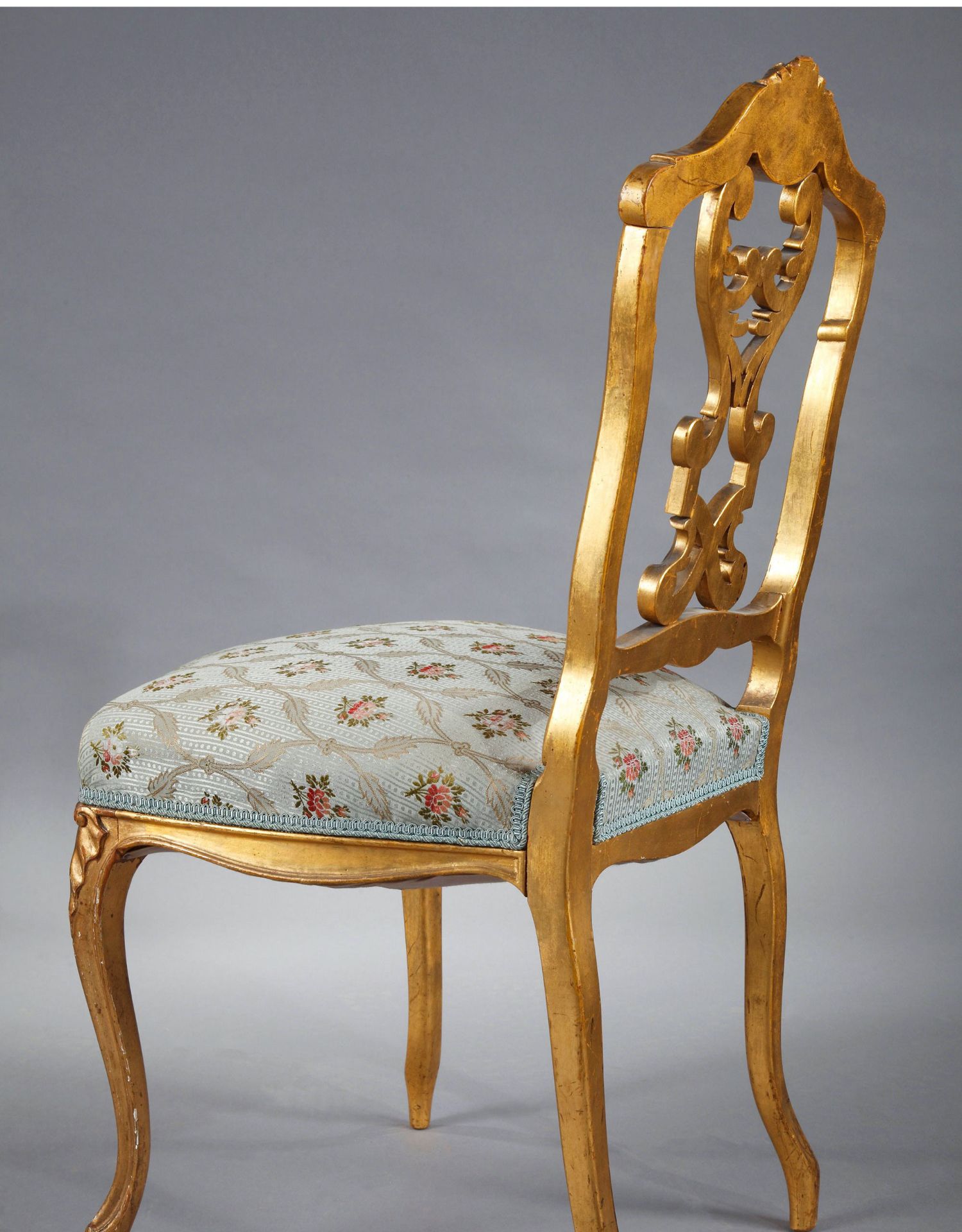 独角鹿西洋古董家具路易十五风格丝质面料金漆木雕镂空靠背椅一套
